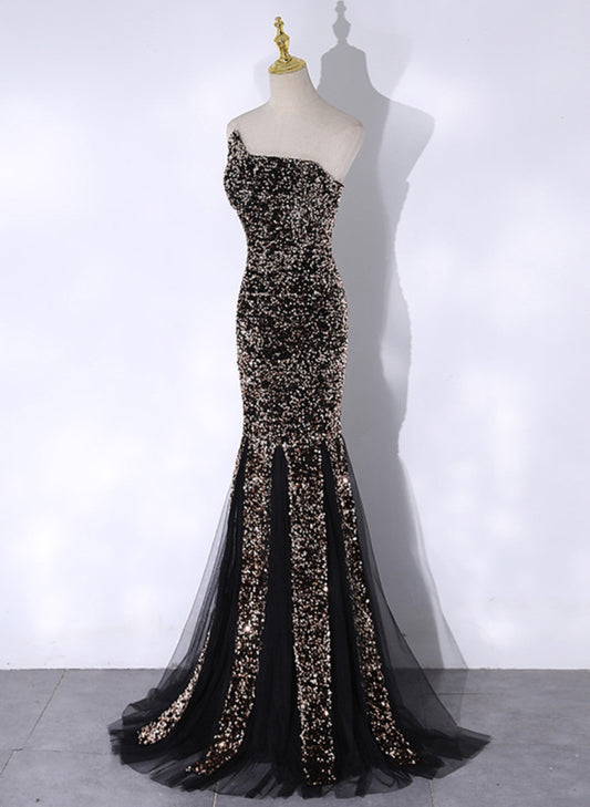 solvbao Black Mermaid Sequins Long Prom Dress, Black Evening Dress Party Dress