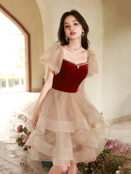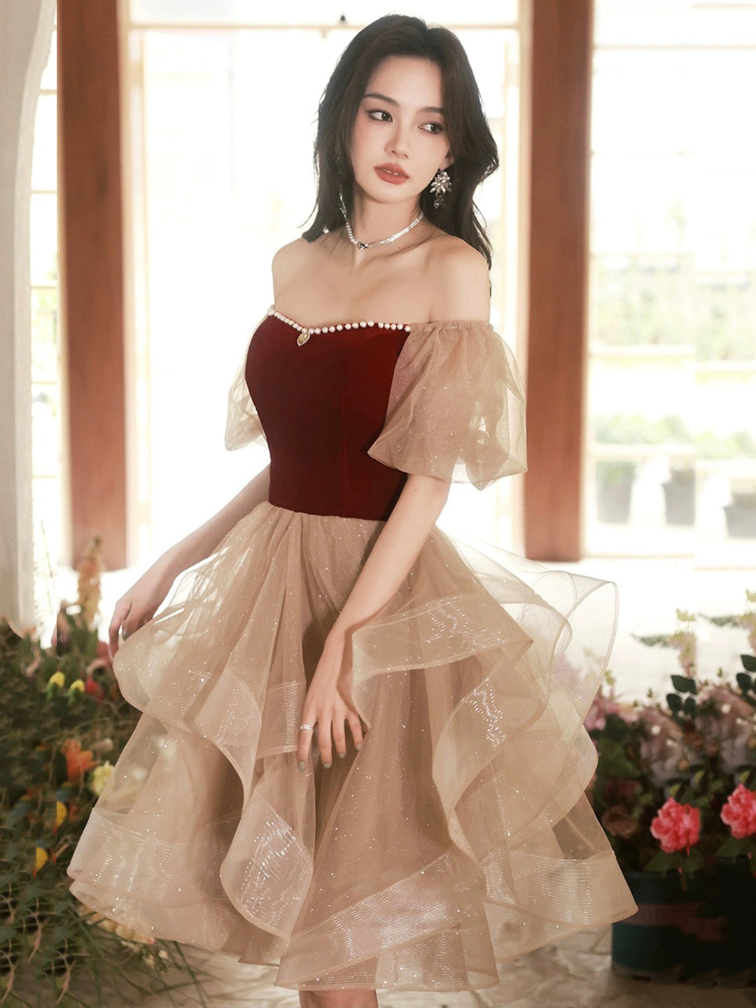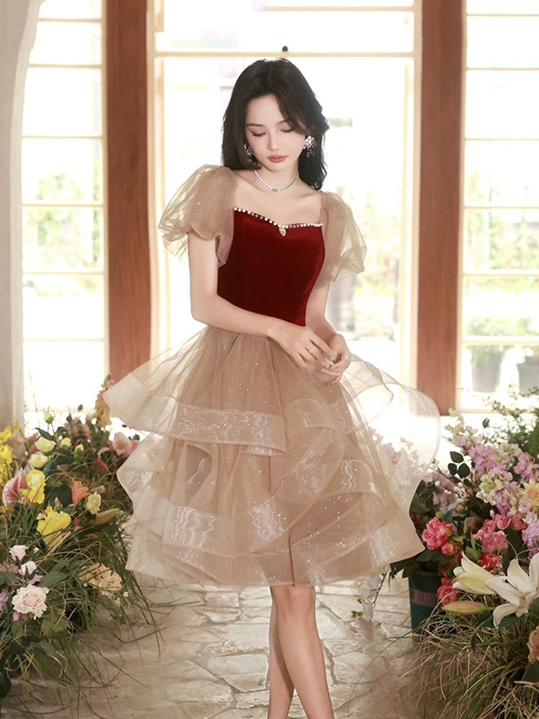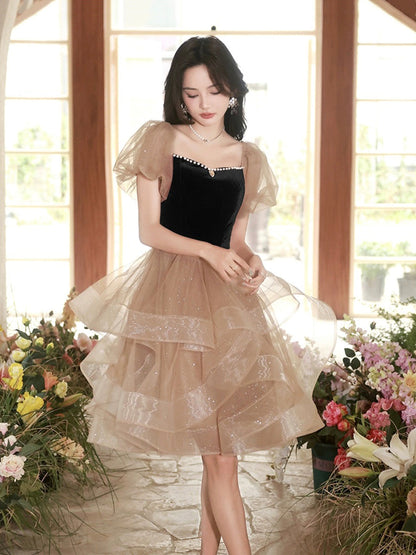 solvbao A-line Tulle Ruffle Cute Sweetheart Homecoming Dresses