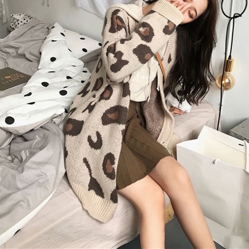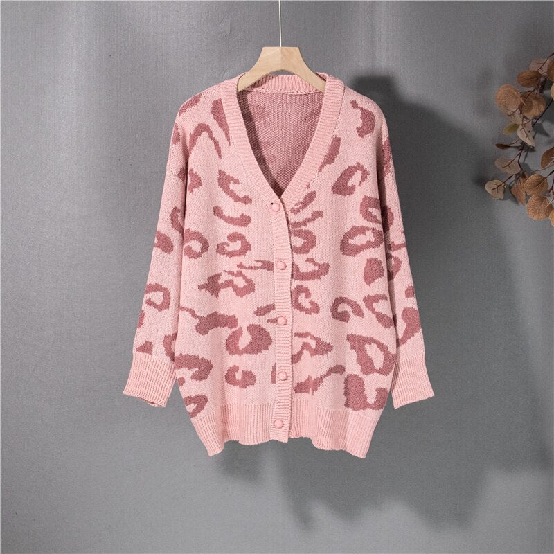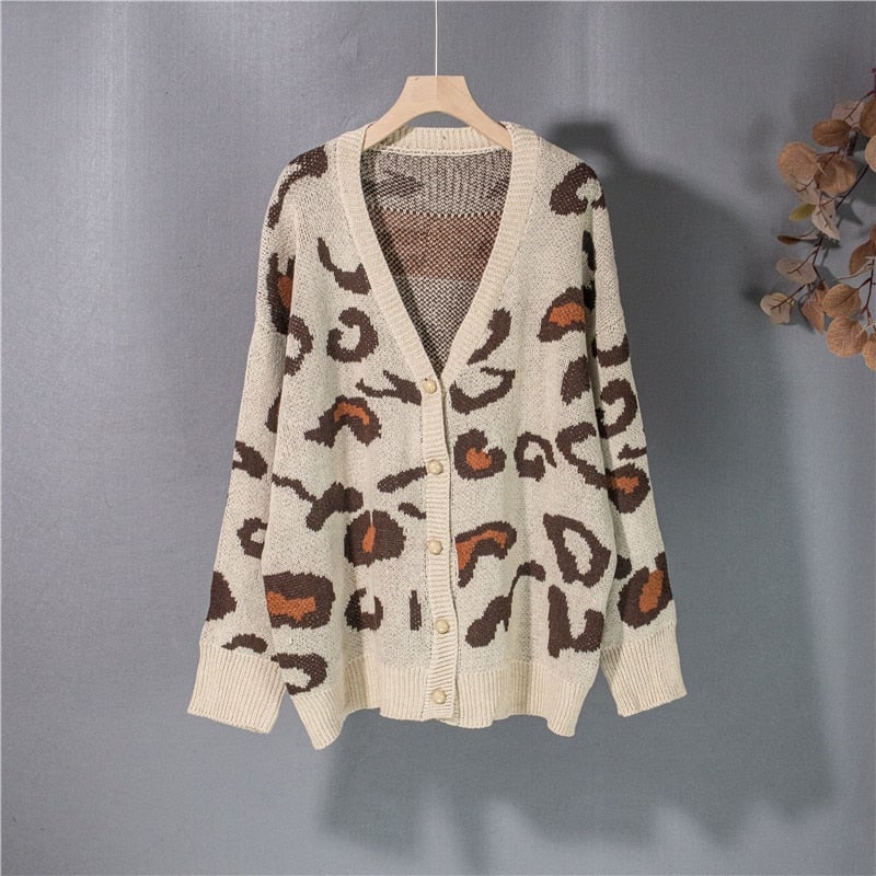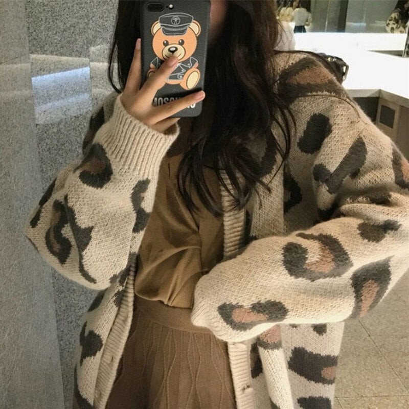 Christmas Gift New Women's Autumn Winter Sweaters Fashionable Elegant Button Cardigans Leopard Oversized Vintage Tops SWC3186JX