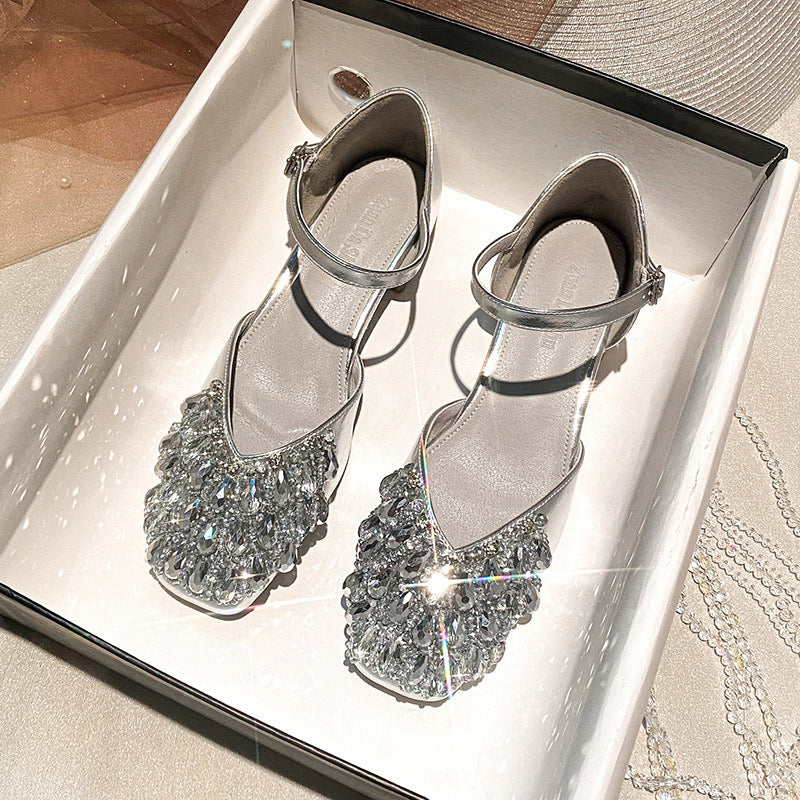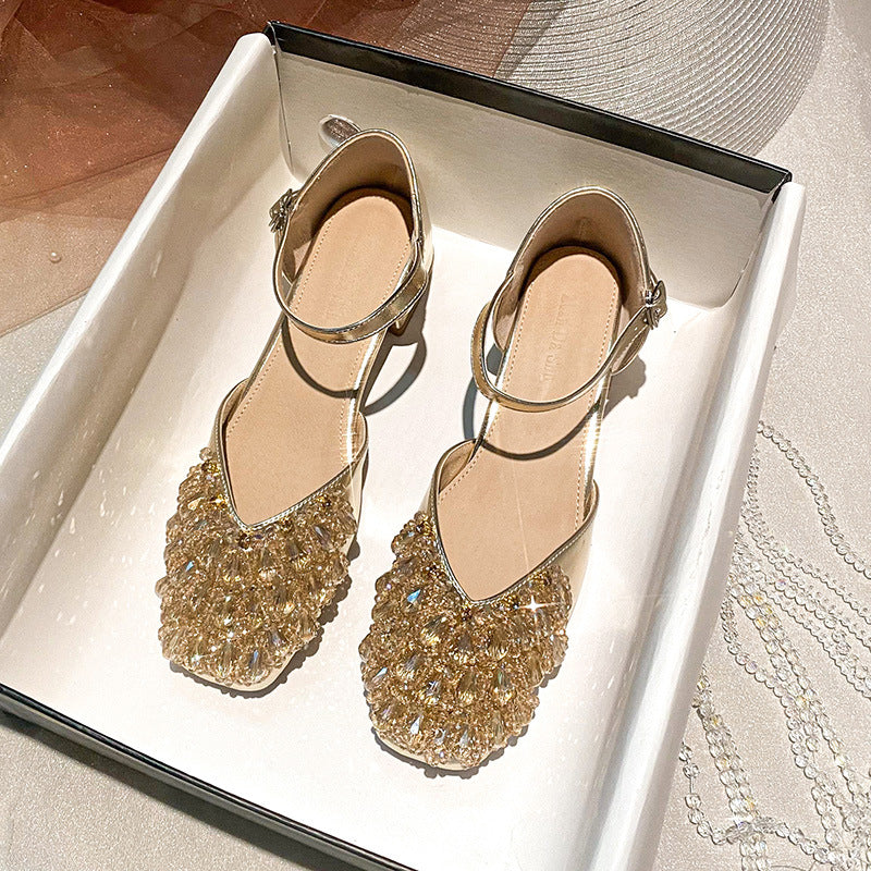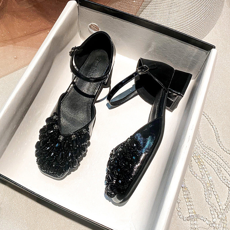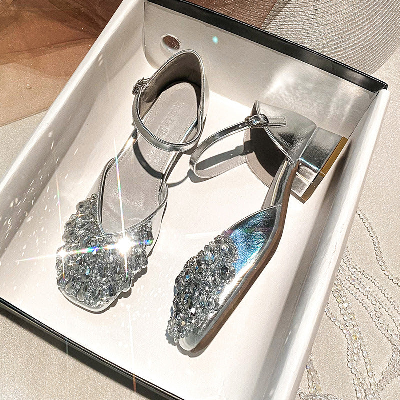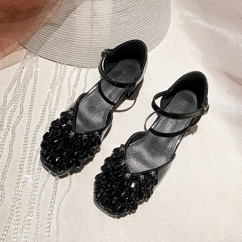 Chunky Heel Mid Heel Rhinestone Hollowed Sandals Pumps Women's New Fairy Style plus Size Women's Shoes 41-43