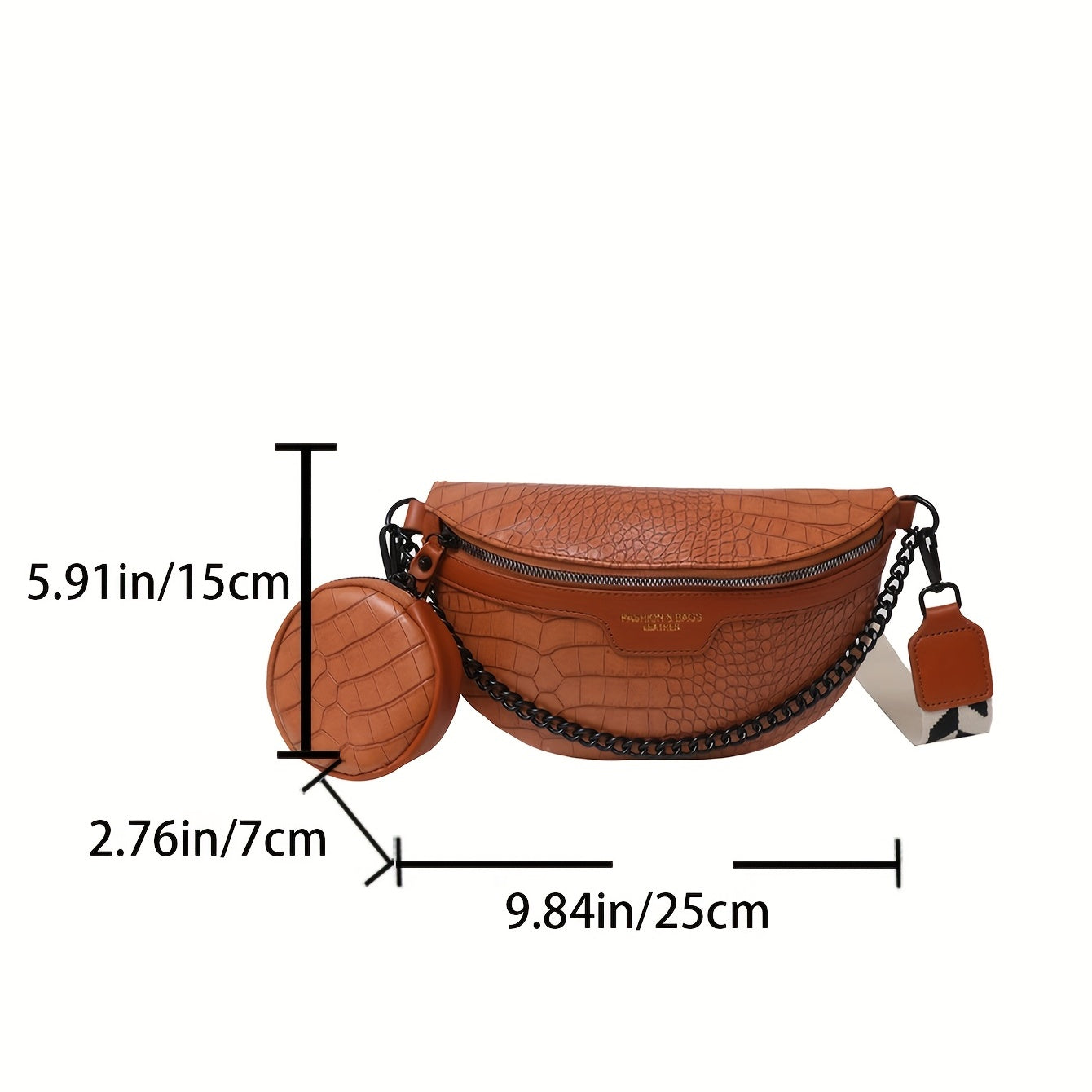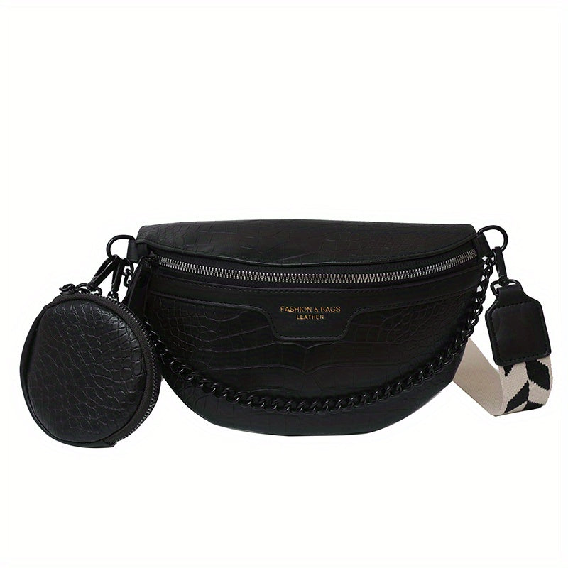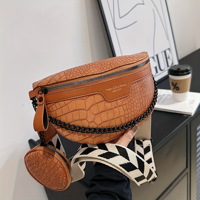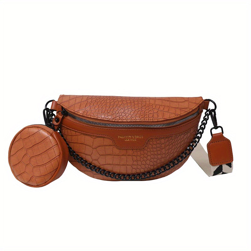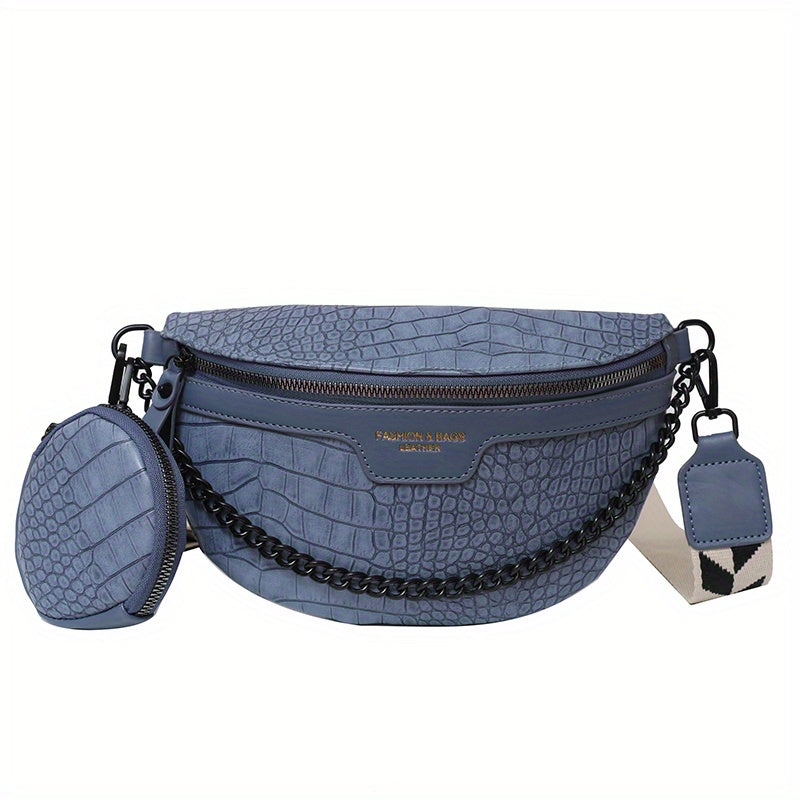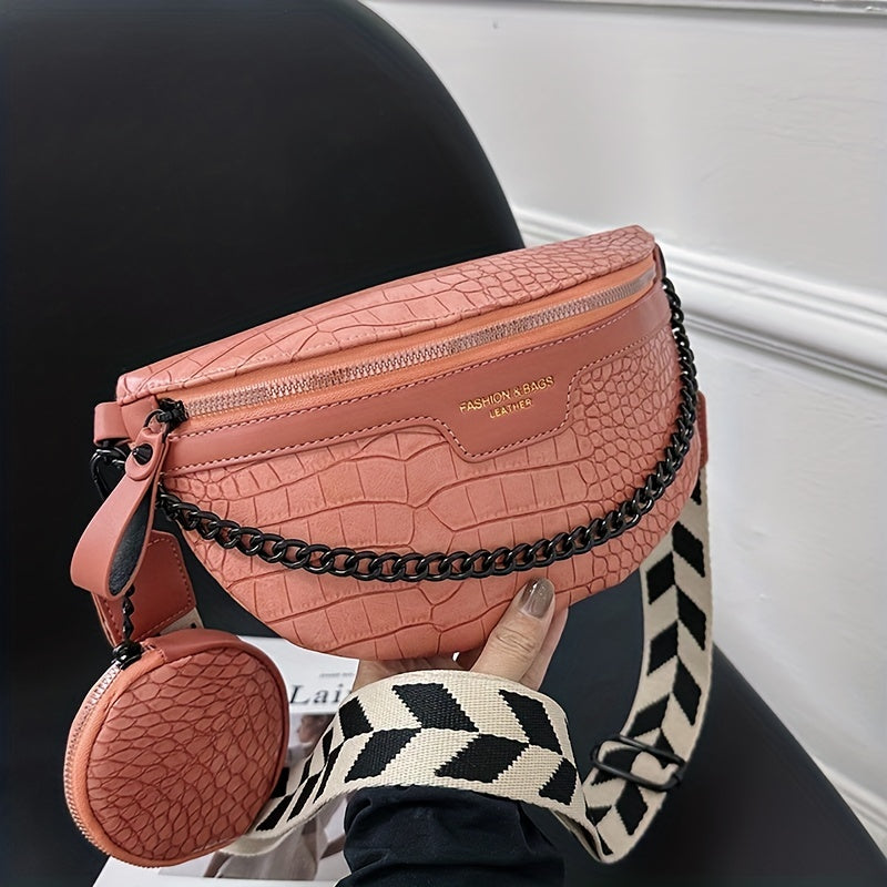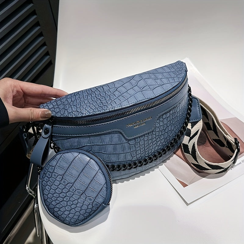 Crocodile Pattern Waist Bag Set, Trendy Crossbody Bag With Coin Purse, Women's Chain Chest Bag
