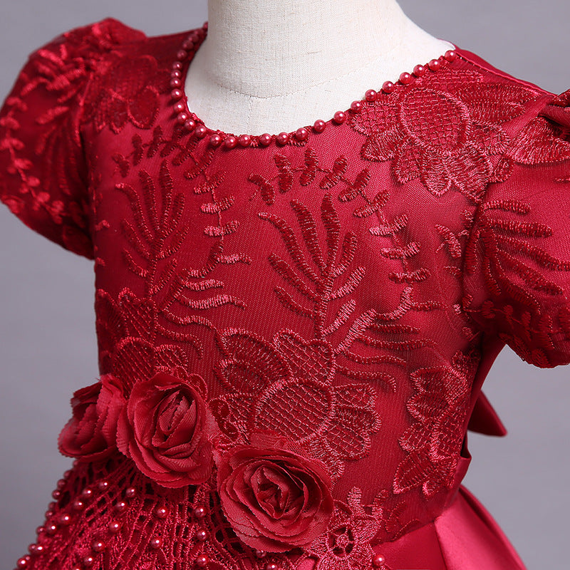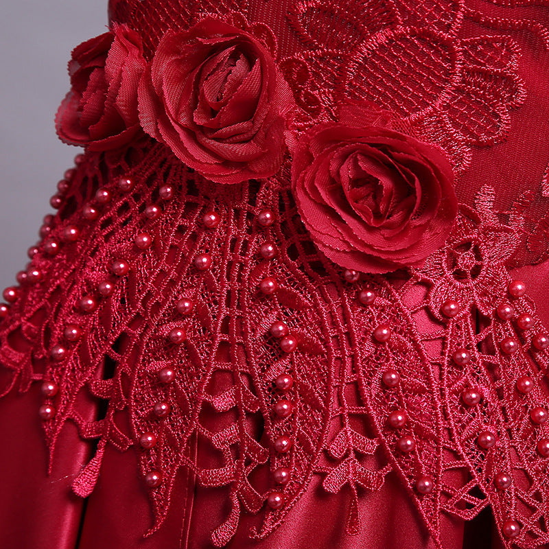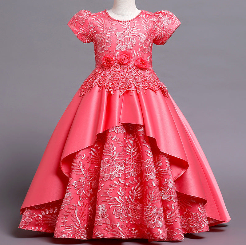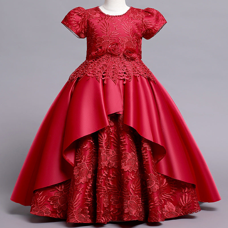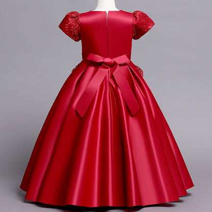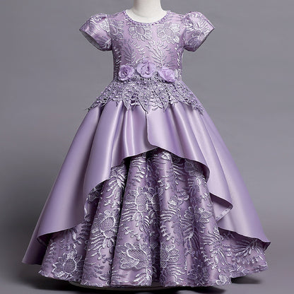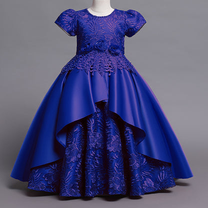 Cross-Border New Arrival Children's Dress Satin Embroidered Princess Dress for Girls Jumpsuits Western Style Host Performance in Stock Second Batch