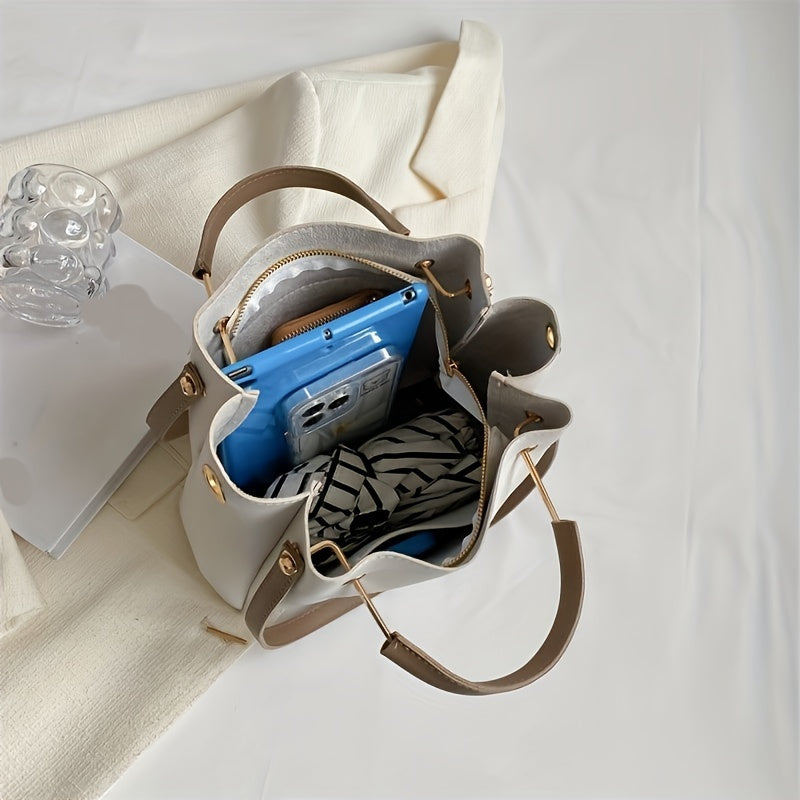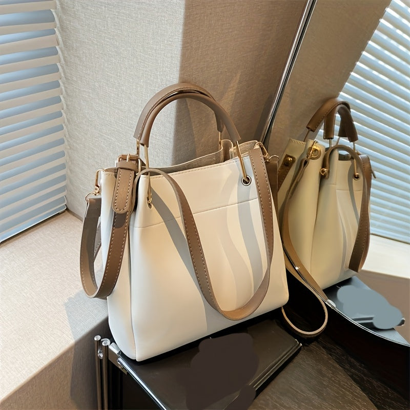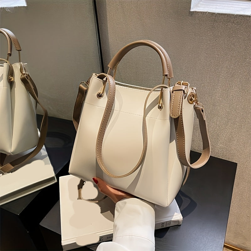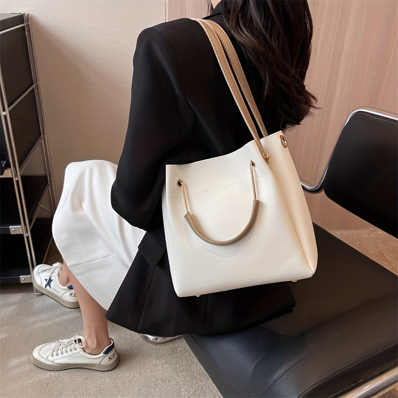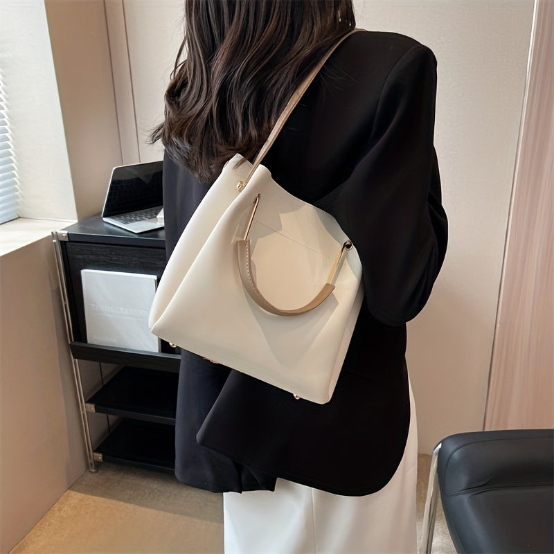 Fashion Vegan Shoulder Bag, Solid Color Simple Tote Bag, Women's Trendy Handbag & Purse For Commute