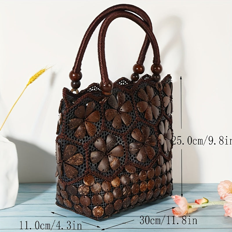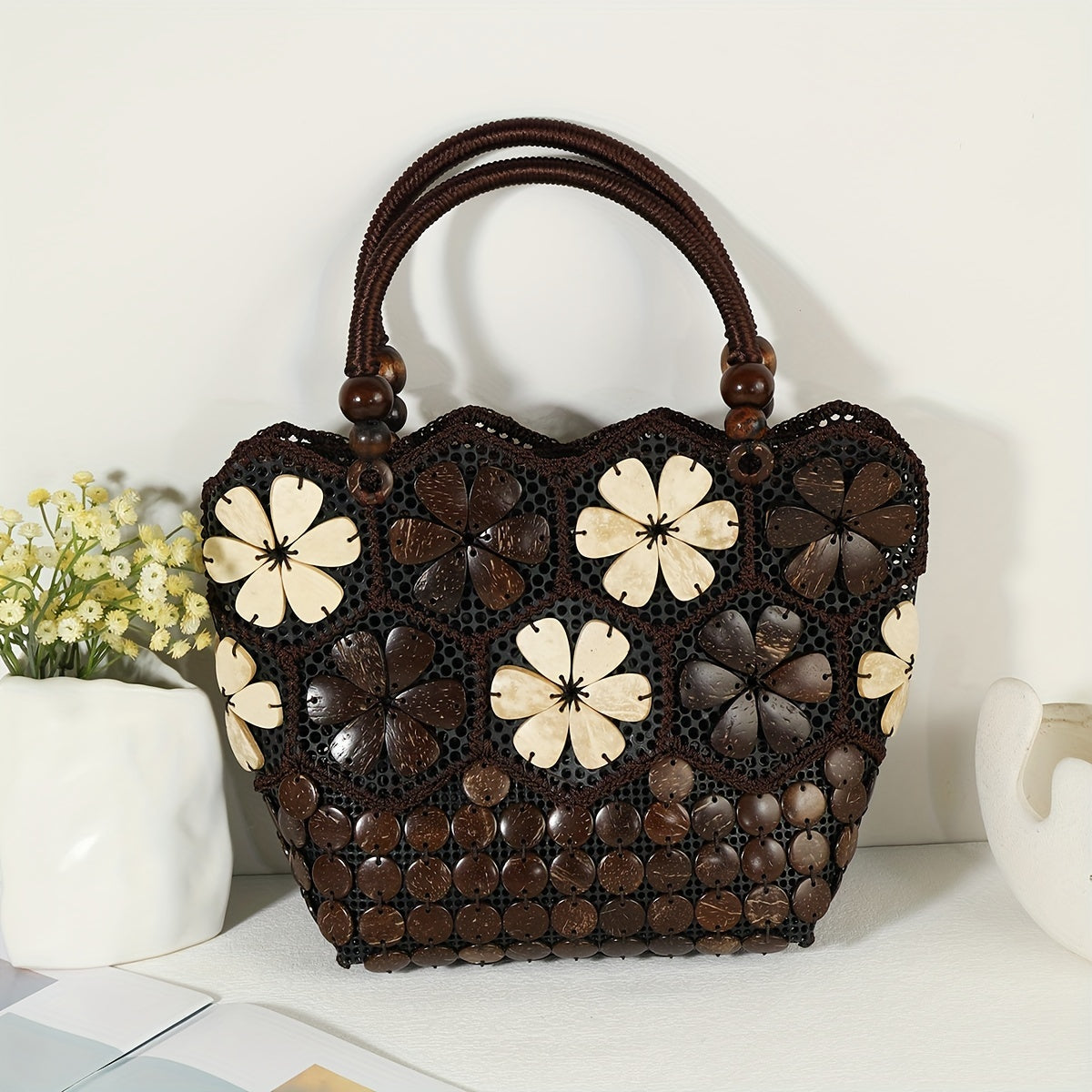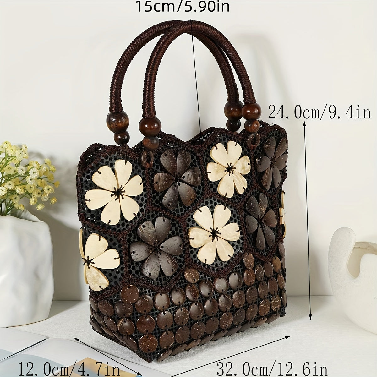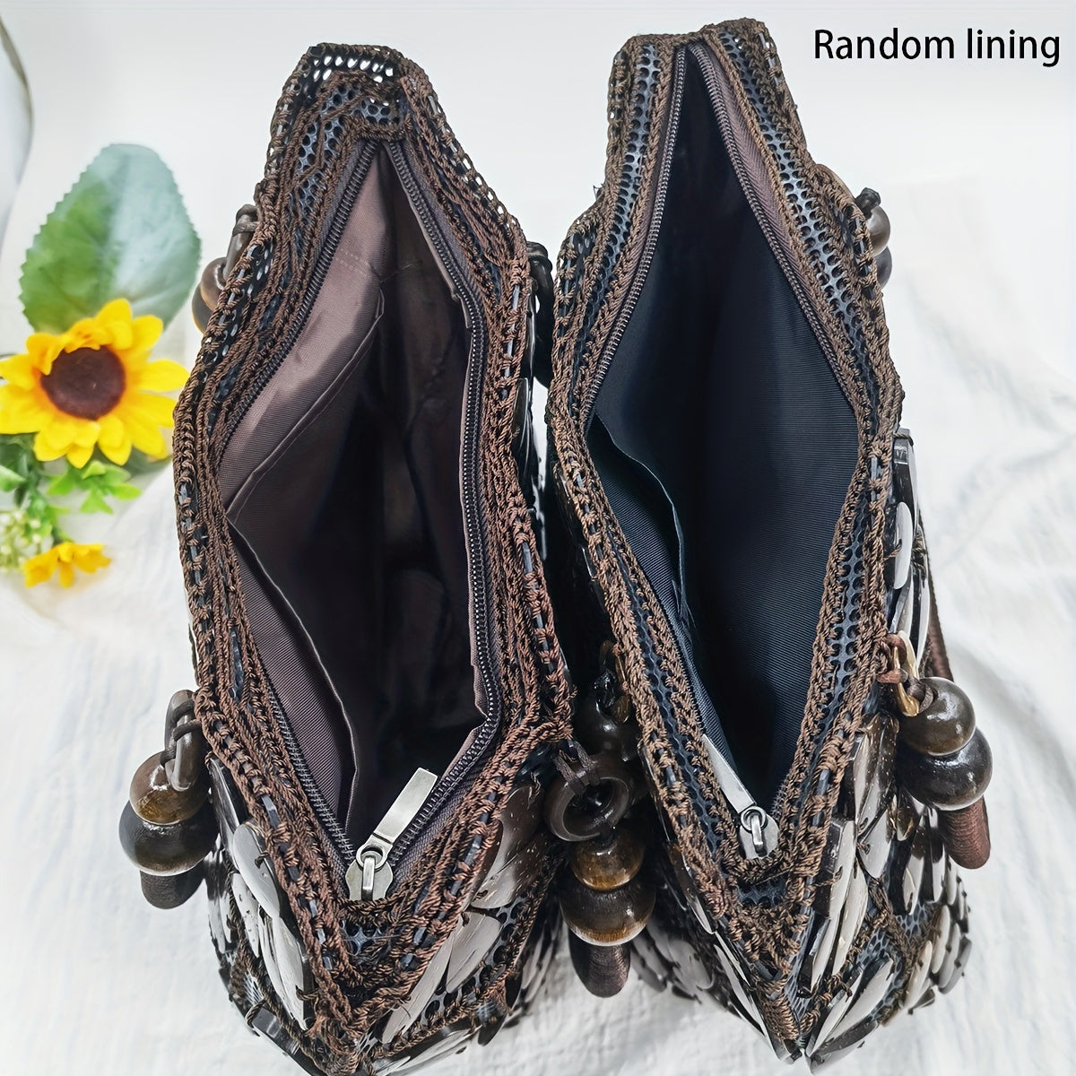Large Capacity Ethnic Satchel Bag, Bohemian Bead Straw Handbag, Classic Vintage Bag For Travel