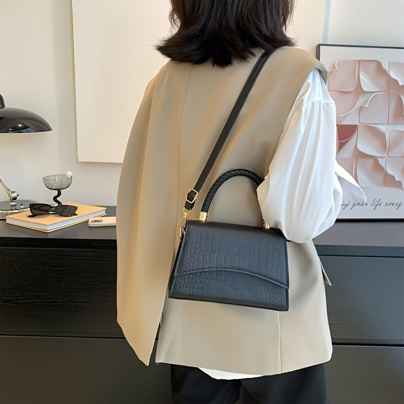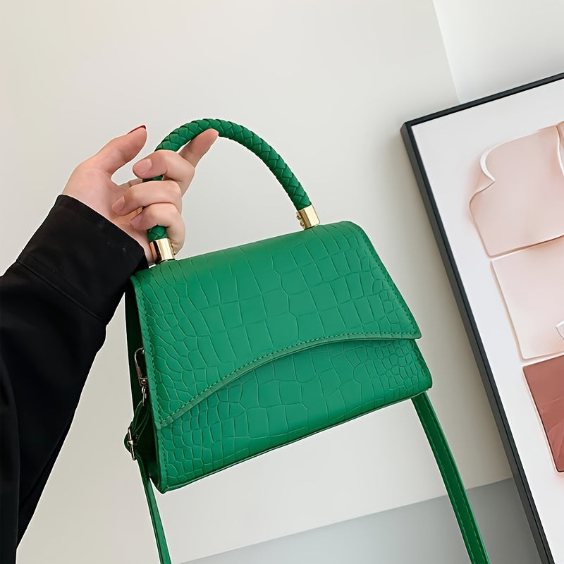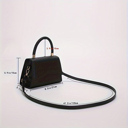 Mini Crocodile Embossed Handbag, Minimalist Crossbody Bag, Women's Square Purse With Top Handle