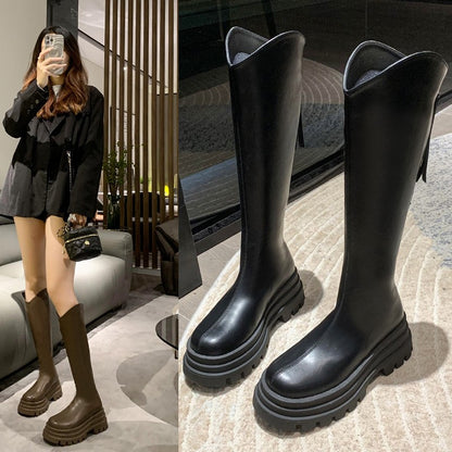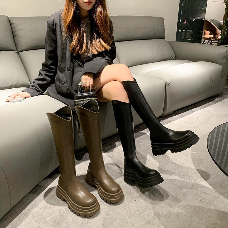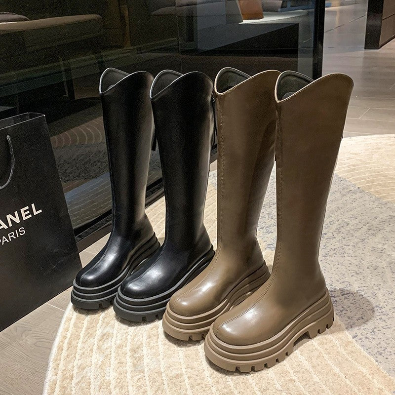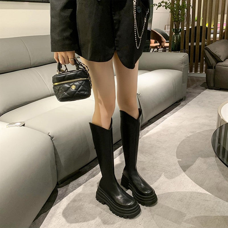 New V Cut Boots Women Autumn and Winter High Heel Platform Thin below the Knee Knight Boots Small Man Fashion Boots