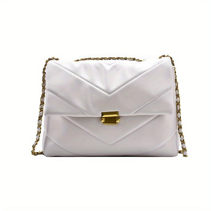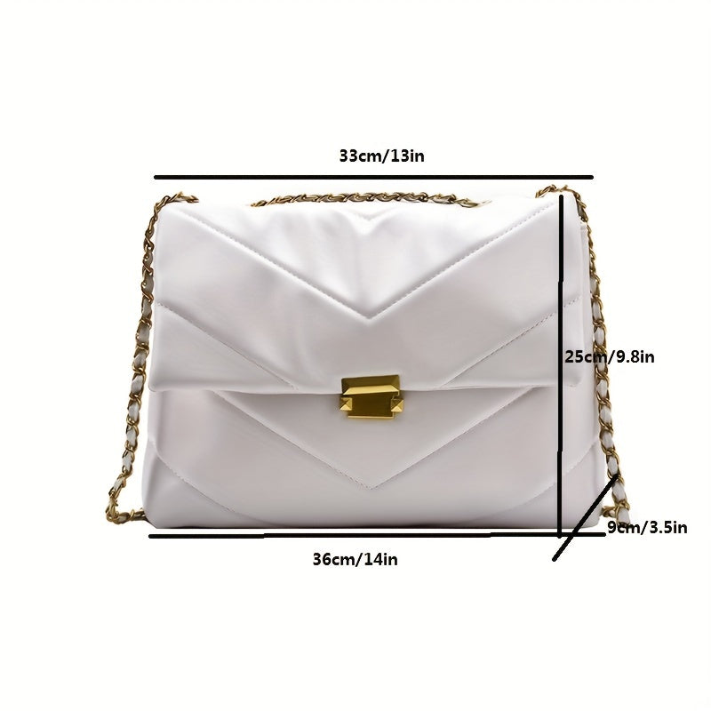 Quilted Zipper Shoulder Bag, Chain Strap Trendy Crossbody Bag, Elegant Large Capacity Underarm Bag