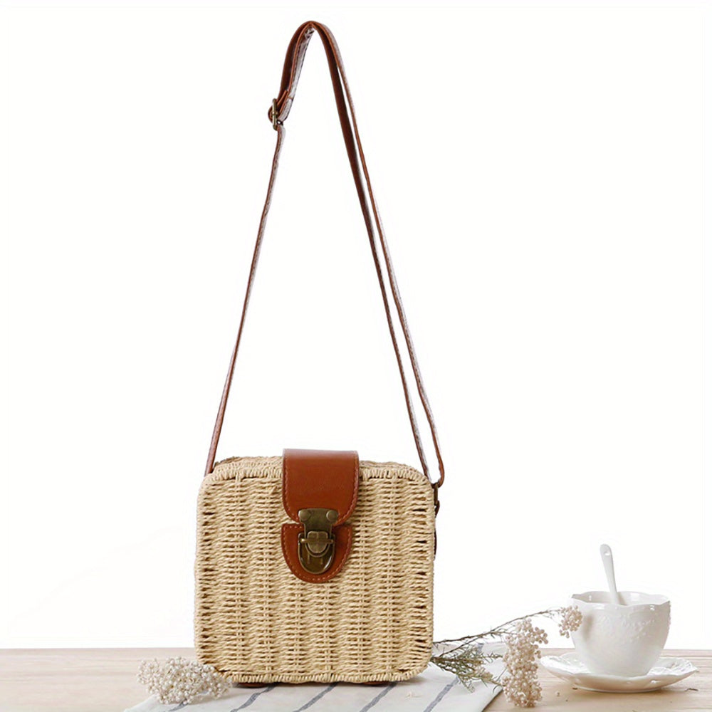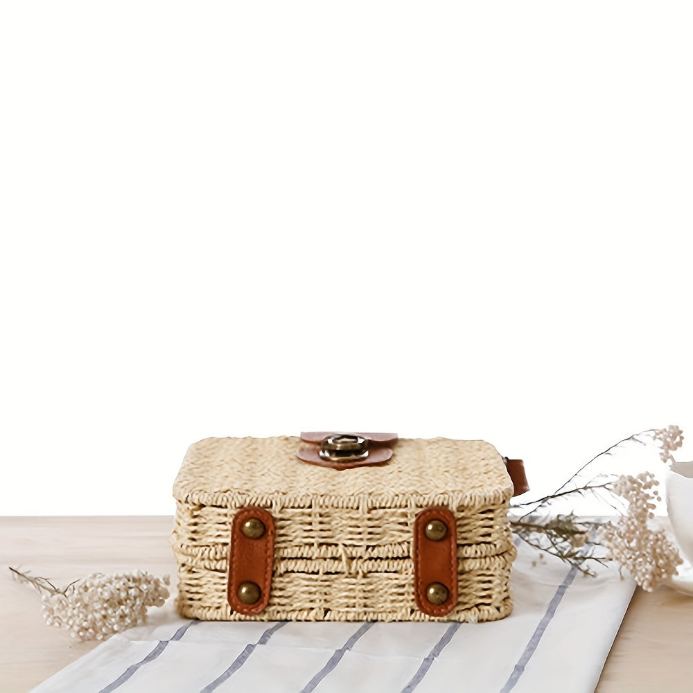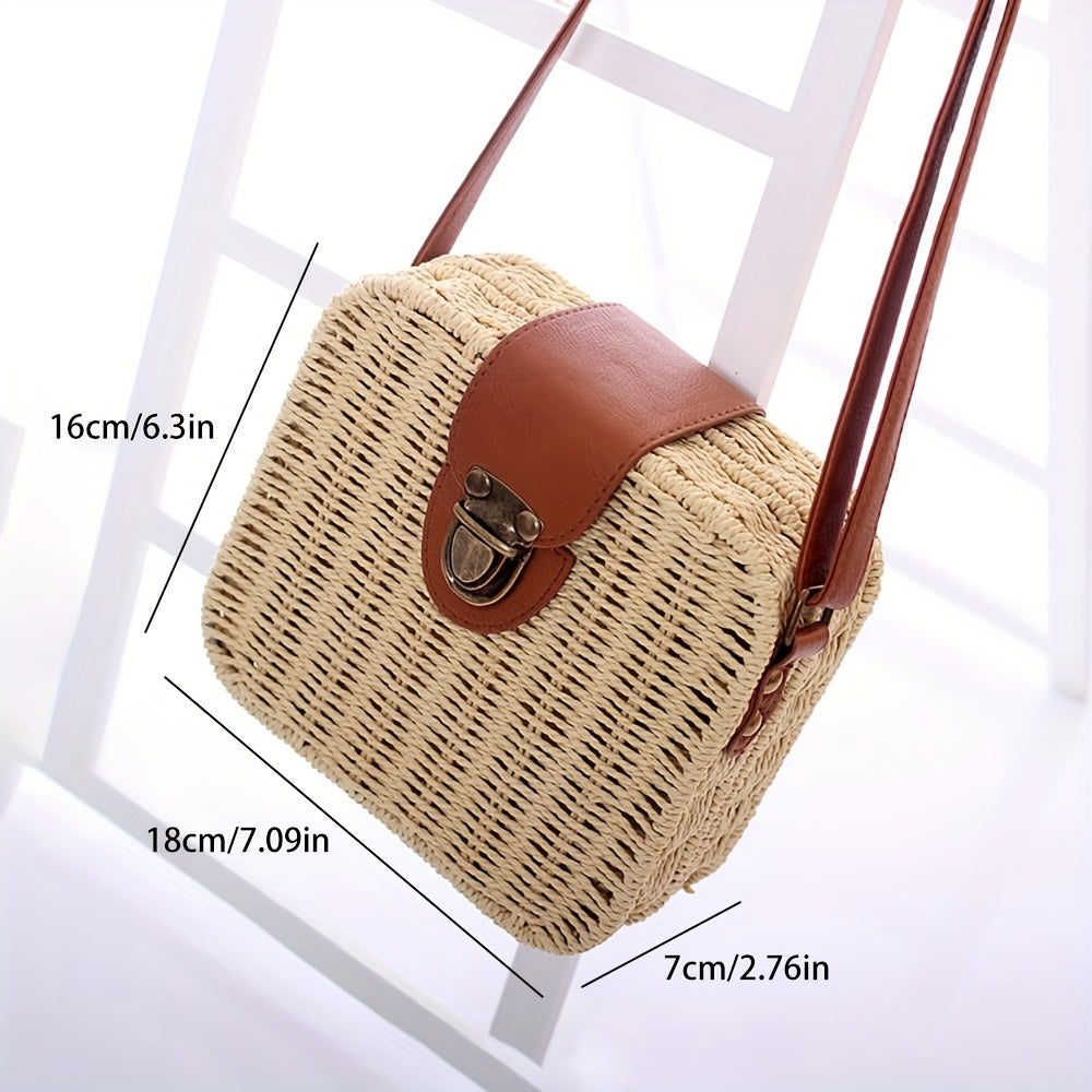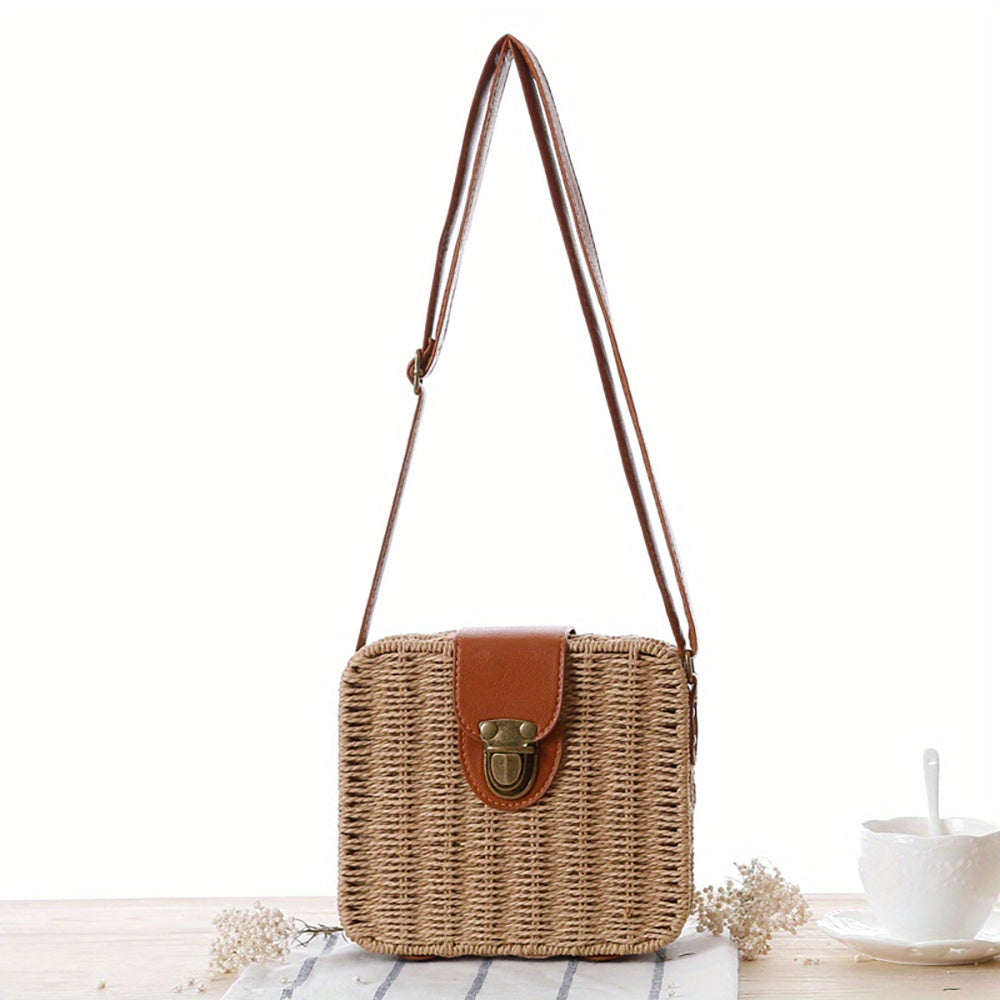 Rattan Woven Square Bag, Vintage Summer Beach Bag, Women's Straw Crossbody Bag (7.09*6.3*2.76) Inch
