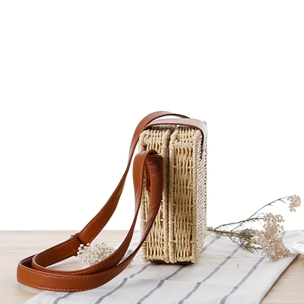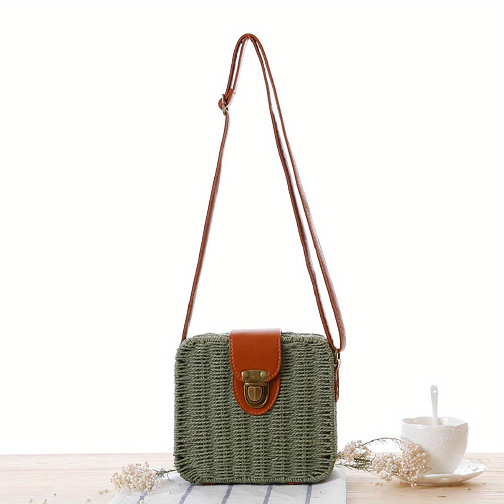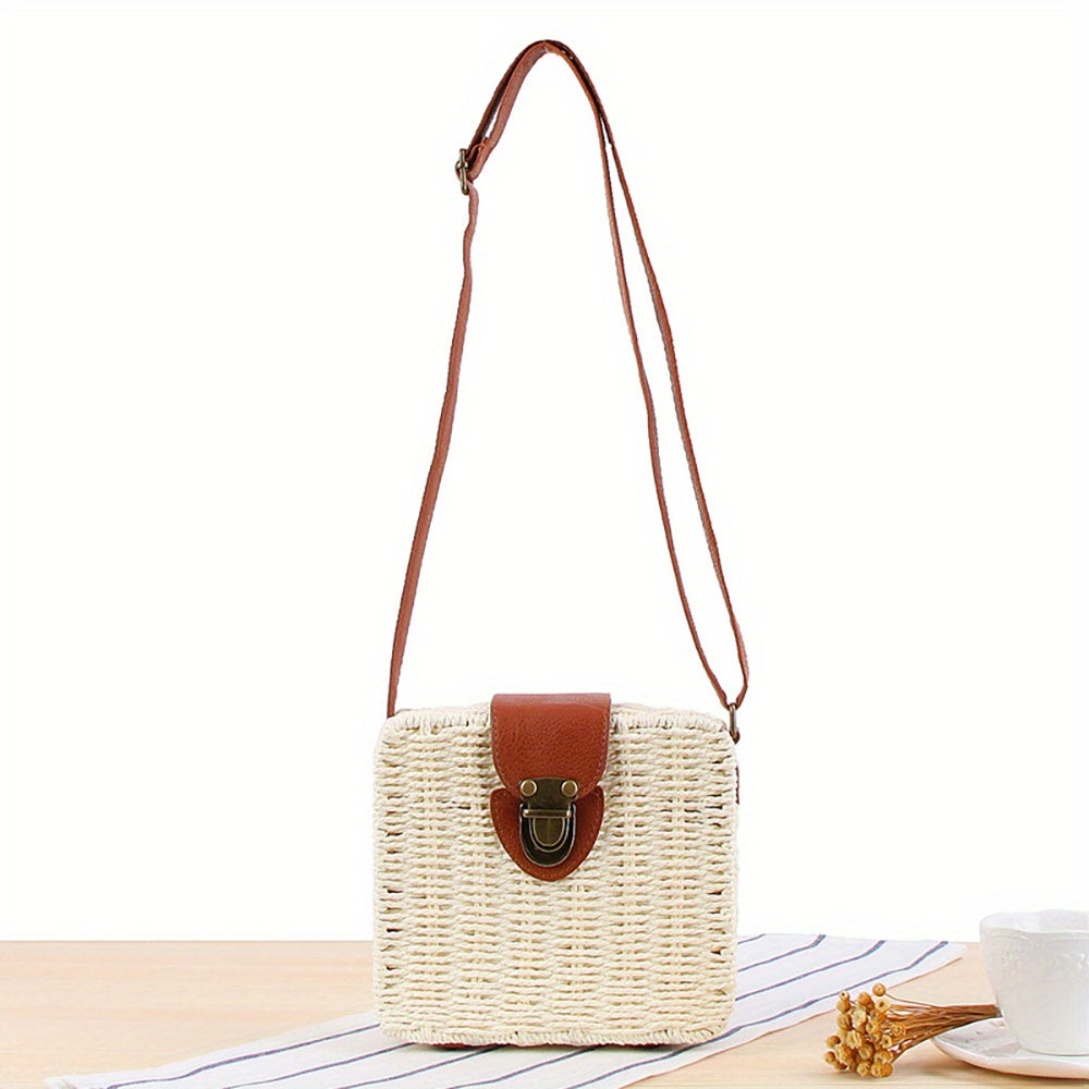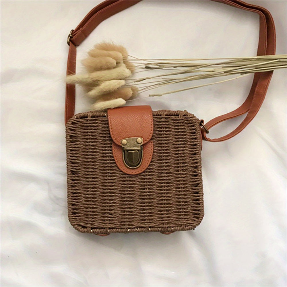 Rattan Woven Square Bag, Vintage Summer Beach Bag, Women's Straw Crossbody Bag (7.09*6.3*2.76) Inch