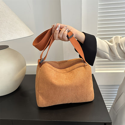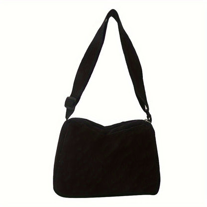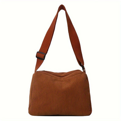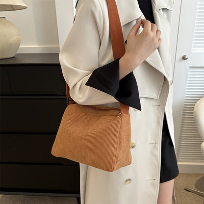 Retro Corduroy Crossbody Bag, Solid Color Shoulder Bag, Women's Simple Zipper Square Purse