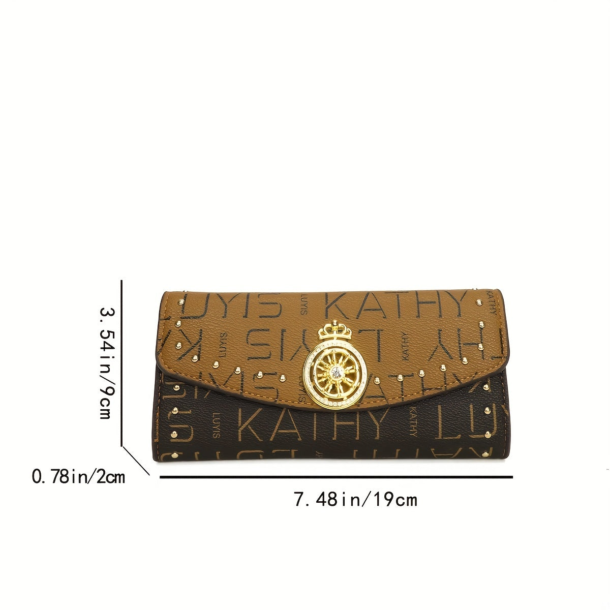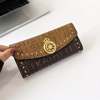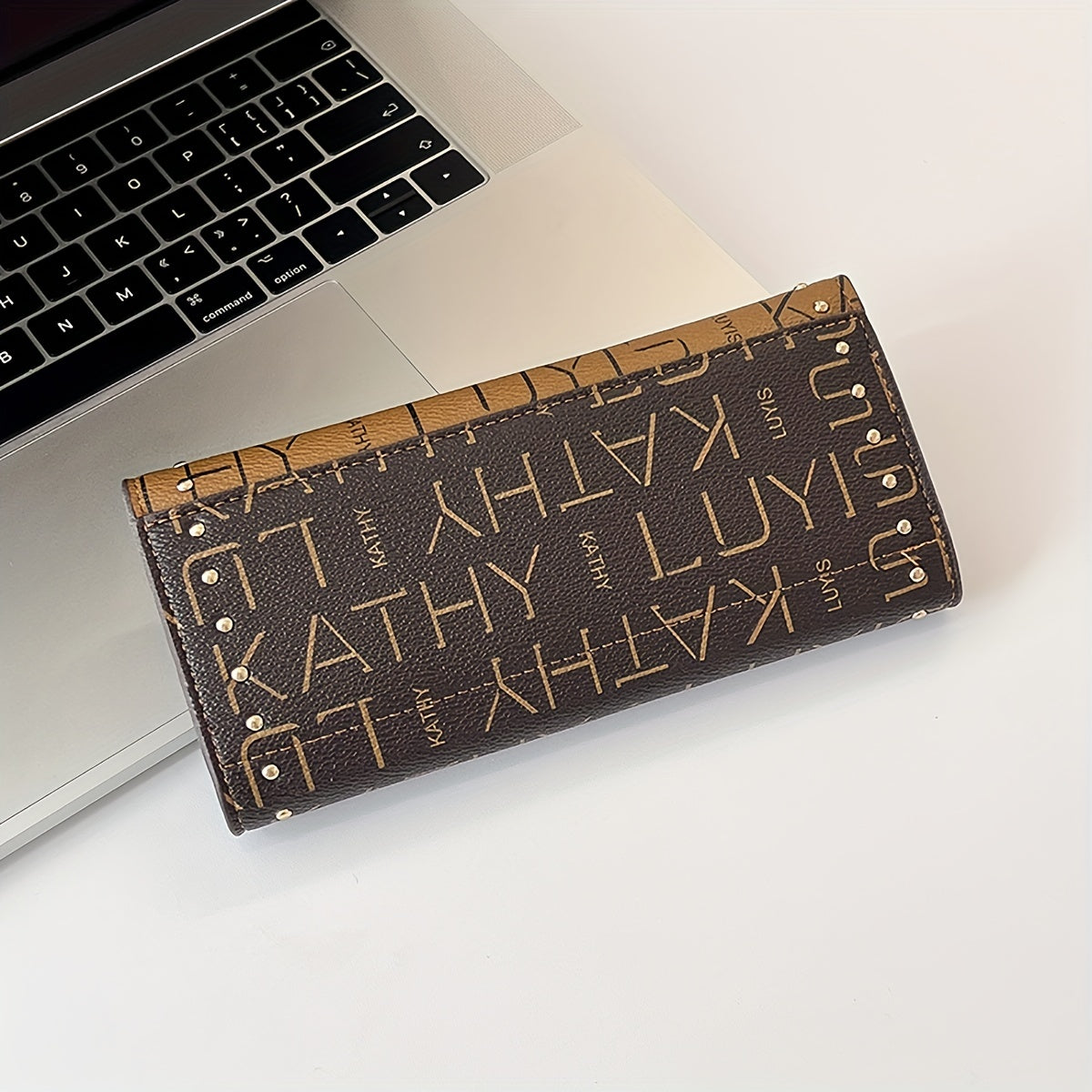 Retro Letter Pattern Long Clutch Wallet, Textured Color Stitching Coin Purse, Classic Pu Leather Purse