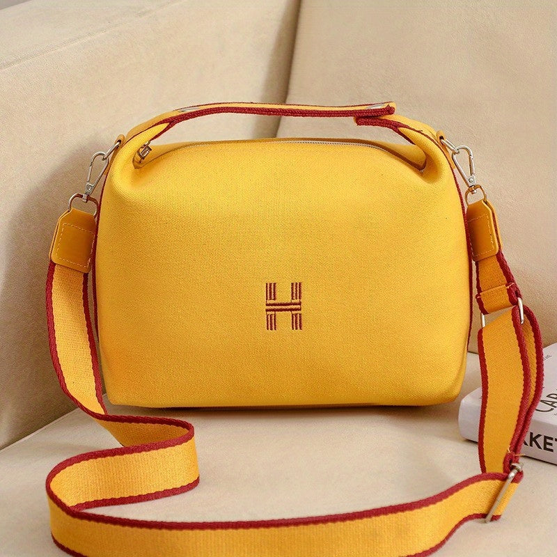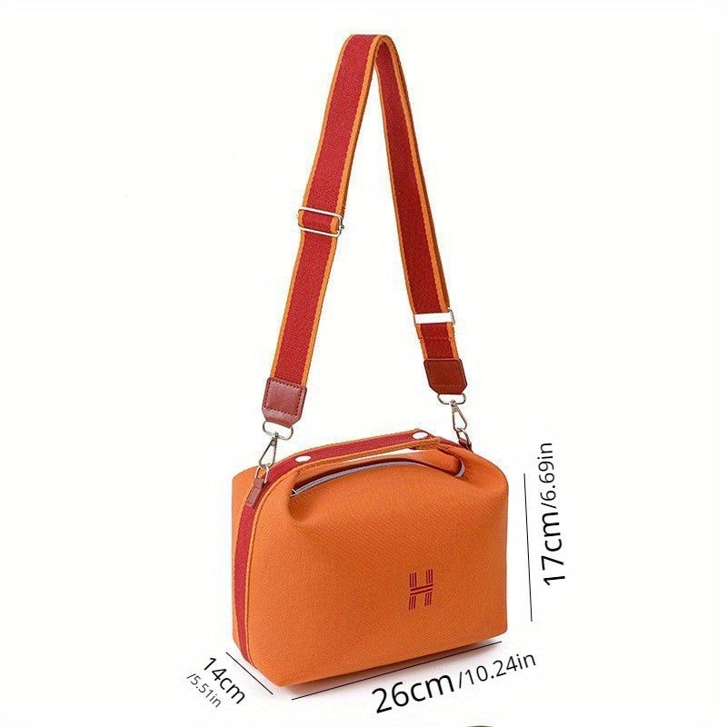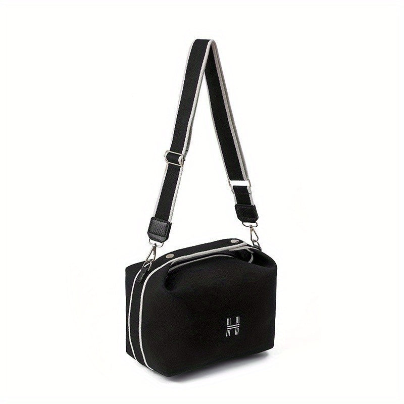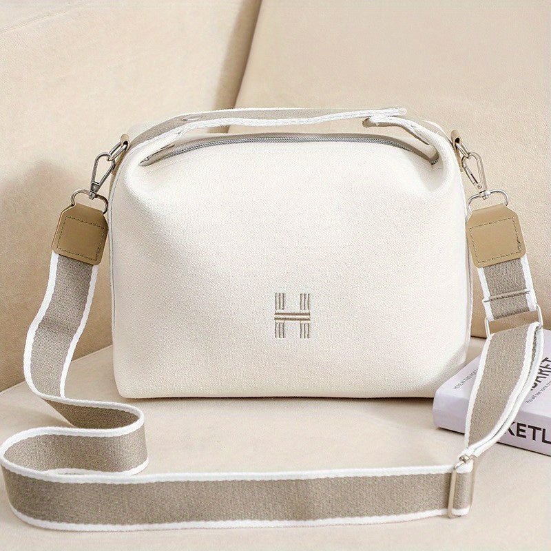 Simple Canvas Handbag For Women, Portable Makeup Storage Bag, Crossbody Travel Toiletry Bag