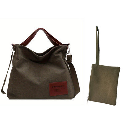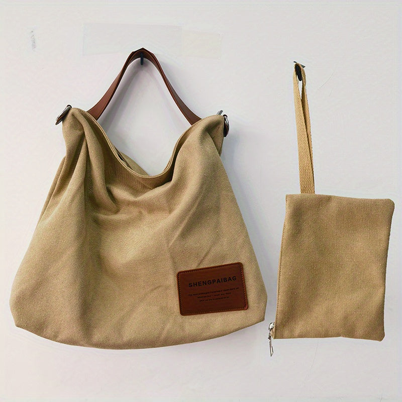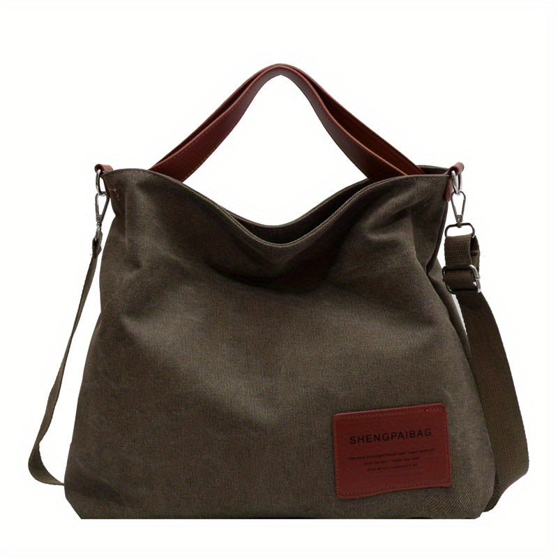 Simple Canvas Shoulder Bag, Large Capacity All-Match Satchel Bag, Trendy Crossbody Bag