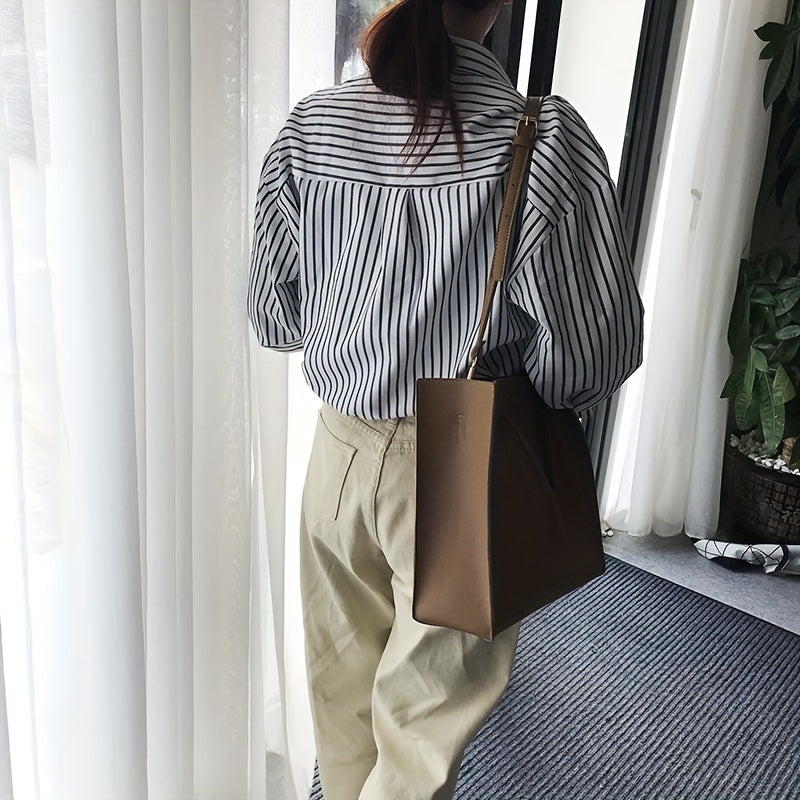 Simple Solid Color Tote Bag, PU Lightweight Shoulder Bag, Women's Shopping Everyday Commuter Bag