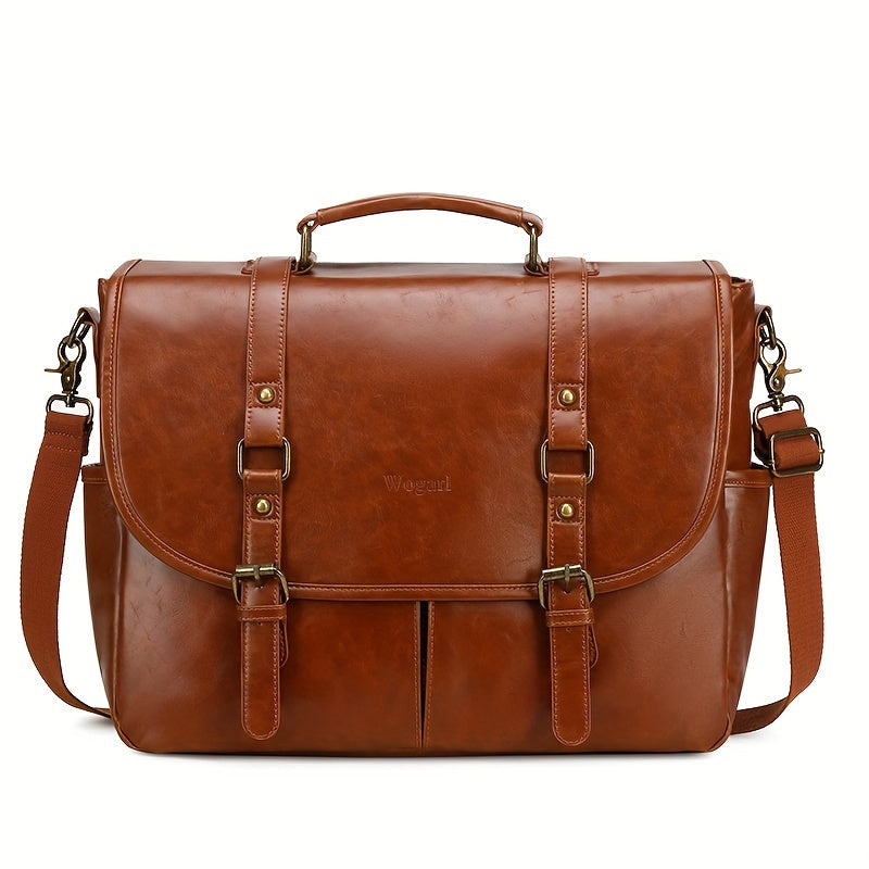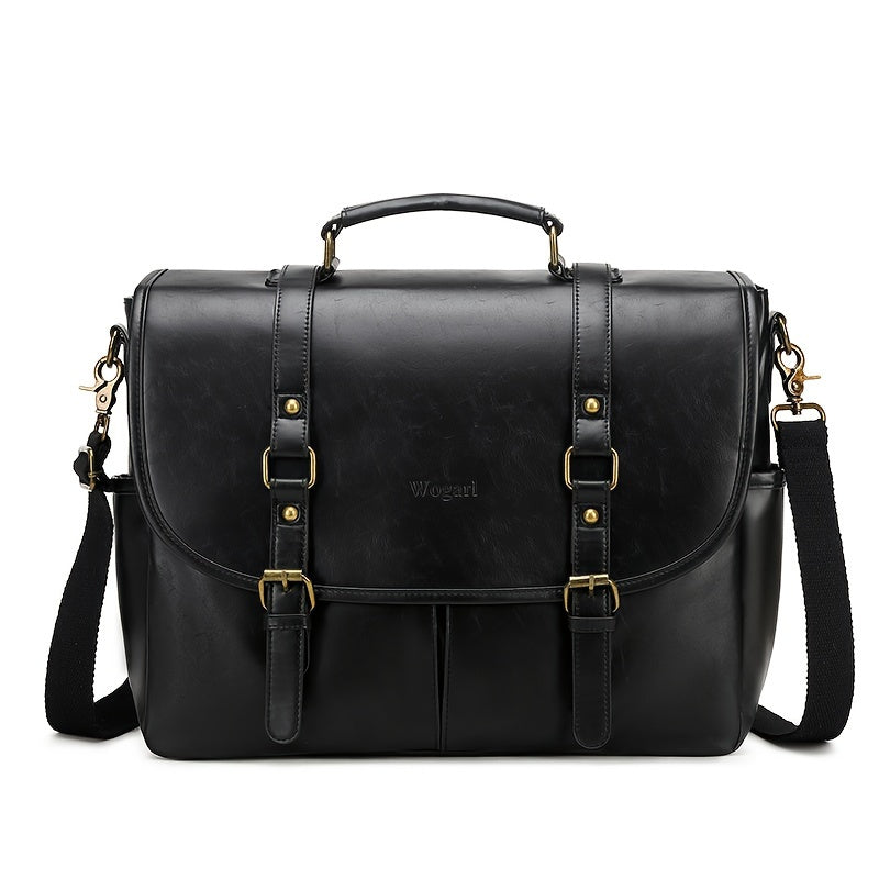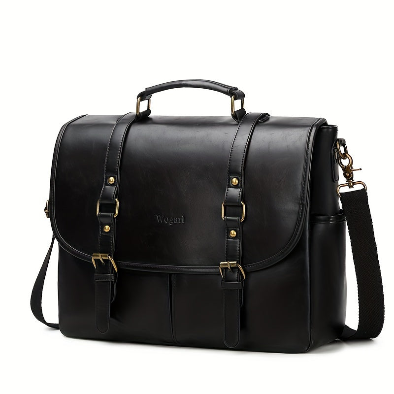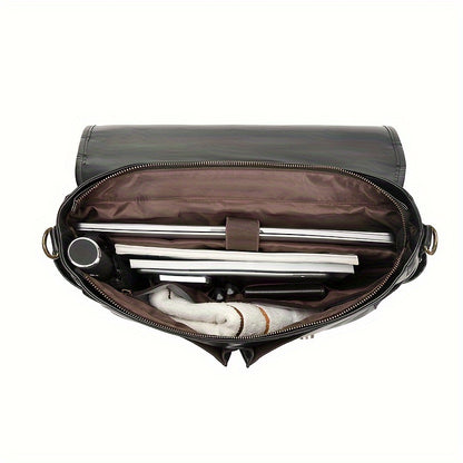 Solid Color Square Shoulder Bag, All-Match Business Messenger Bag, PU Leather Top Handel Computer Bag