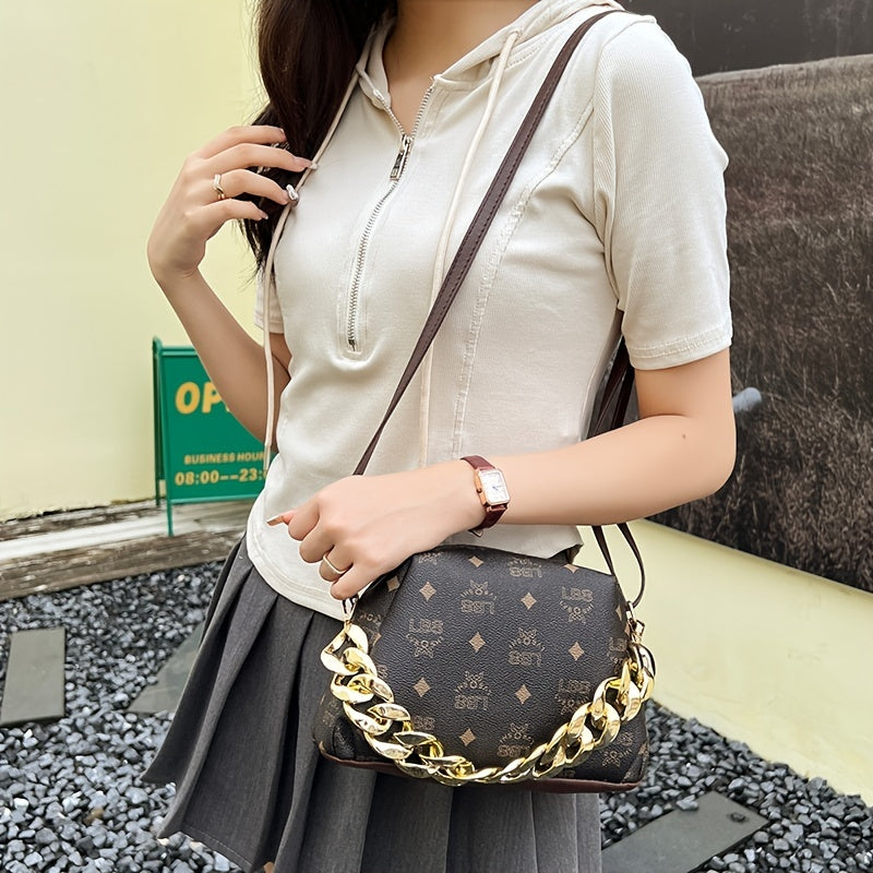 solvbao 1pc New Vintage Printed Crossbody Bag, Stylish Casual Messenger Bag, Cute Sweet Diagonal Bag, Simple Bag, Women's Bag With Chain Handle, Mobile Phone Bag, Camera Bag, Lipstick Bag, Key Bag