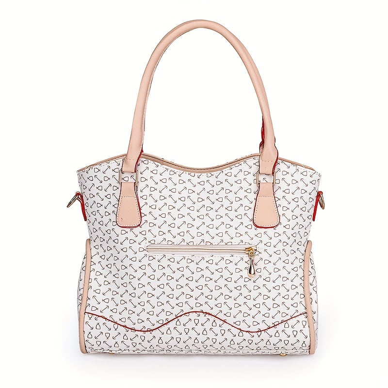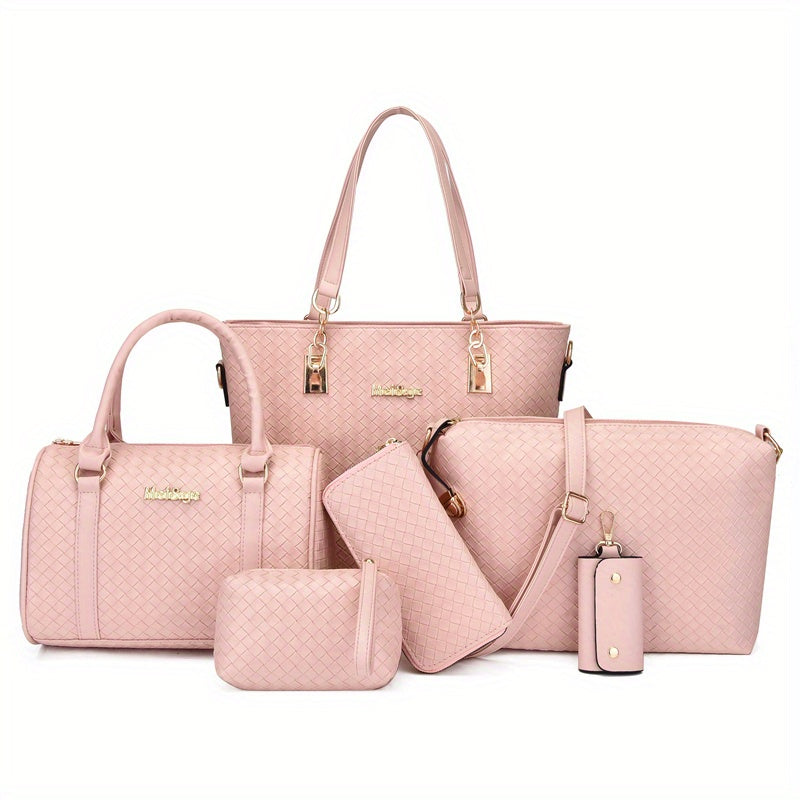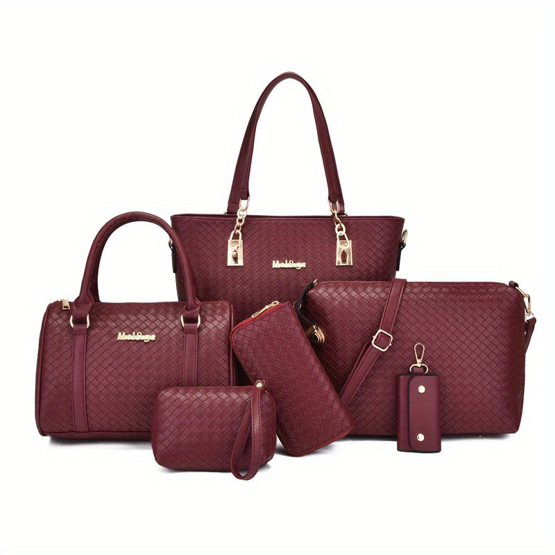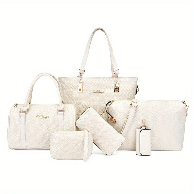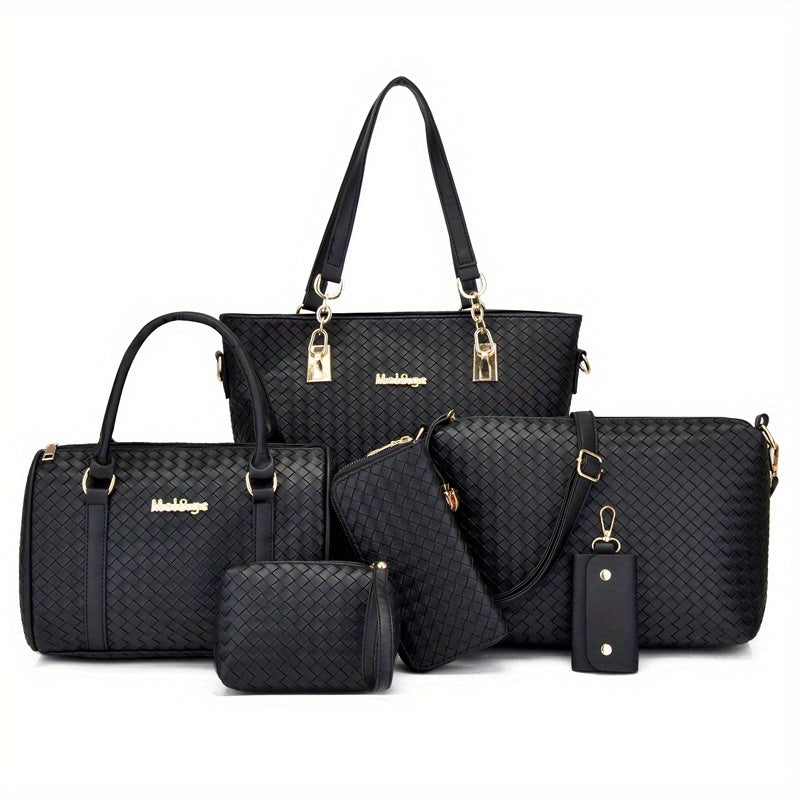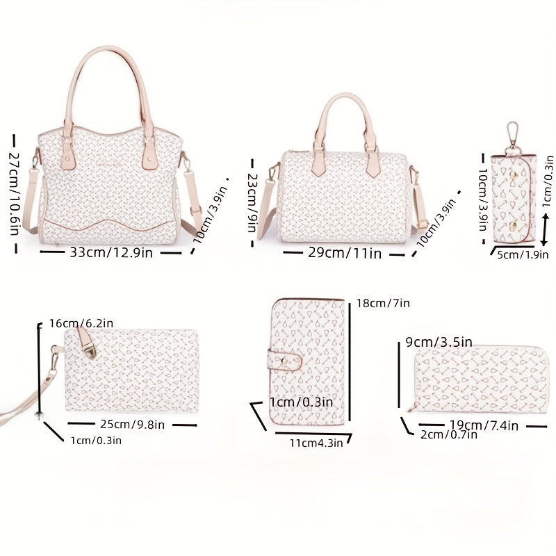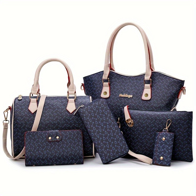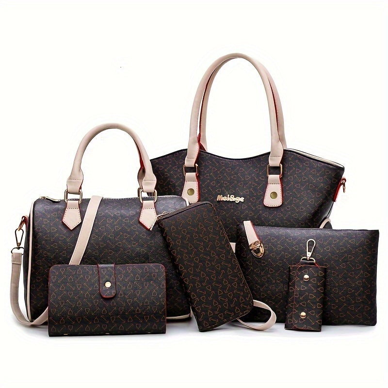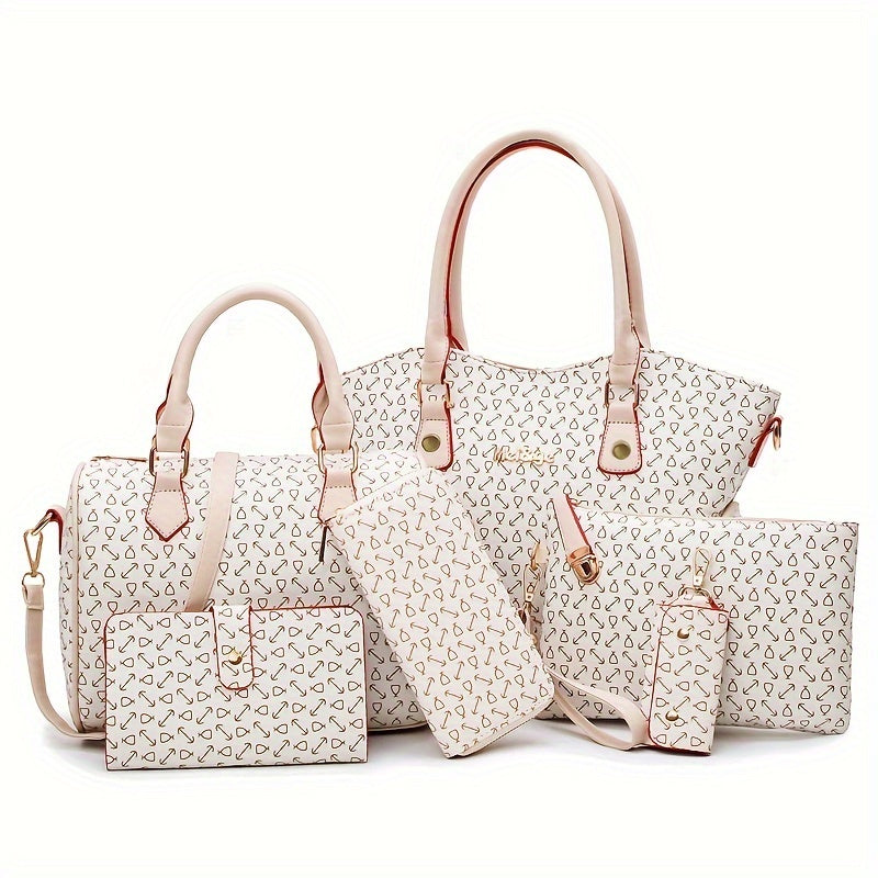 solvbao 6pcs Geometric Pattern Tote Bag Set, Fashion Faux Leather Handbag & Crossbody Bag & Clutch Wallet & Wristlet & Key Case