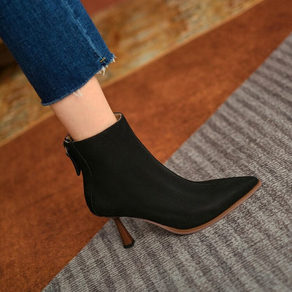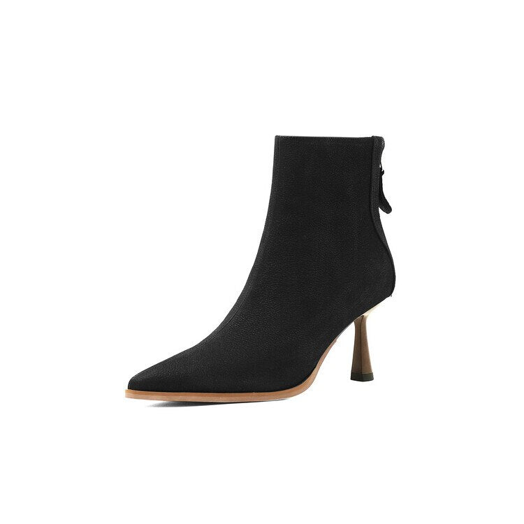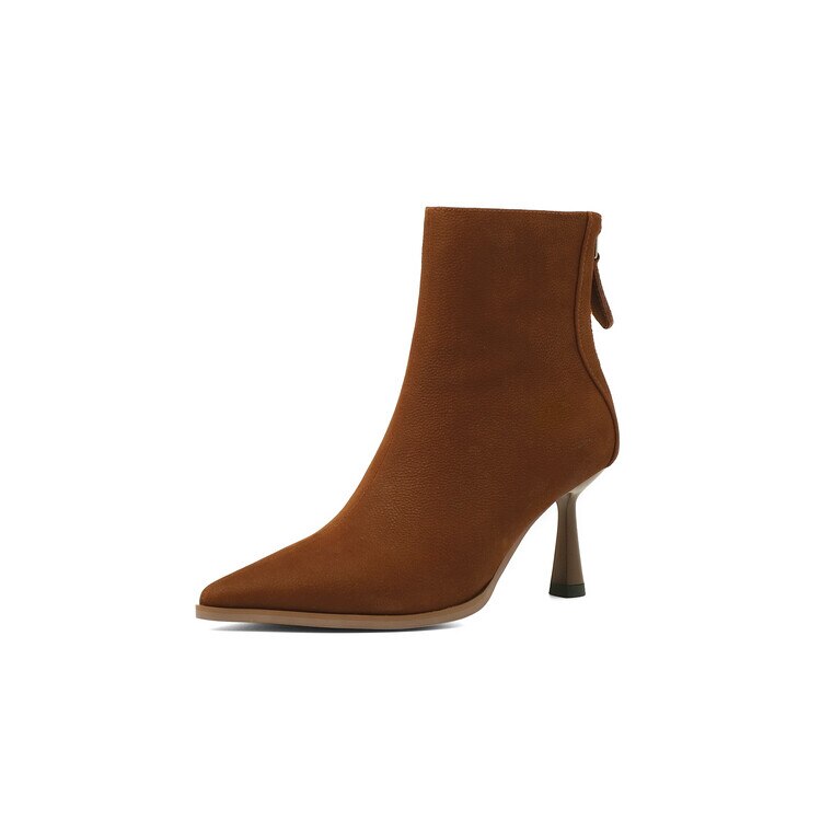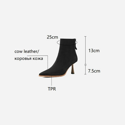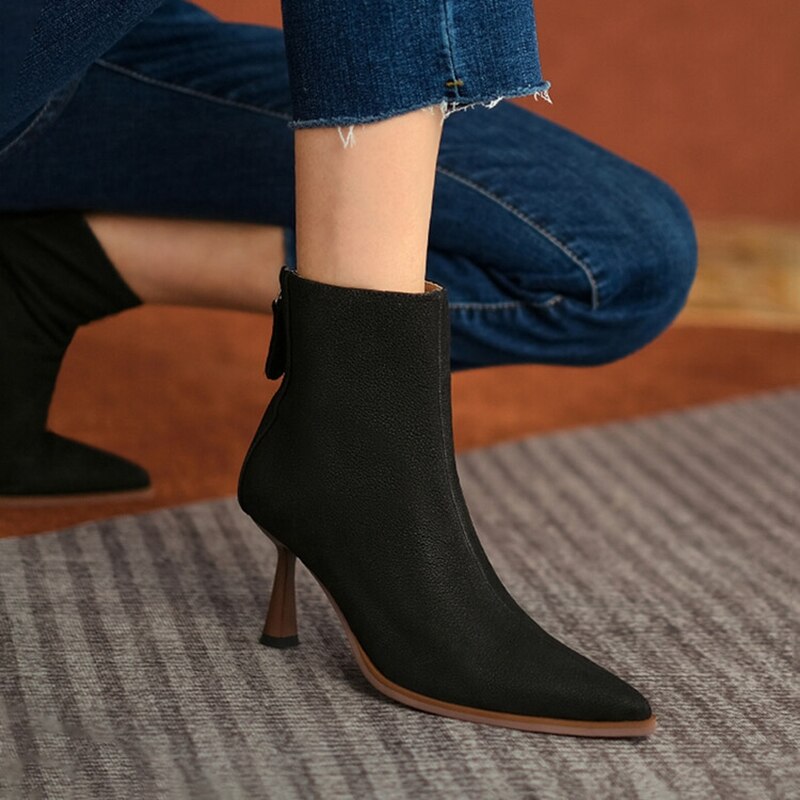 Solvbao Autumn Boots NEW Fall Shoes Women Pointed Toe High Heel Shoes Genuine Leather Shoes Thin Heel Ankle Boots for Women Zipper Modern Boots