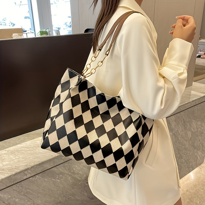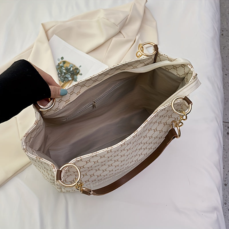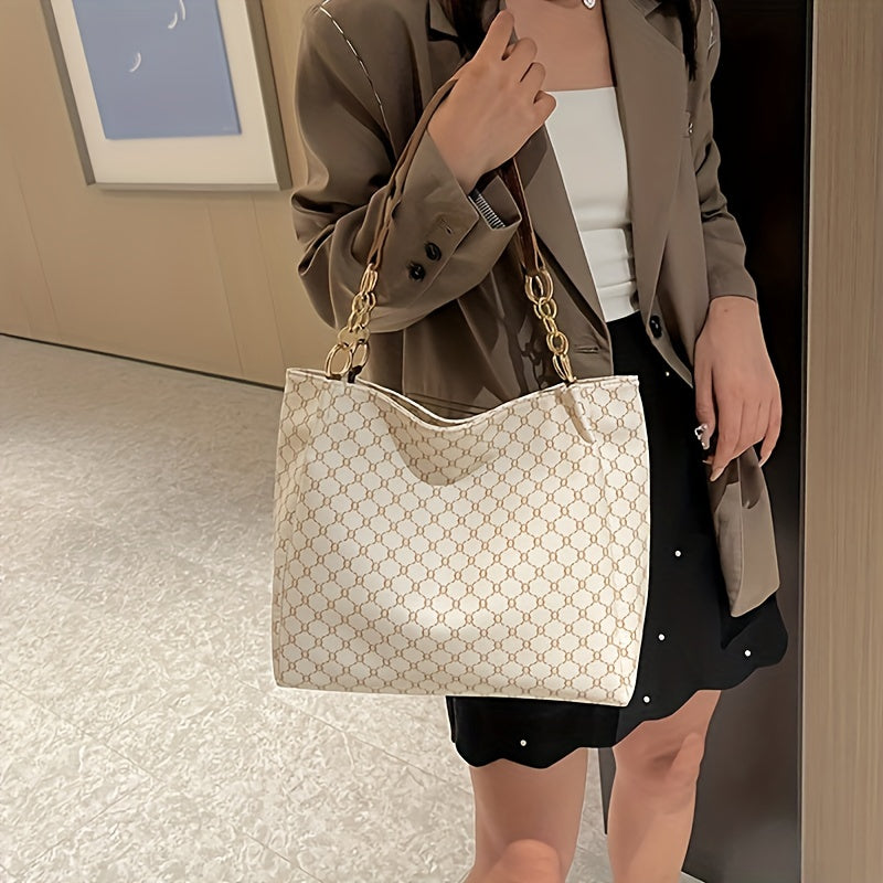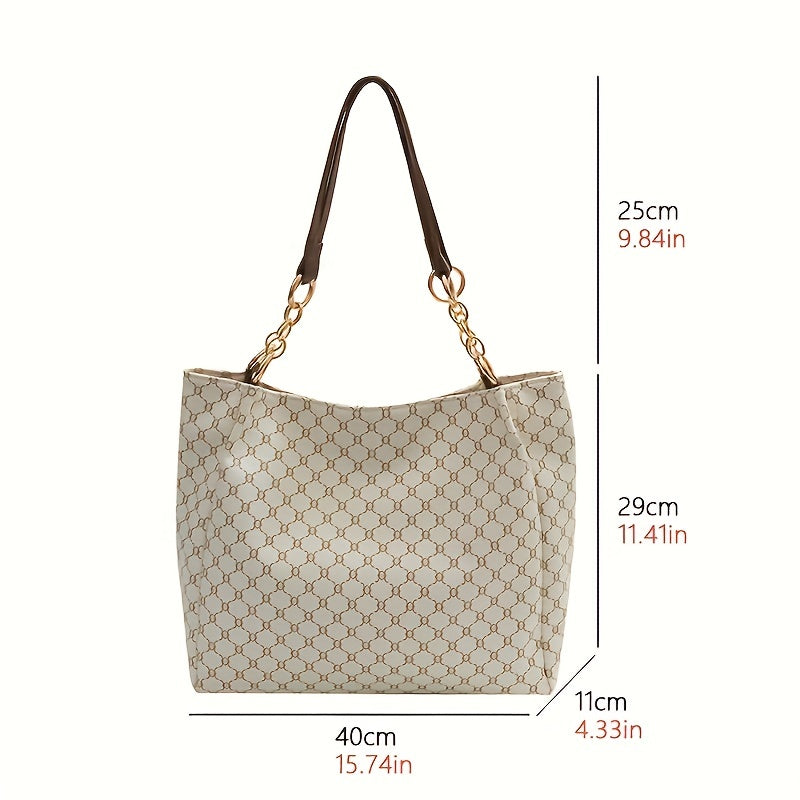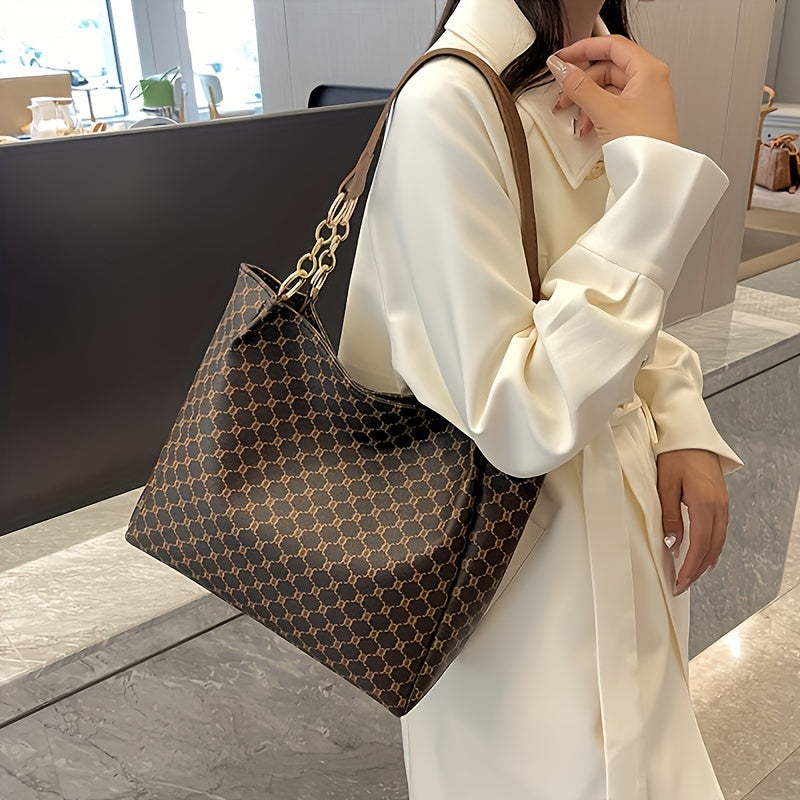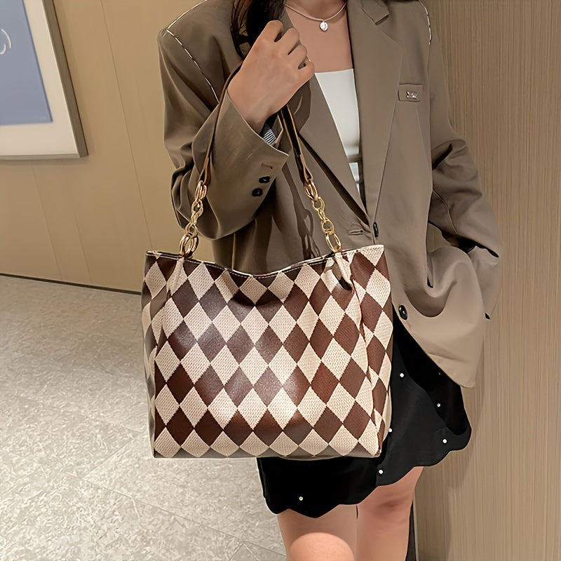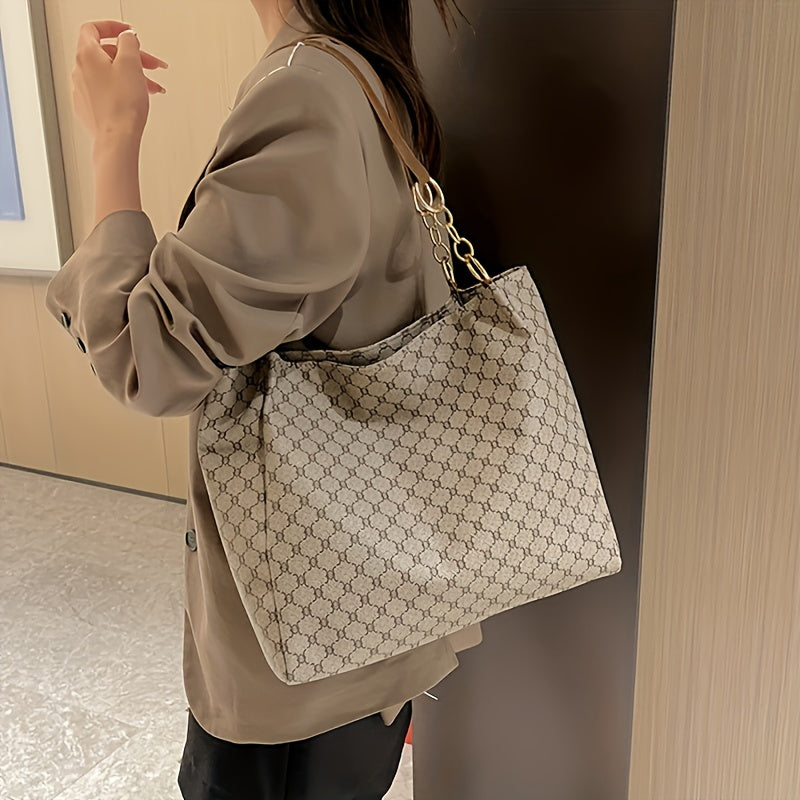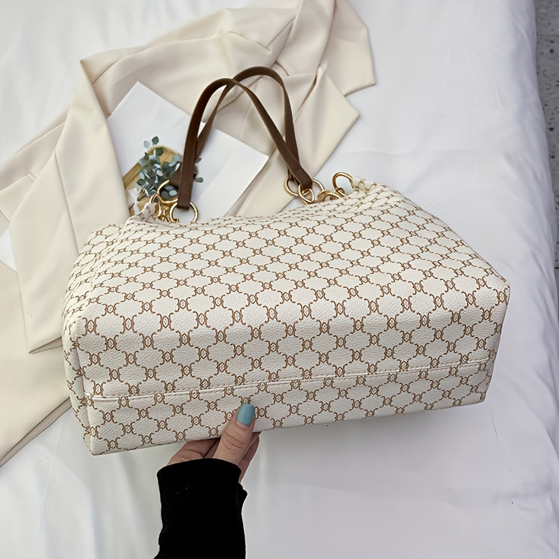 solvbao Classic Geometric Pattern Tote Bag, Vintage Shoulder Women's Office Bag, All-Match PU Leather Bag
