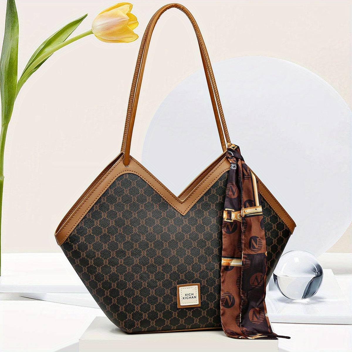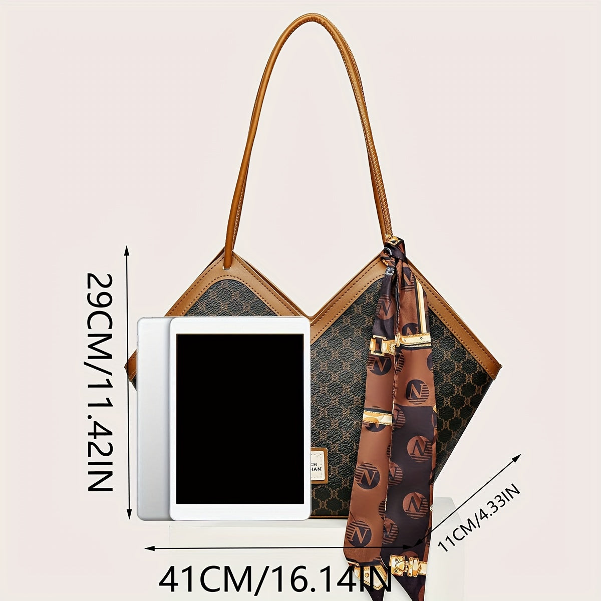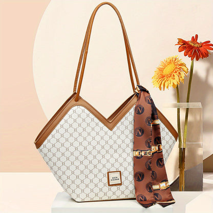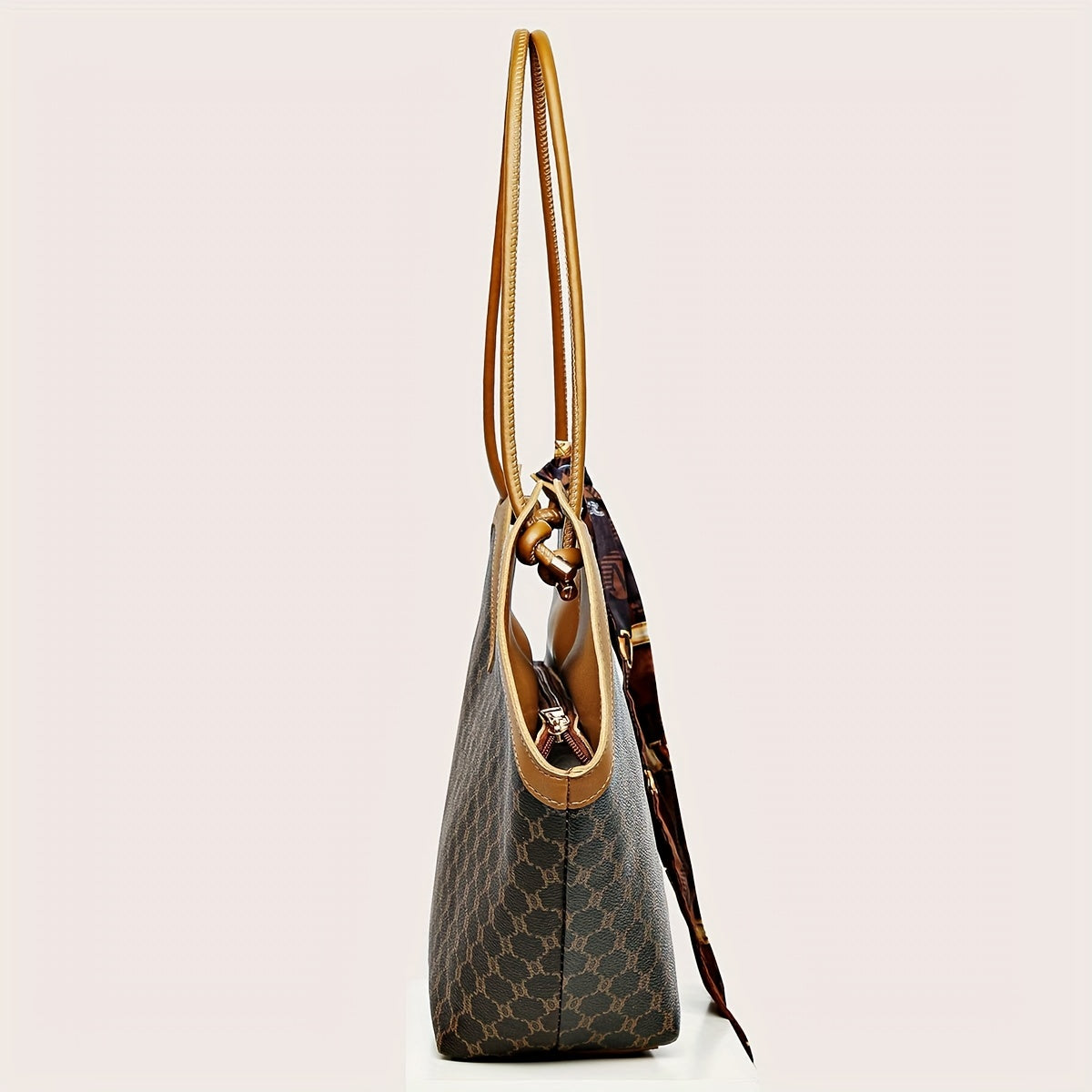 solvbao Classic Niche Design Shoulder Bag, Retro Pattern Handbag With Scarf Decor, Women's PUl Leather Bag For Work