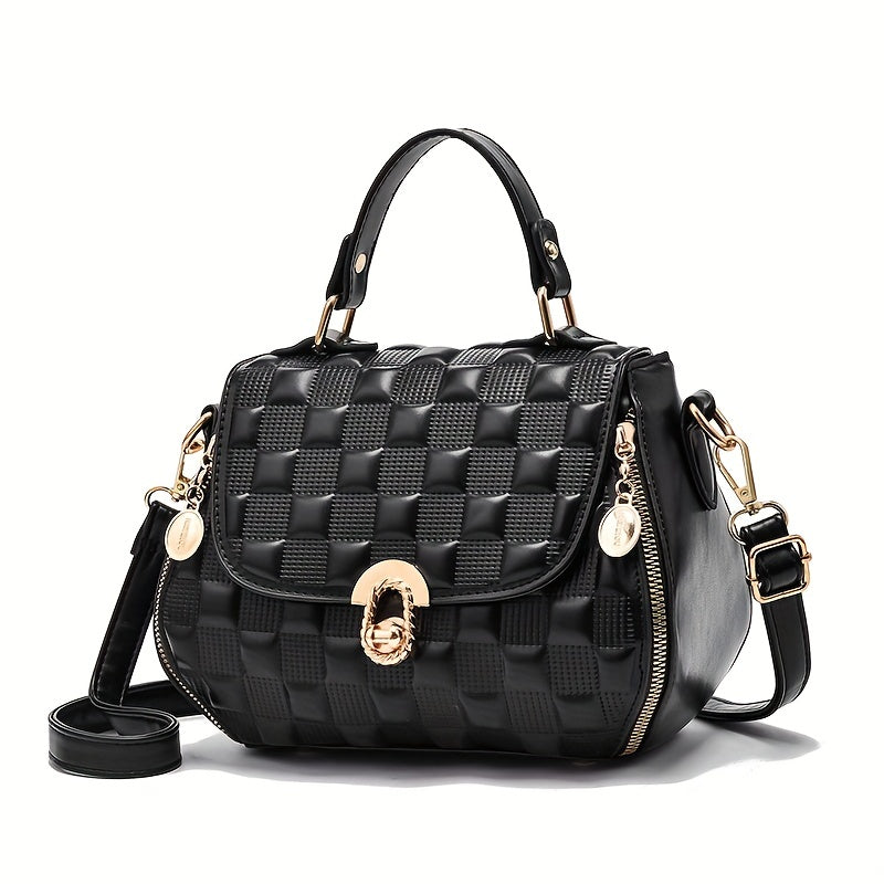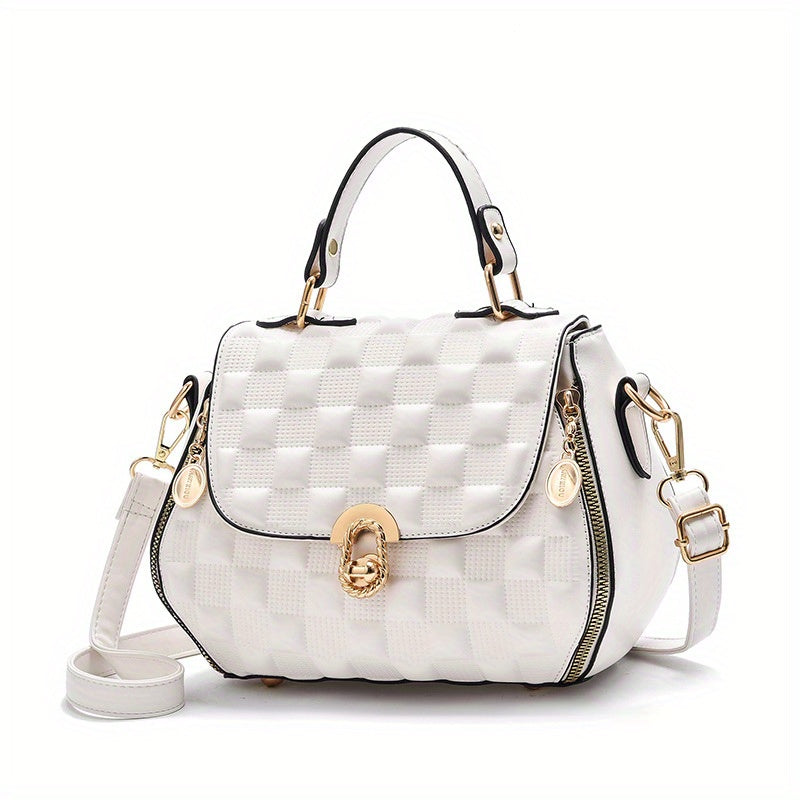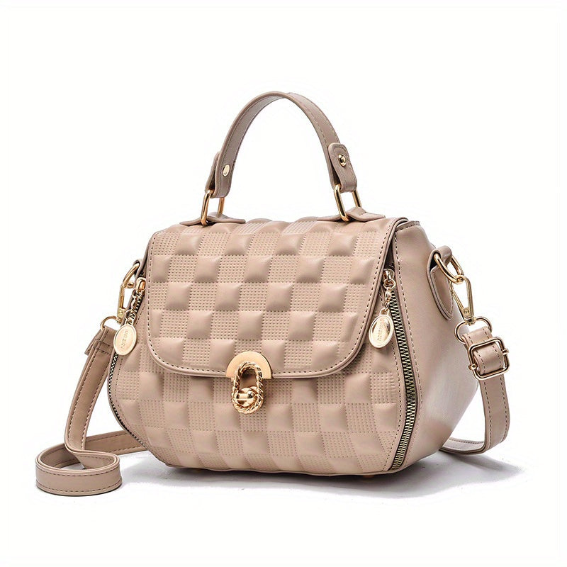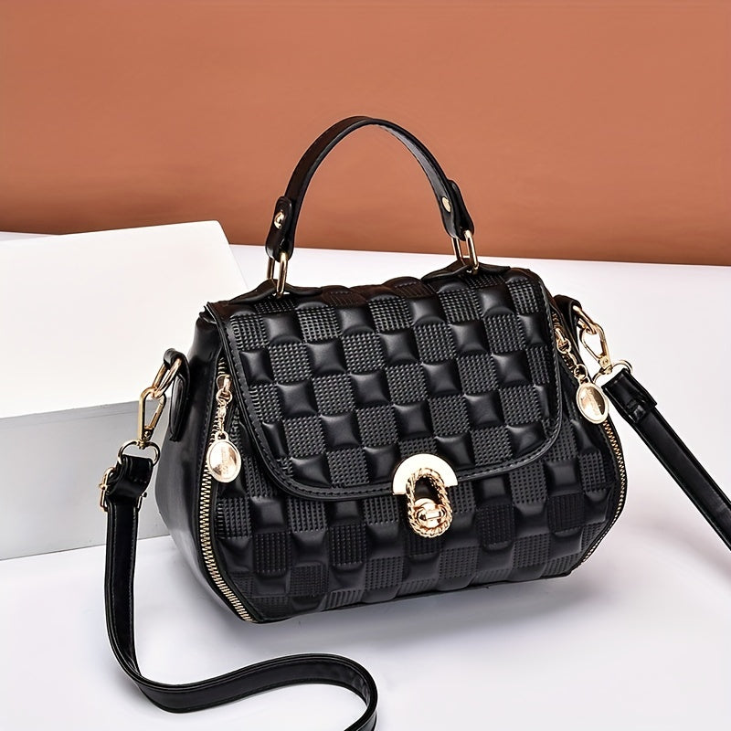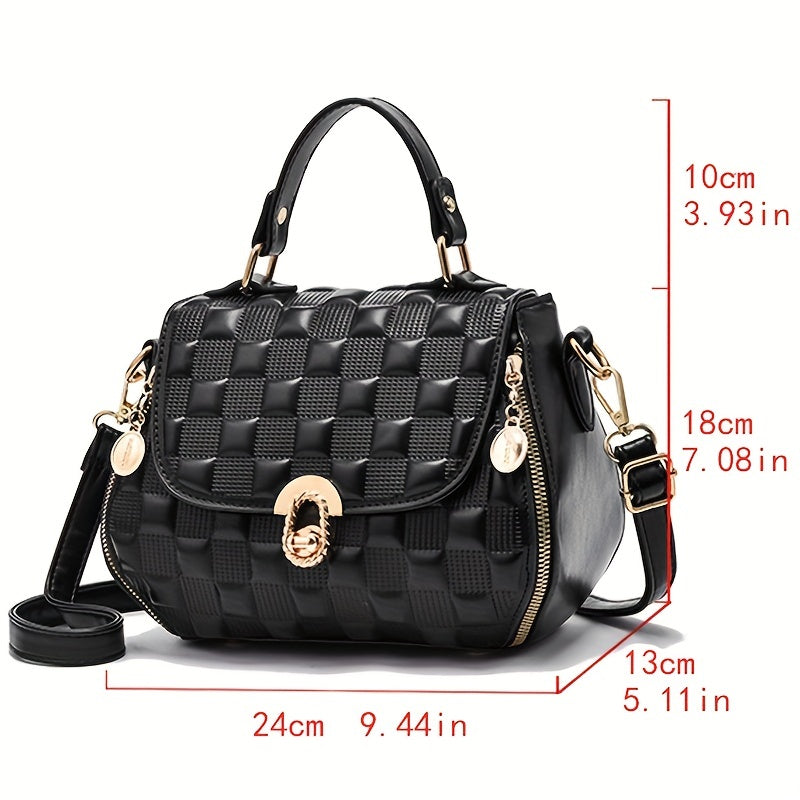 solvbao Classic Square Shoulder Bag, Plaid Embossed Satchel Bag, Women's All-Match Crossbody Bag