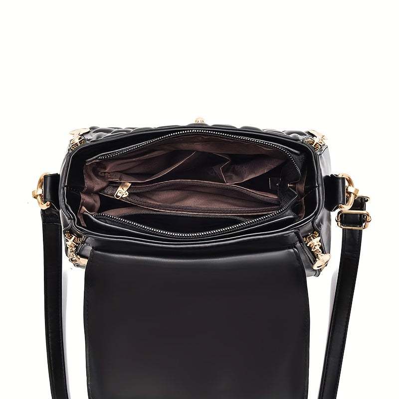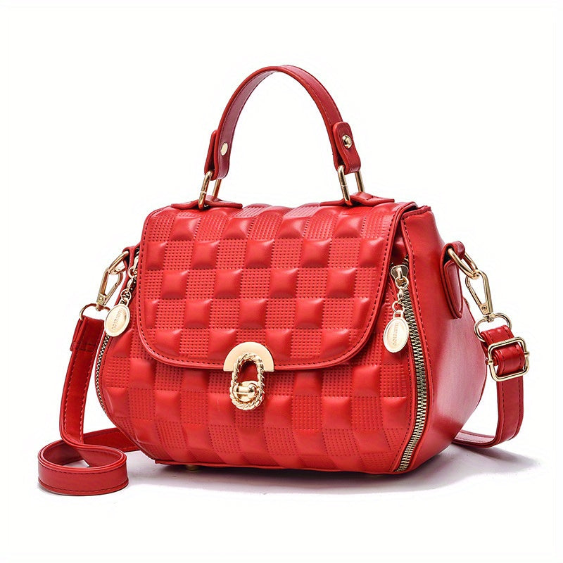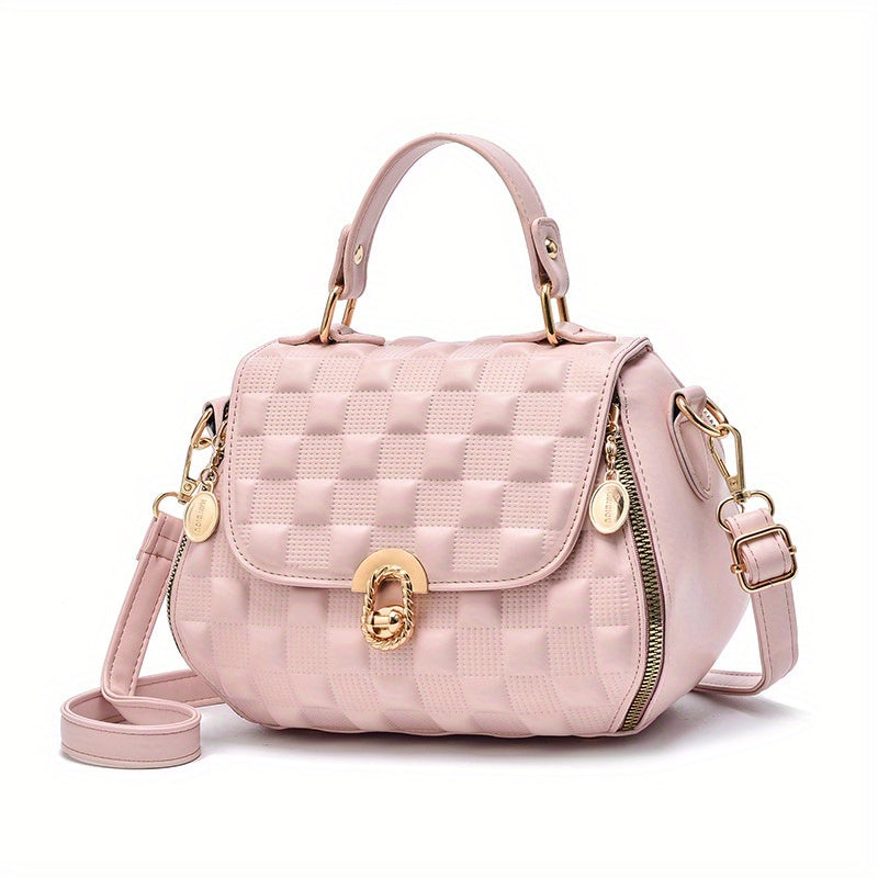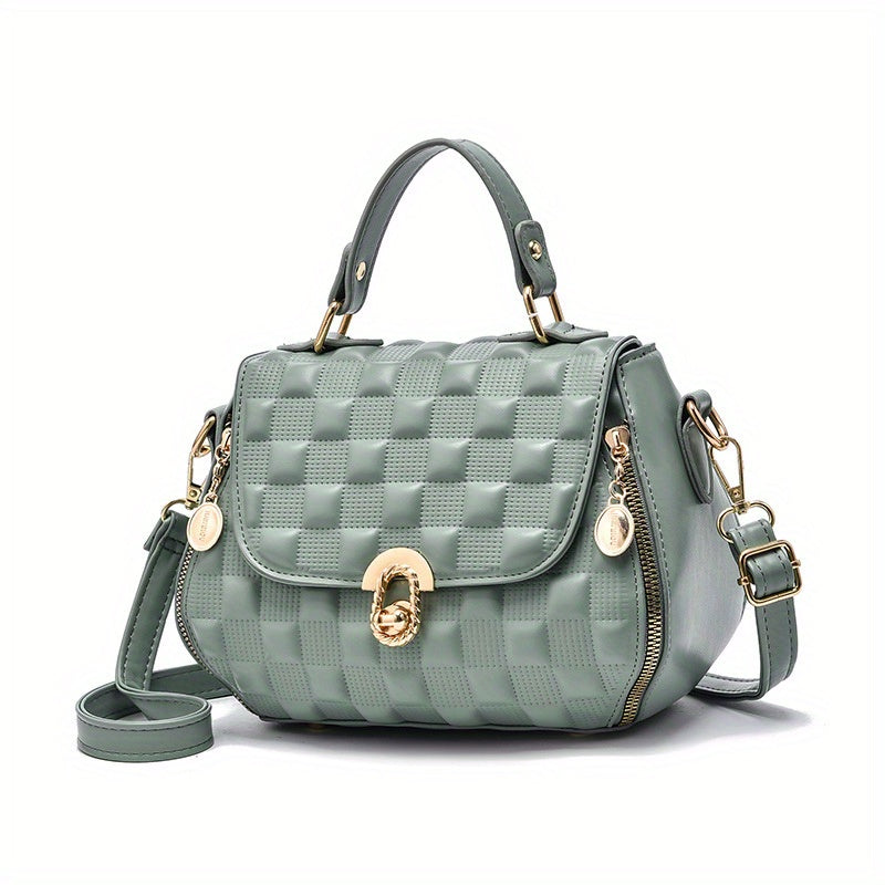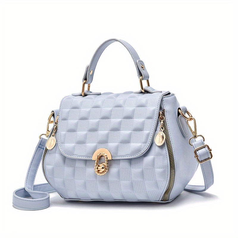 solvbao Classic Square Shoulder Bag, Plaid Embossed Satchel Bag, Women's All-Match Crossbody Bag