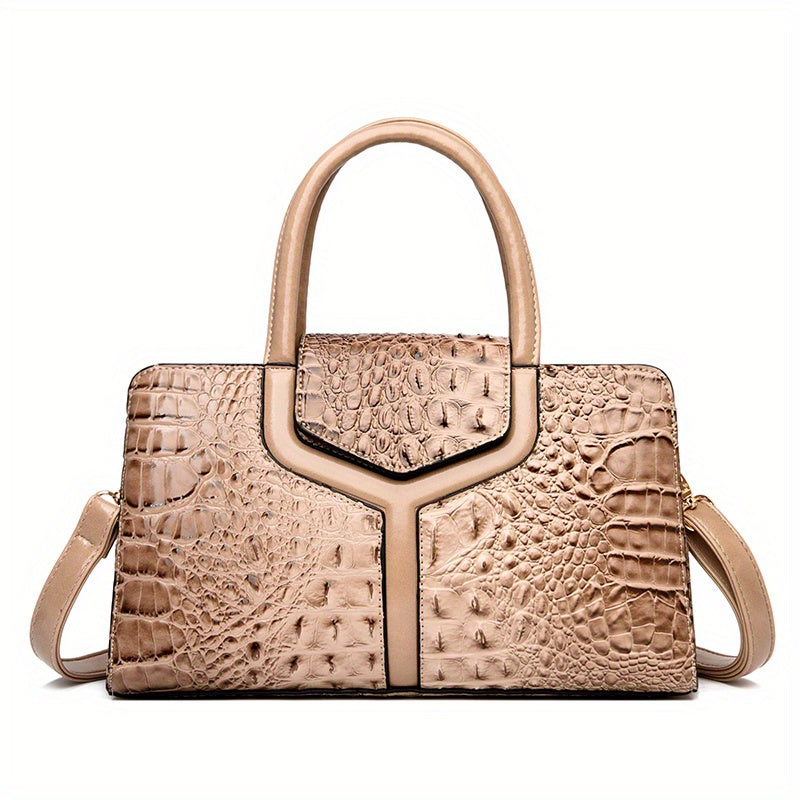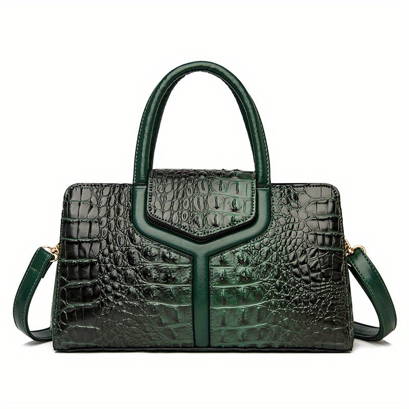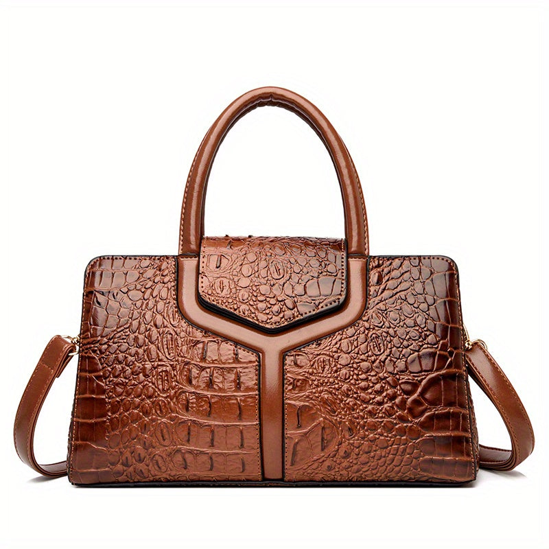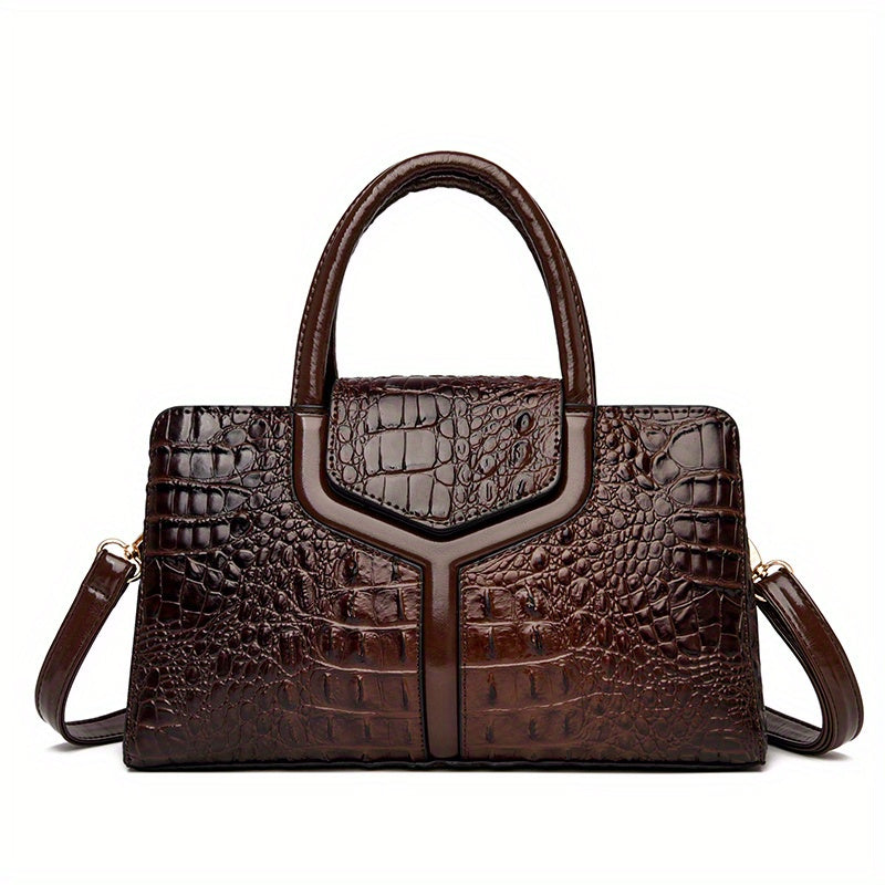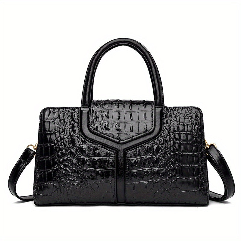 solvbao Crocodile Embossed Handbag, Elegant PU Crossbody Bag, Top Handle Satchel Purse For Women