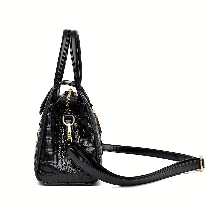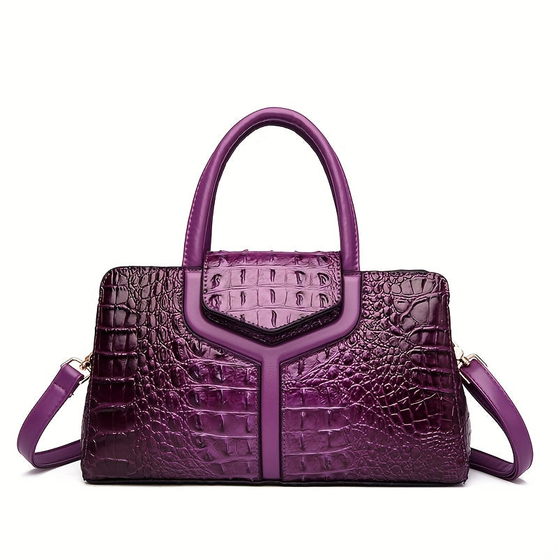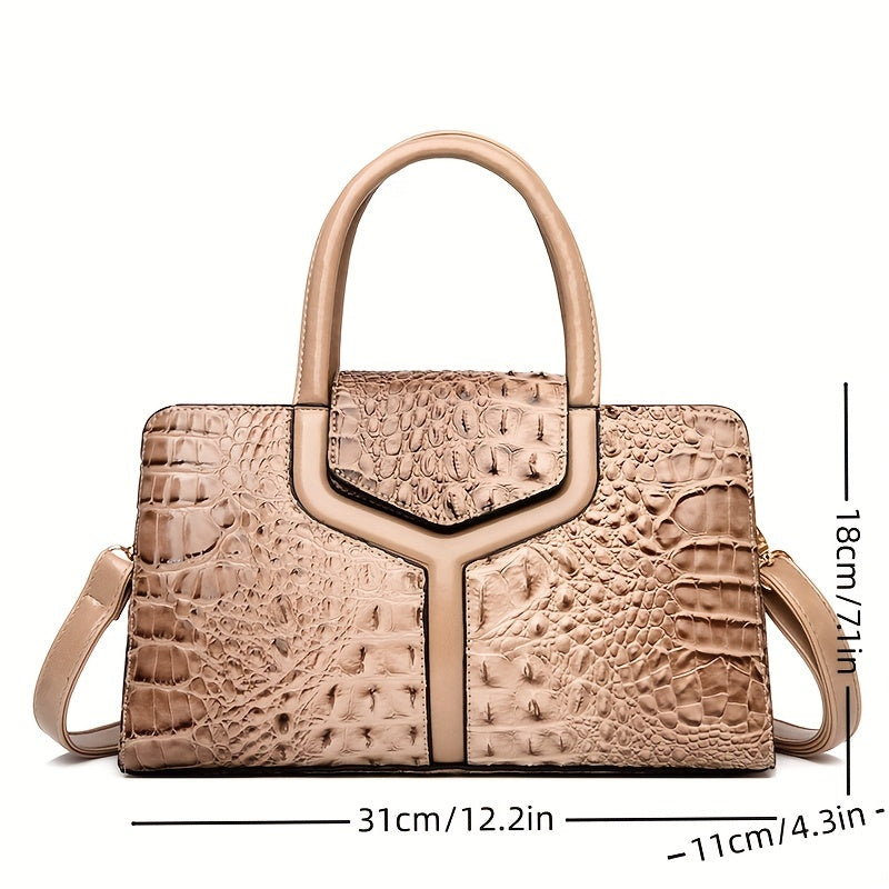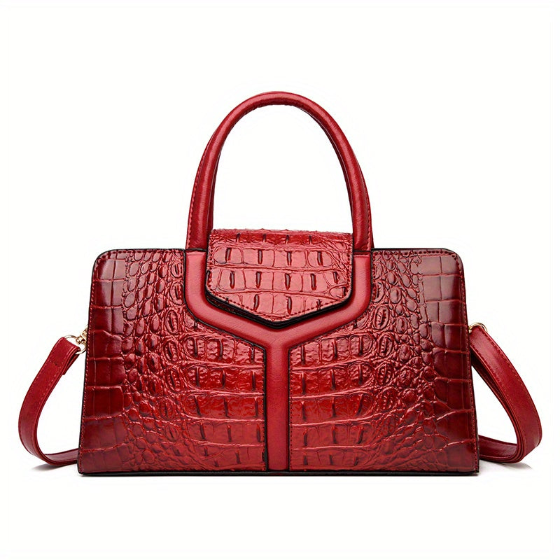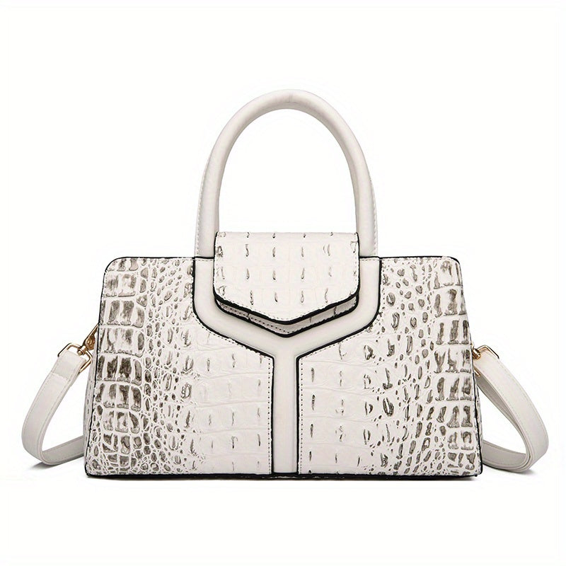 solvbao Crocodile Embossed Handbag, Elegant PU Crossbody Bag, Top Handle Satchel Purse For Women