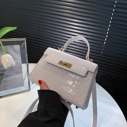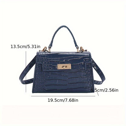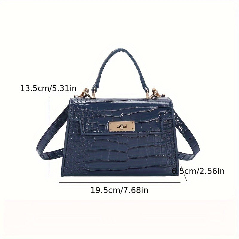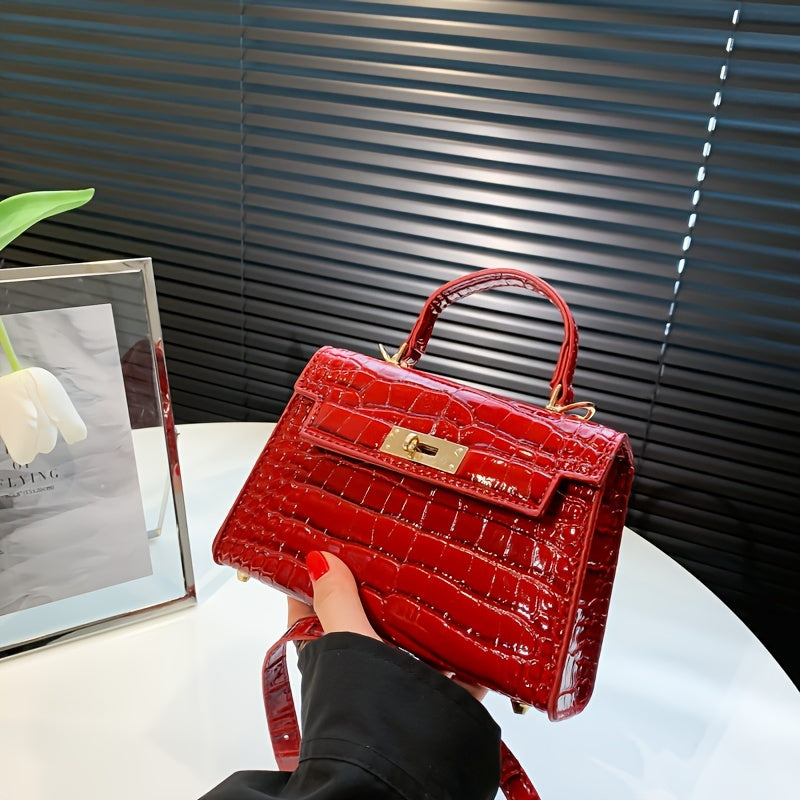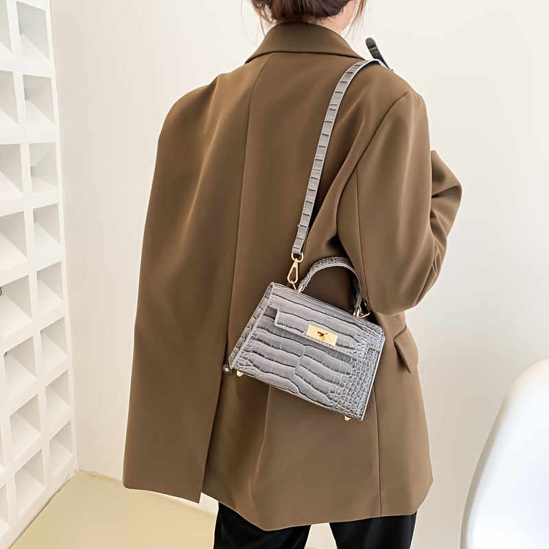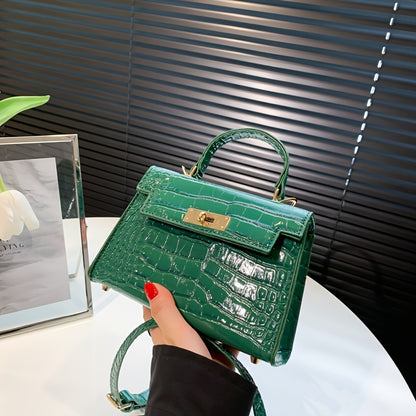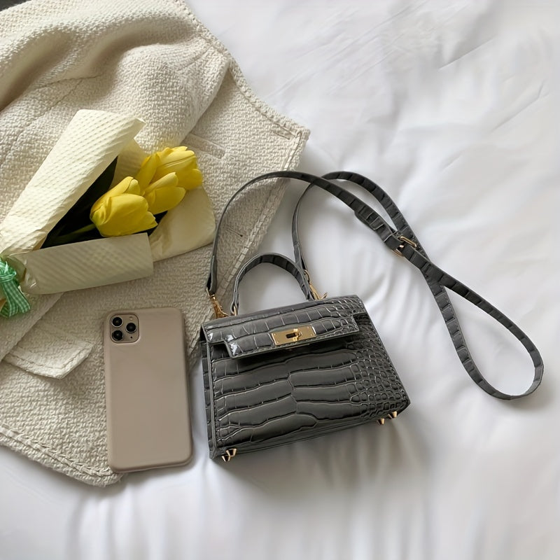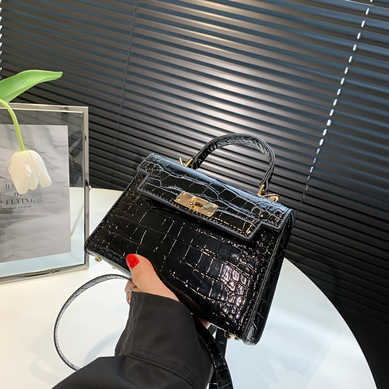 solvbao Crocodile Pattern Mini Handbag, Luxury Design Crossbody Bag, Women's Top Handle Flap Purse