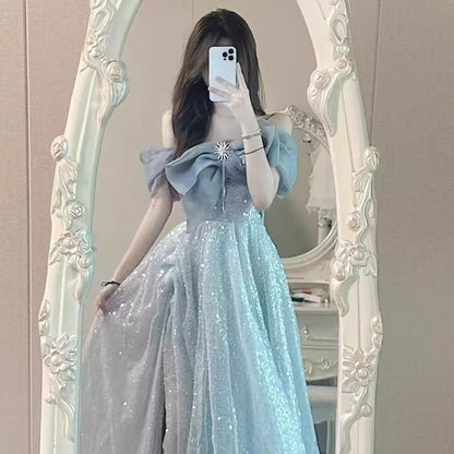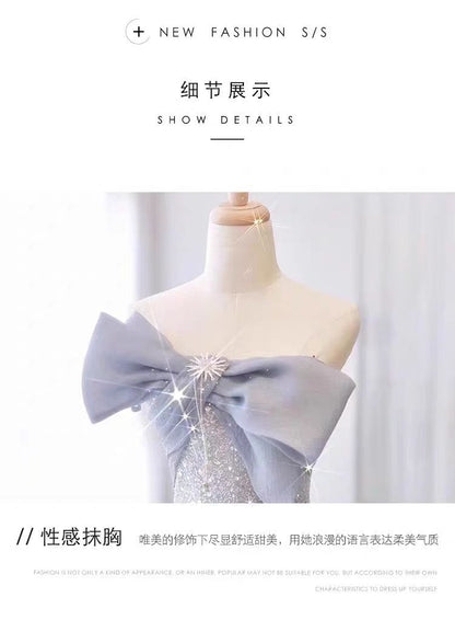 SOLVBAO Evening Dress Women's off-Shoulder Niche High-End Host Art Exam Adult Ceremony Dress Pettiskirt for Banquet Temperament Entry Lux