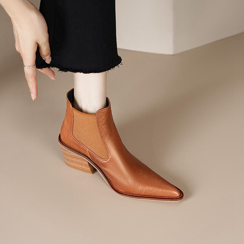 Solvbao fashion inspo Autumn Boots Women Split Leather Shoes for Women Pointed Toe Ankle Boots Chunky Heel Shoes Western Boots казаки женские обувь