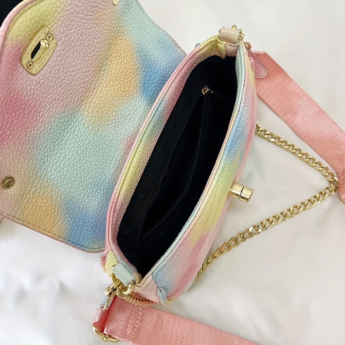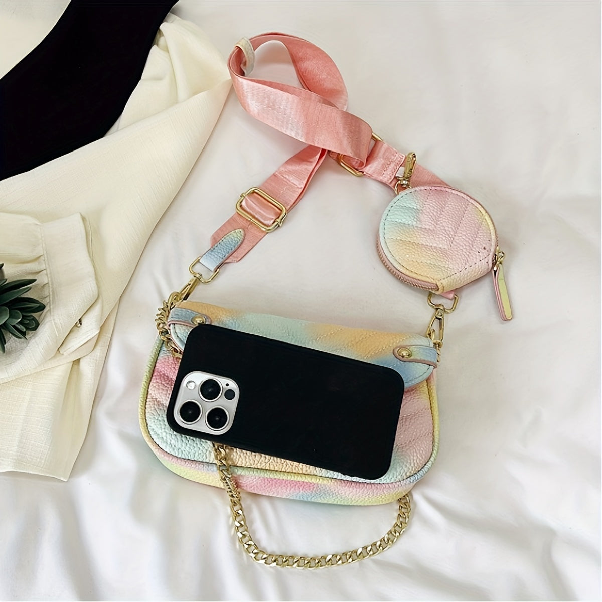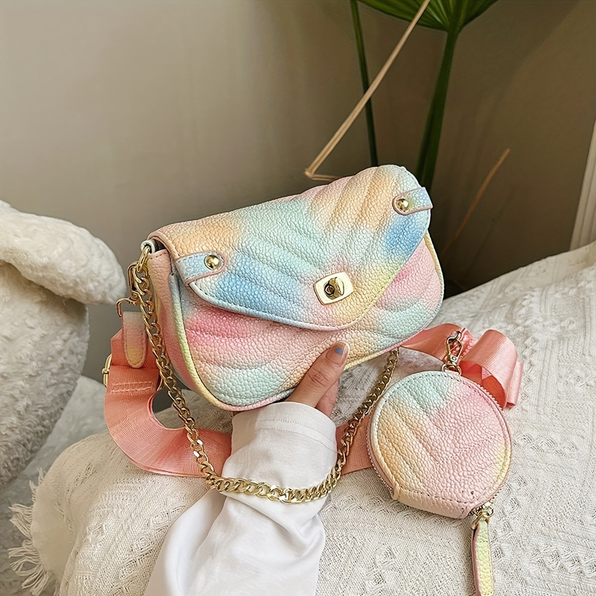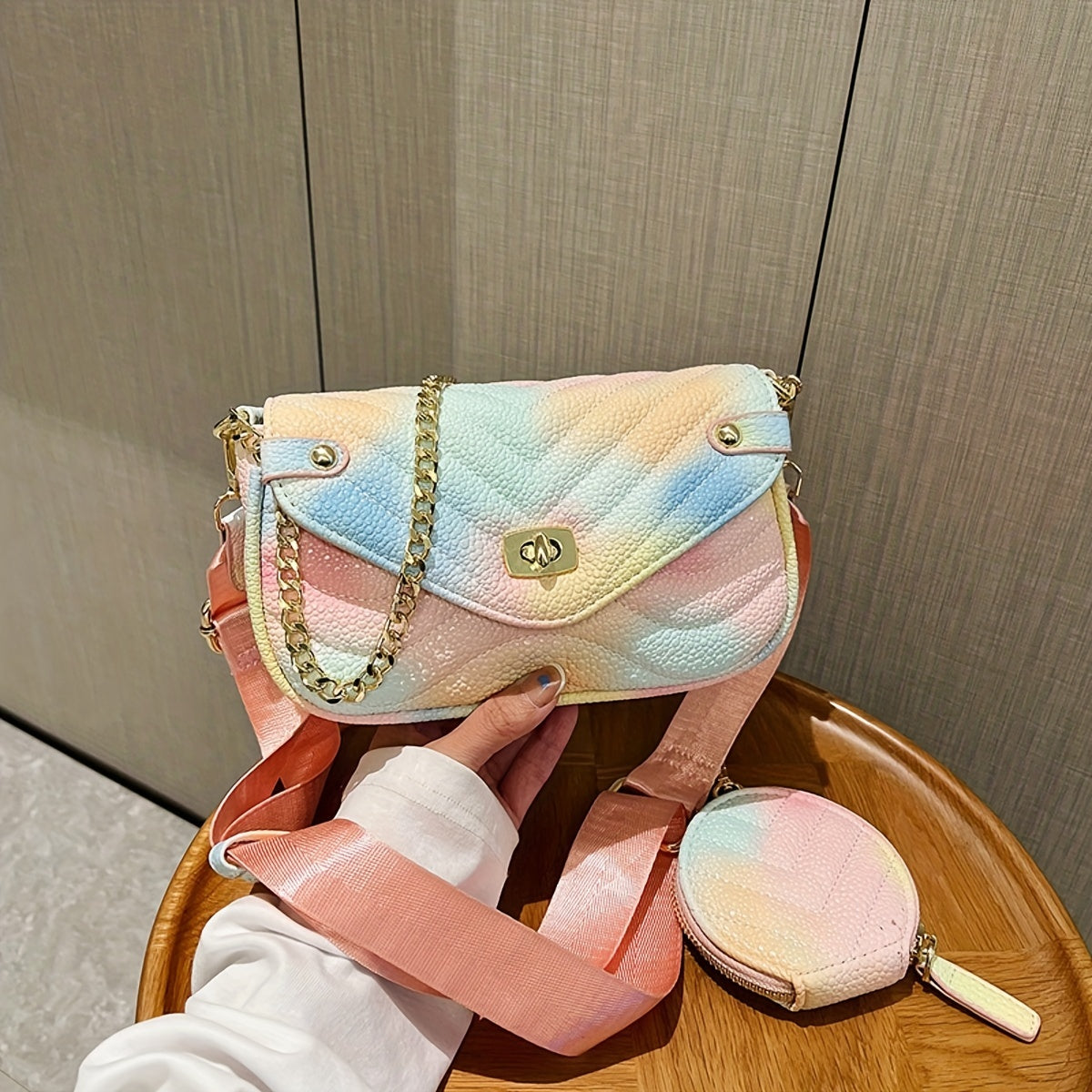 solvbao Gradient Metal Chain Crossbody Bag, PU Leather Textured Flap Bag, Classic Fashion Versatile Shoulder Bag