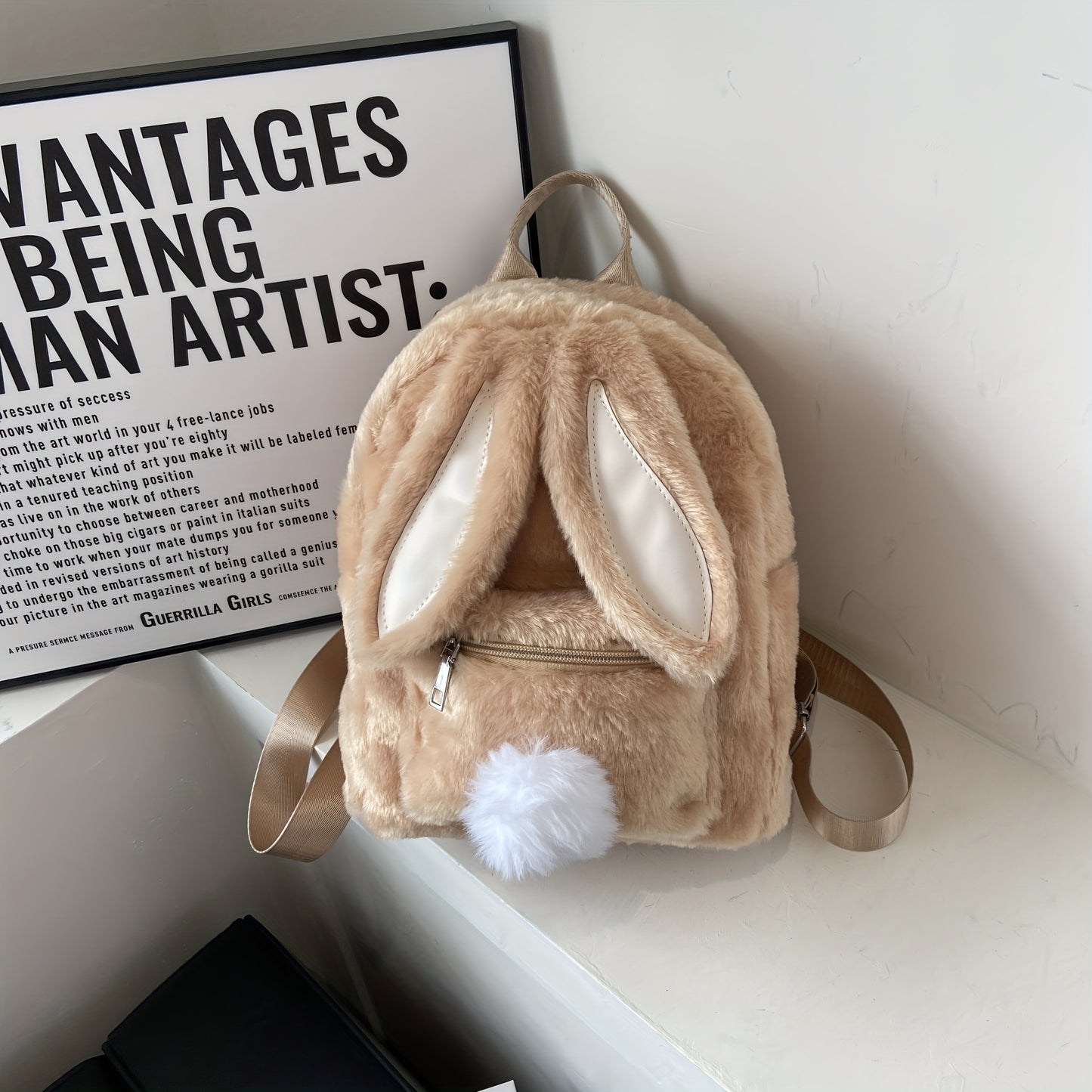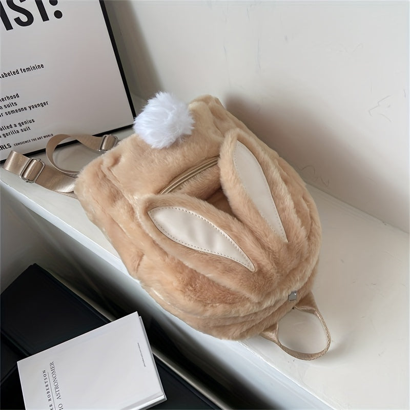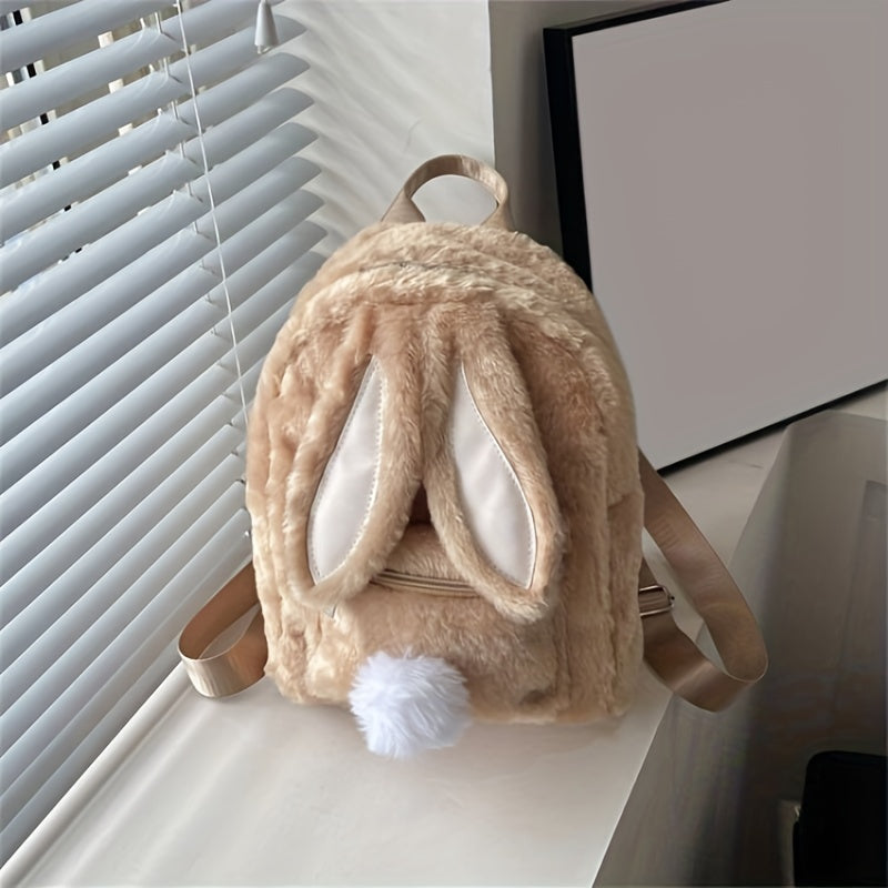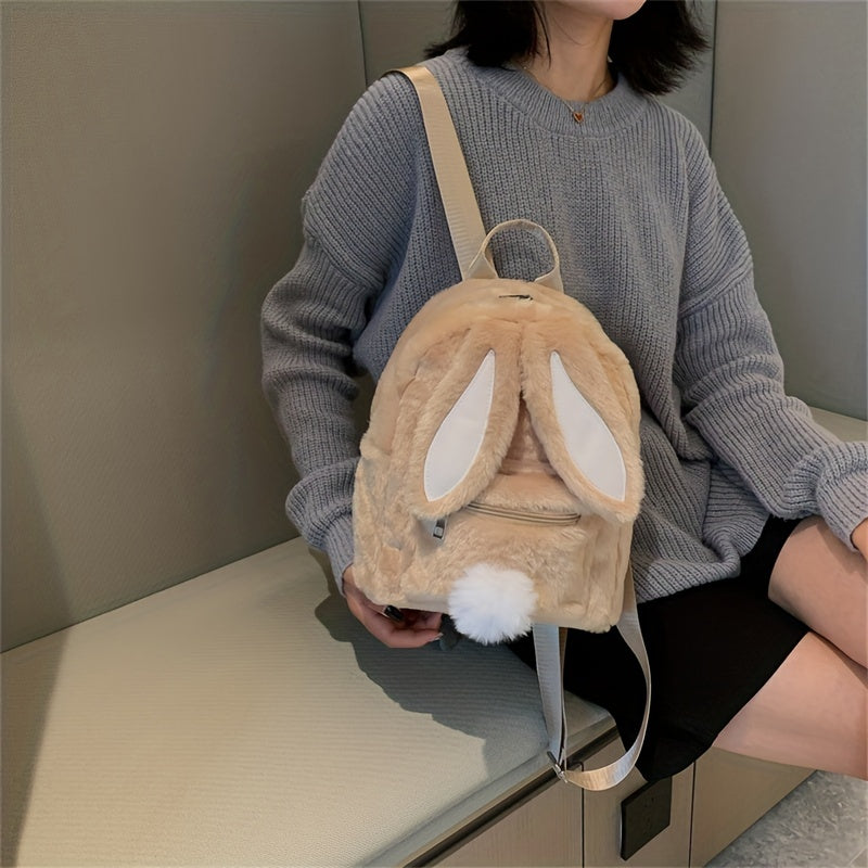 solvbao Kawaii Bunny Shaped Backpack, Plush Trendy Zipper Rucksack, All-Match Cute Rucksack