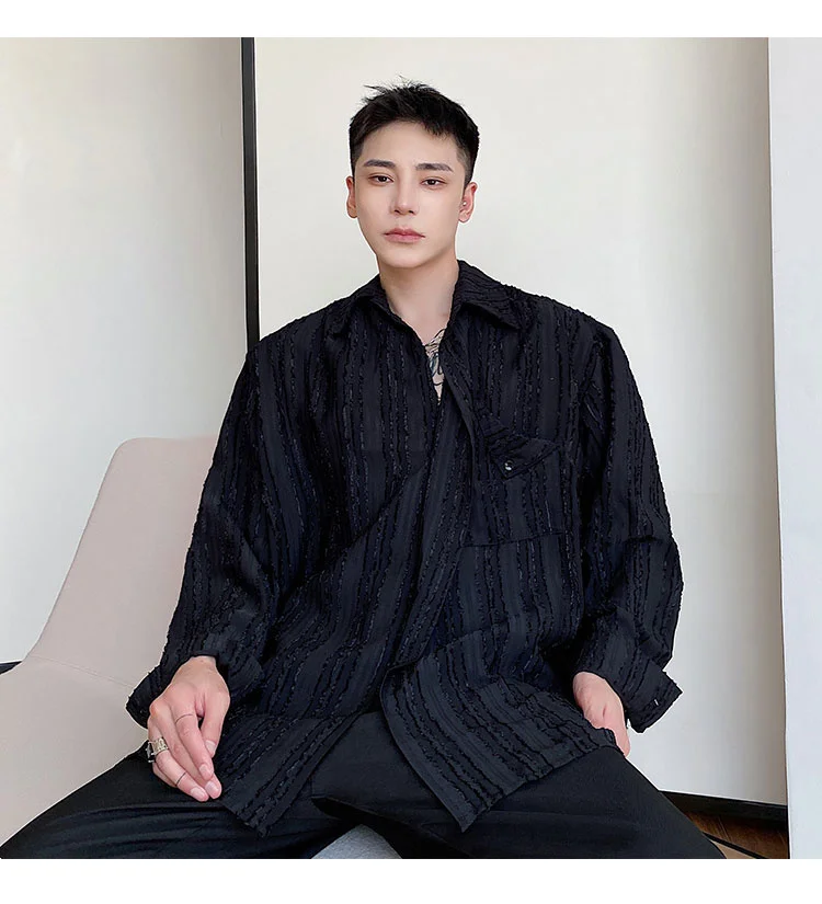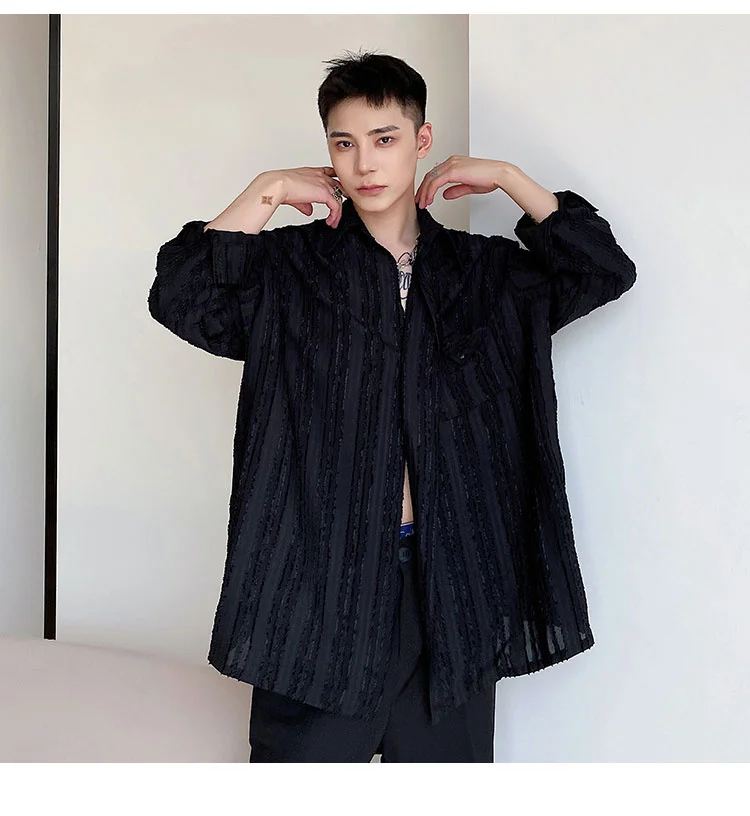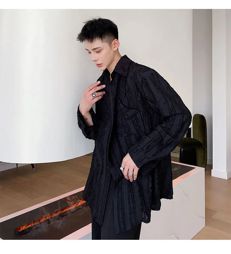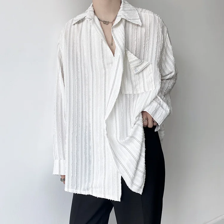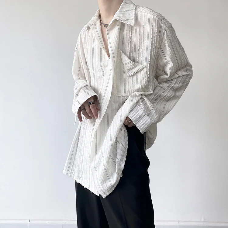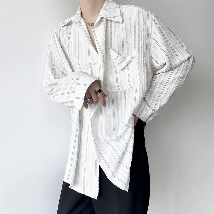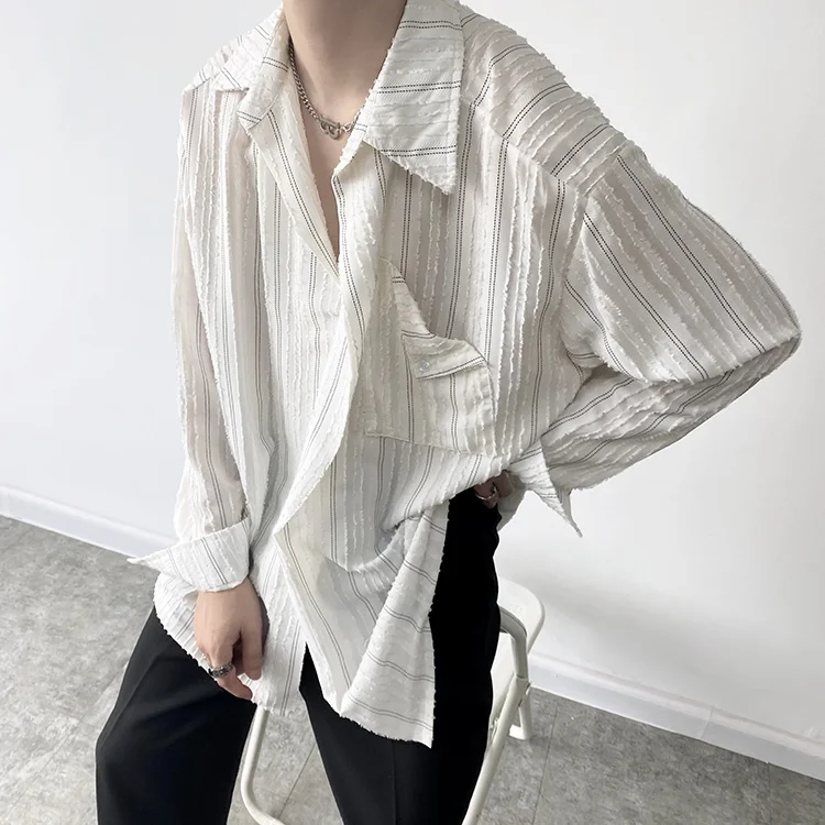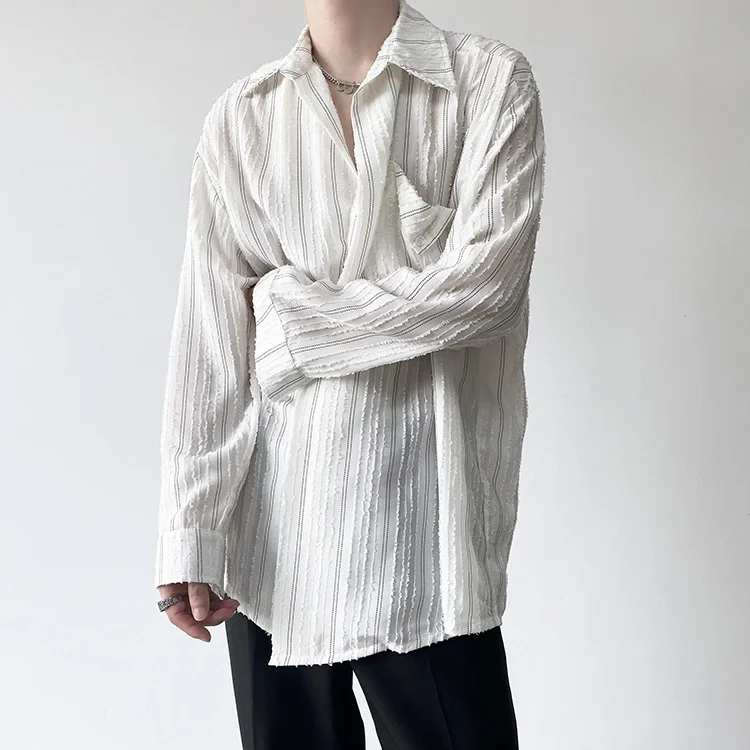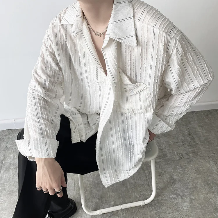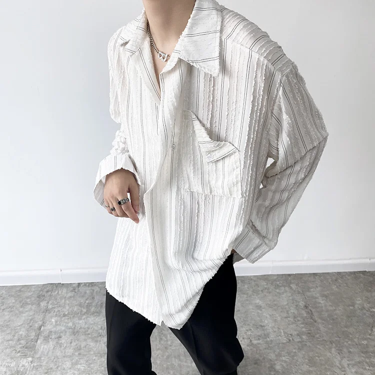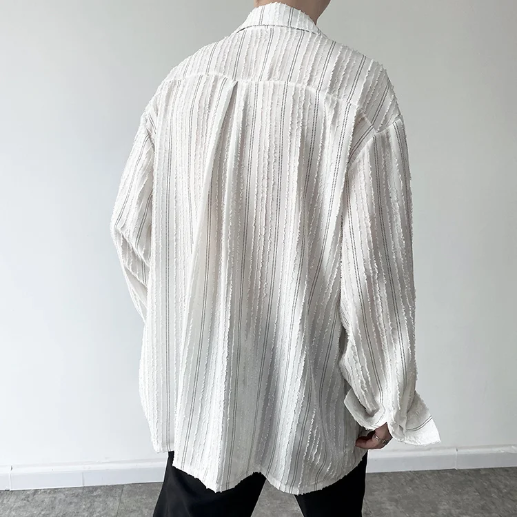Solvbao - Korean Menswear Style Fashion Simple Striped Tops Men's New Loose Lapel Cardigan Long Sleeve Shirts Male Tide Spring