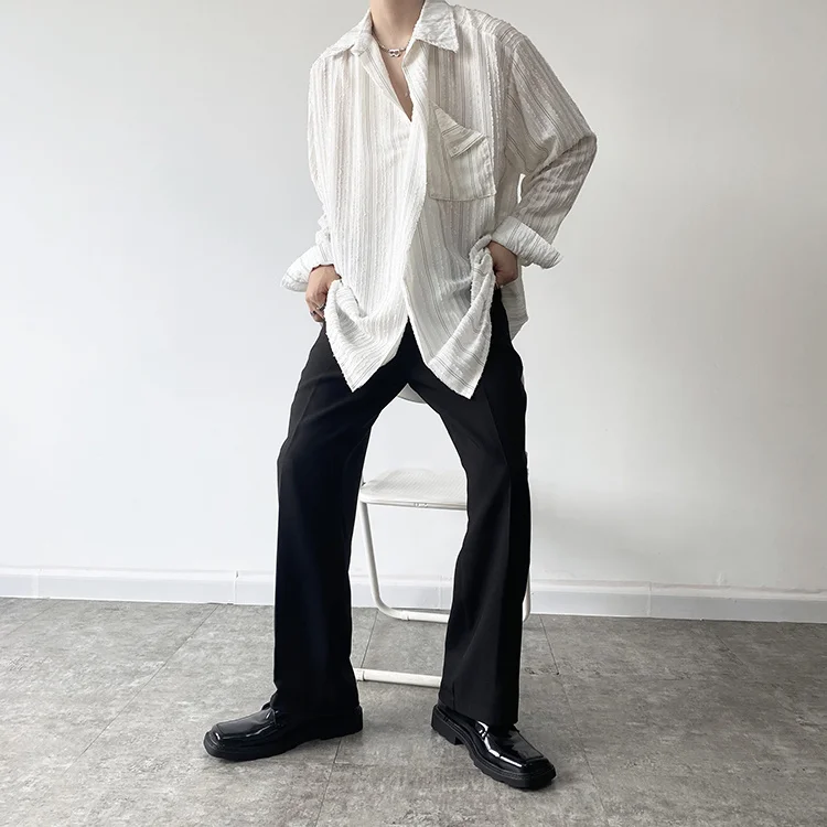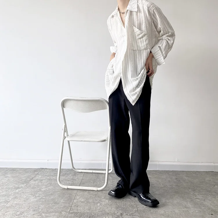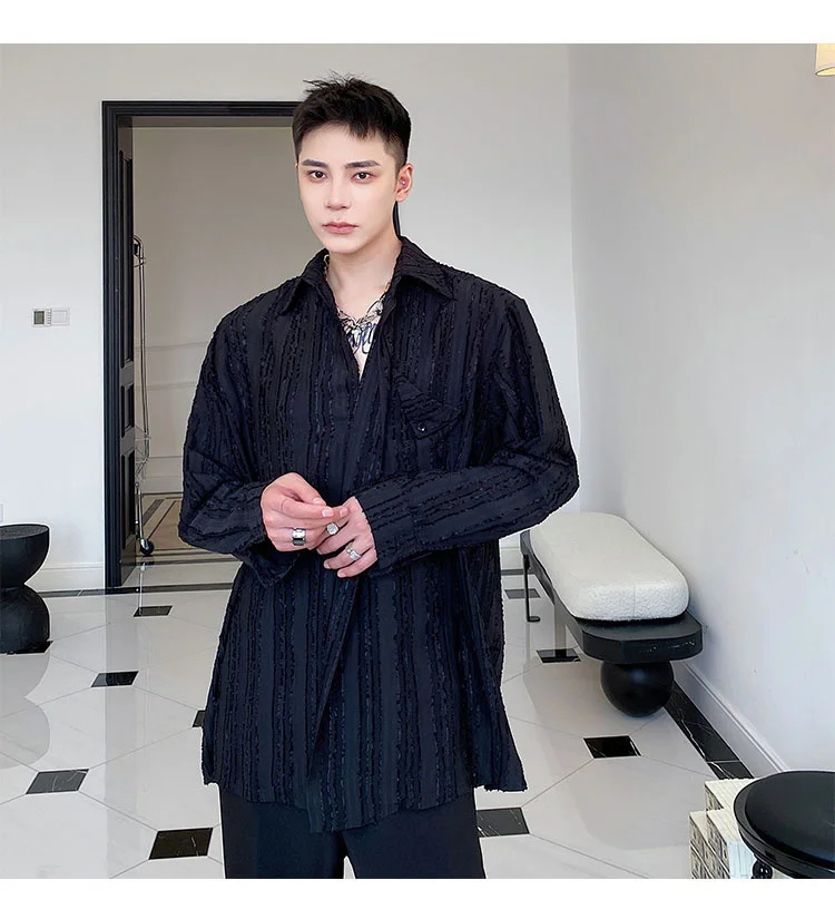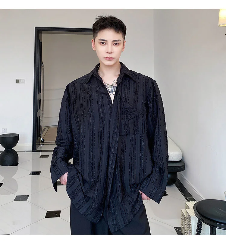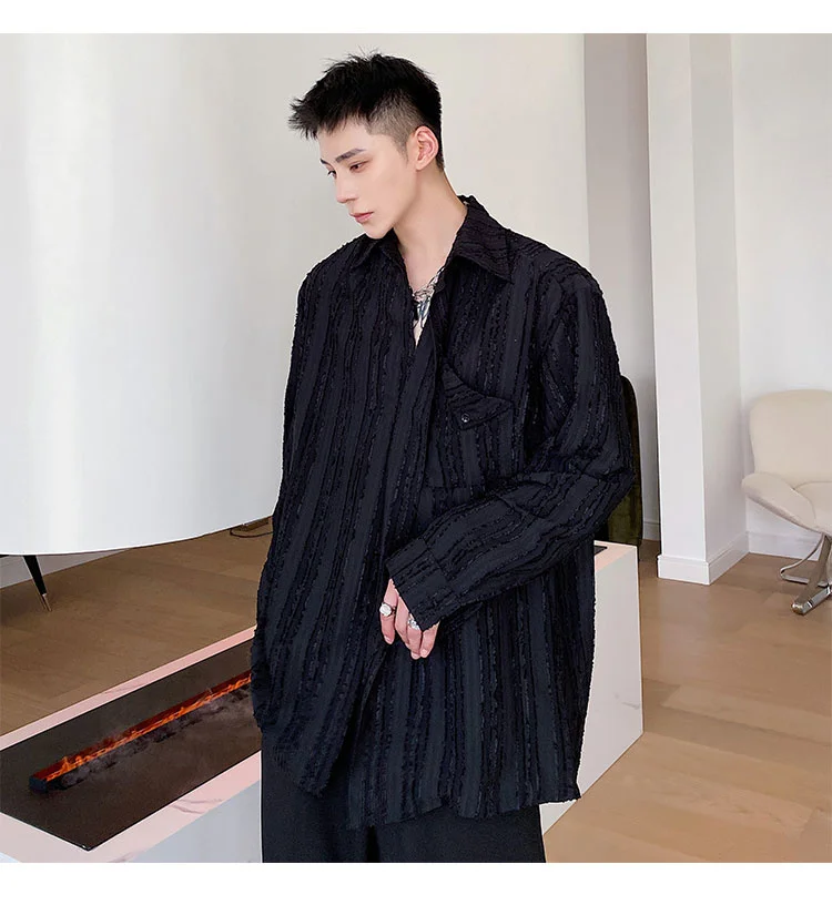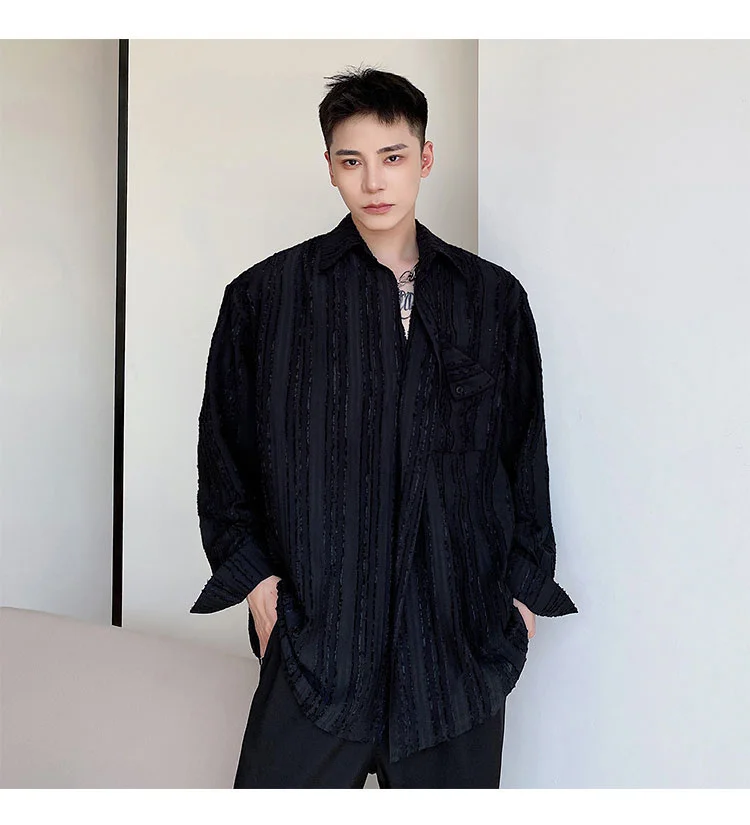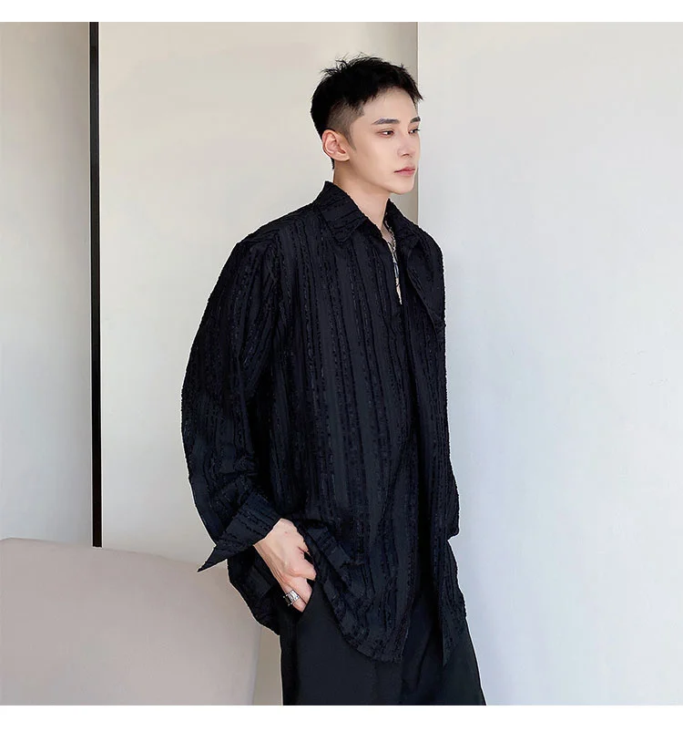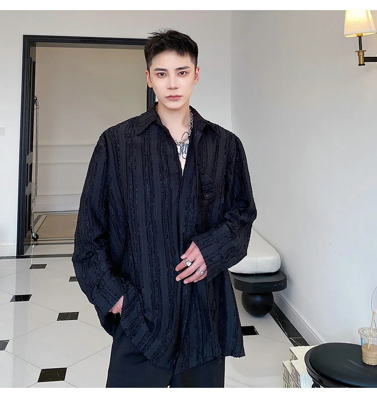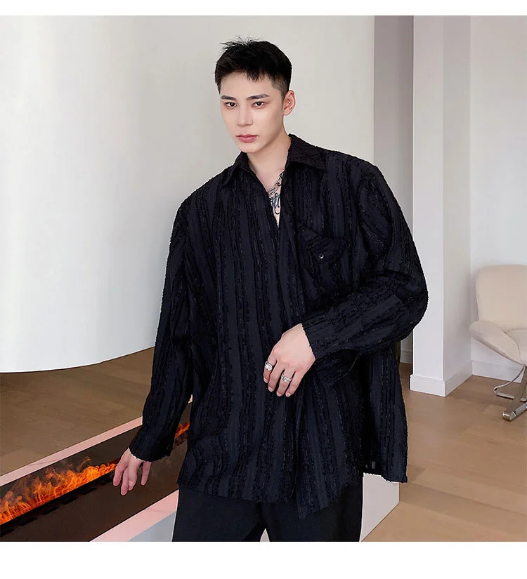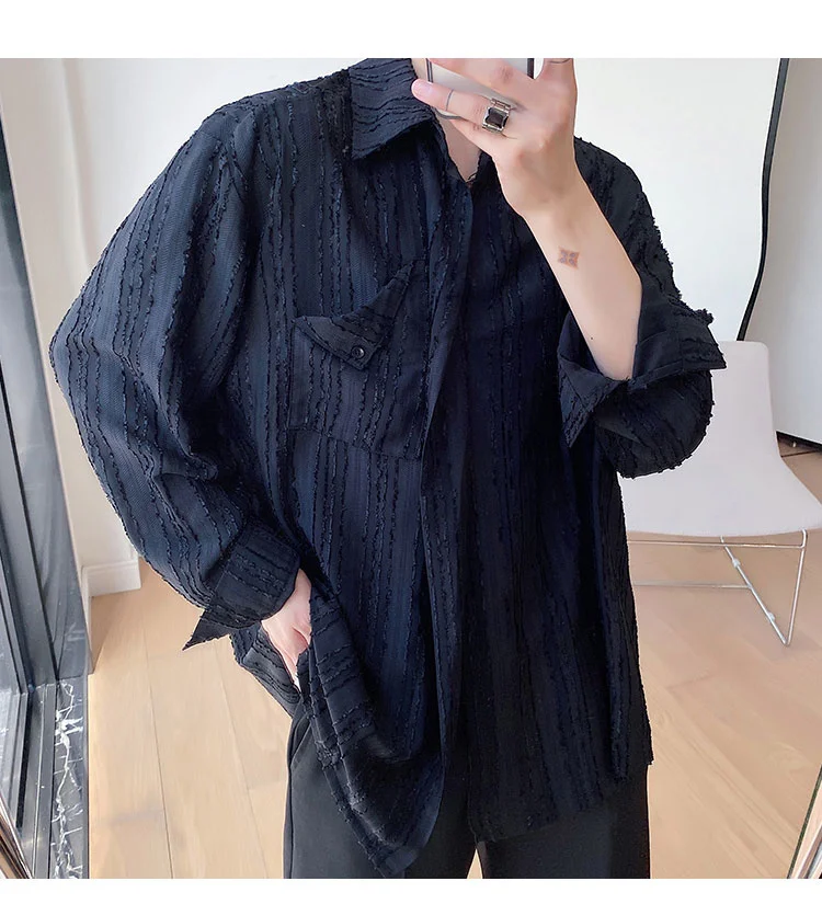 Solvbao - Korean Menswear Style Fashion Simple Striped Tops Men's New Loose Lapel Cardigan Long Sleeve Shirts Male Tide Spring