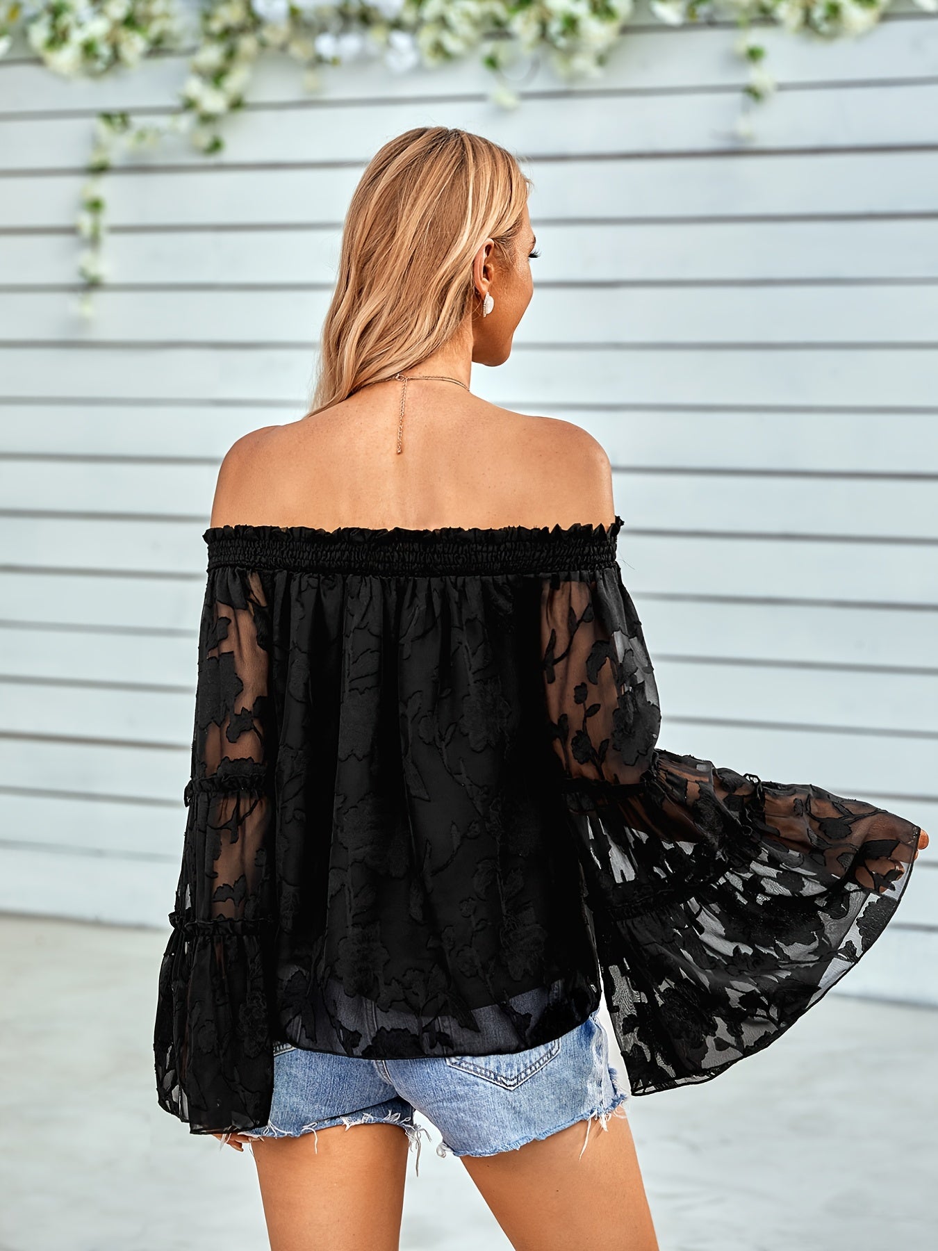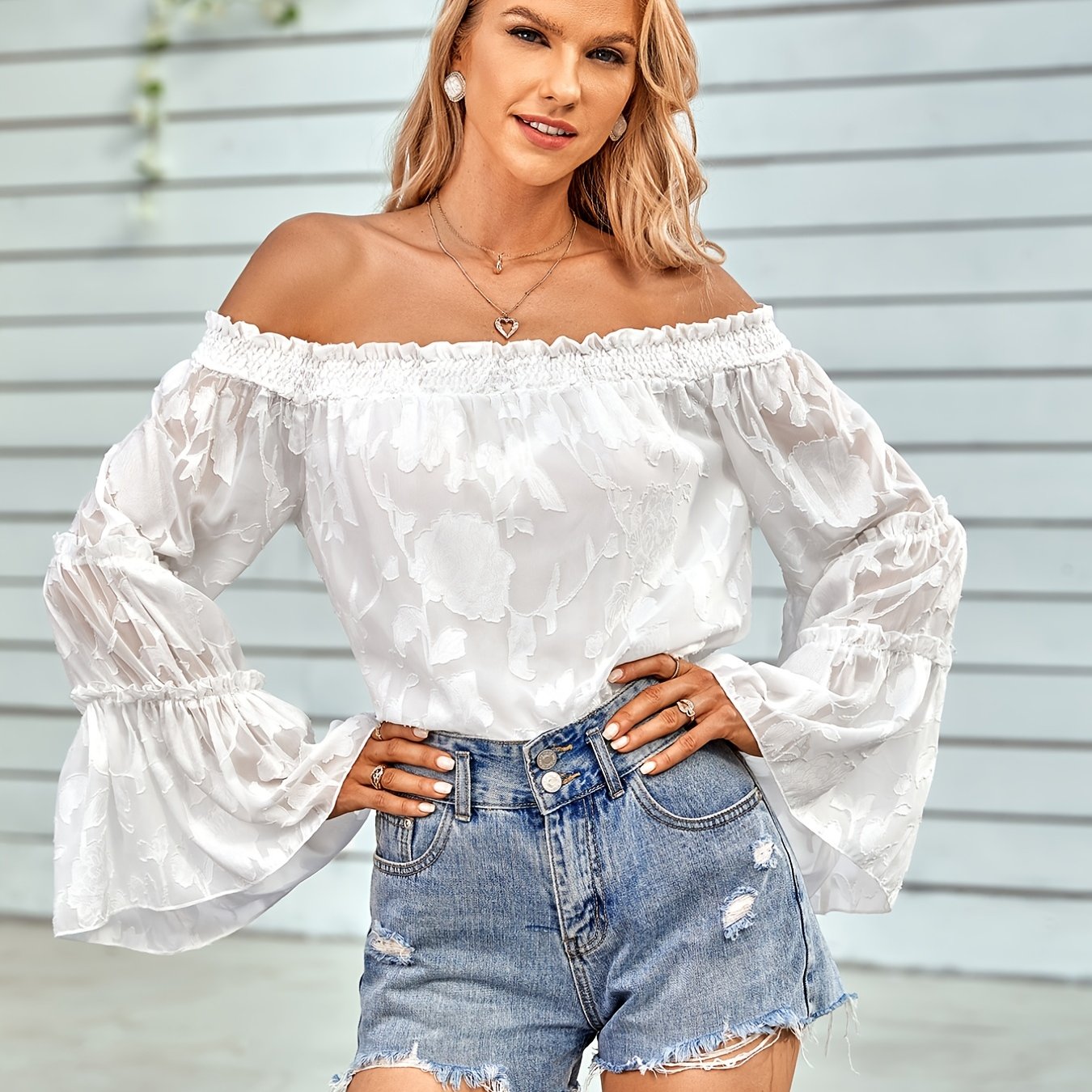 solvbao Long Sleeve Off Shoulder Blouse, Casual Every Day Top For Spring & Summer, Women's Clothing