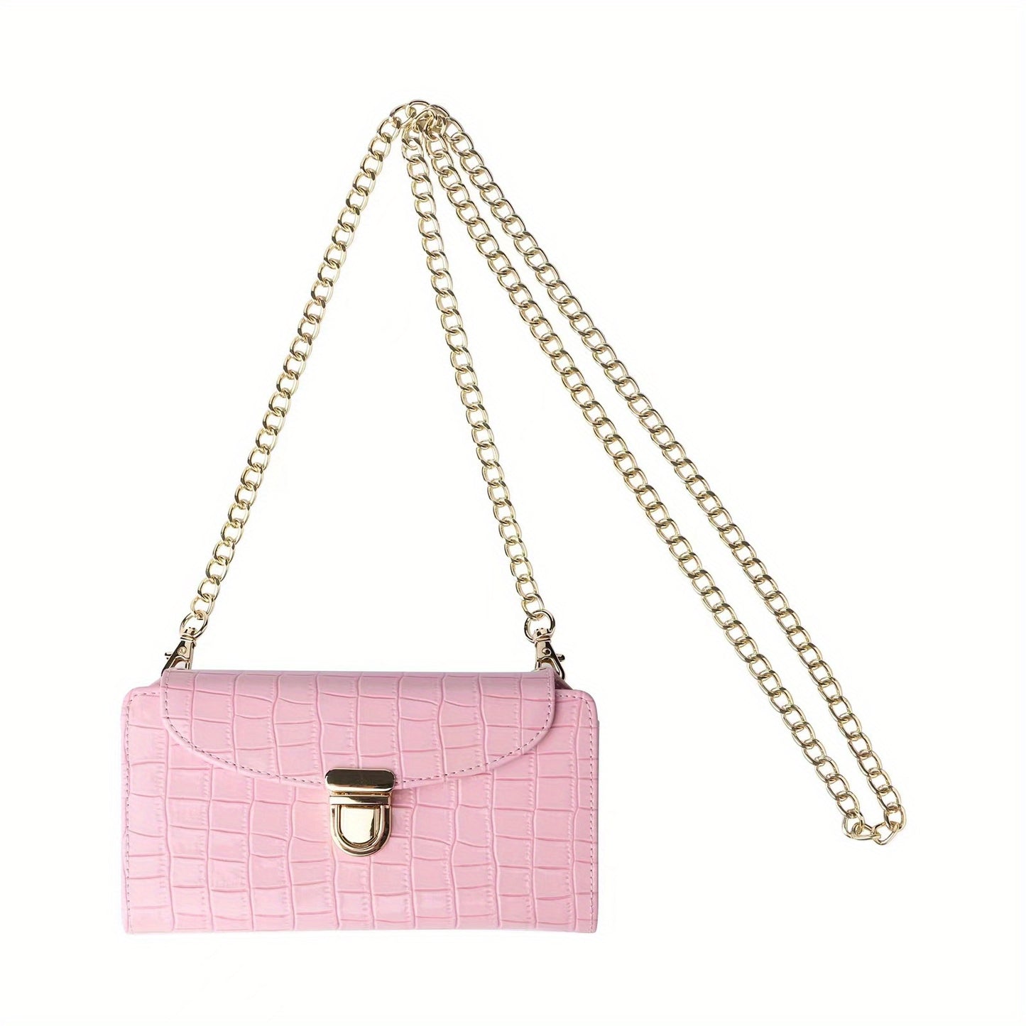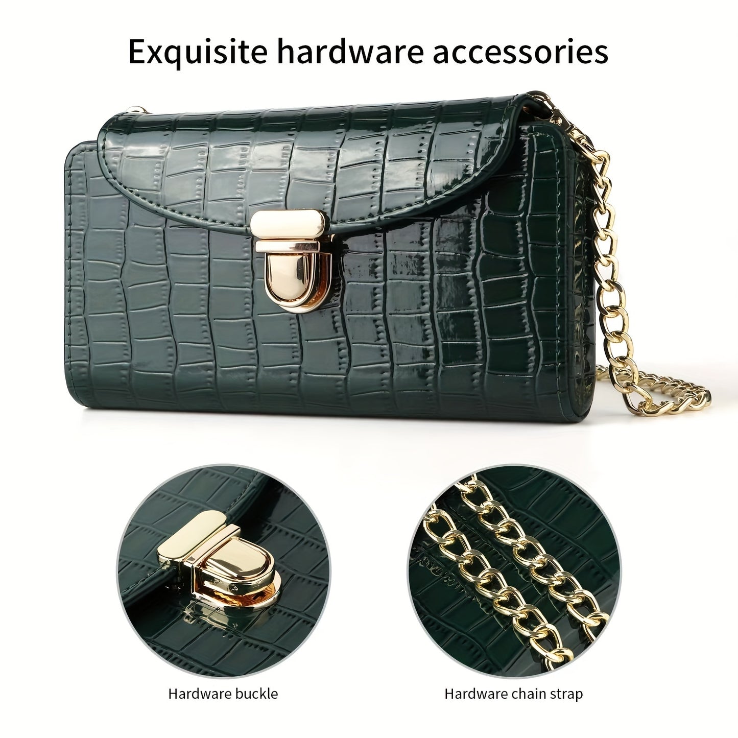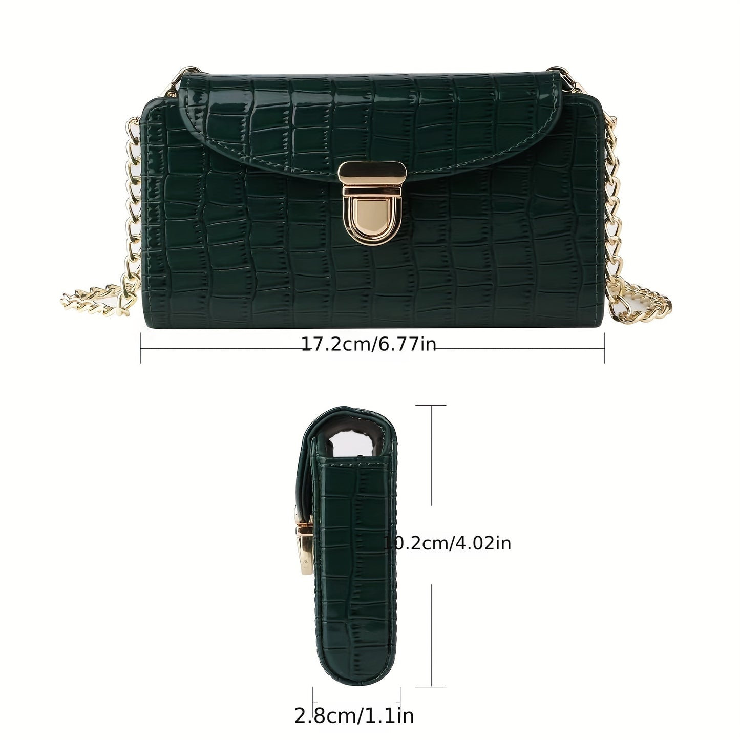 solvbao Mini Croc Embossed Crossbody Bag, Trendy Chain Shoulder Bag, Women's PU Flap Square Purse (6.77*4.02*1.1) Inch