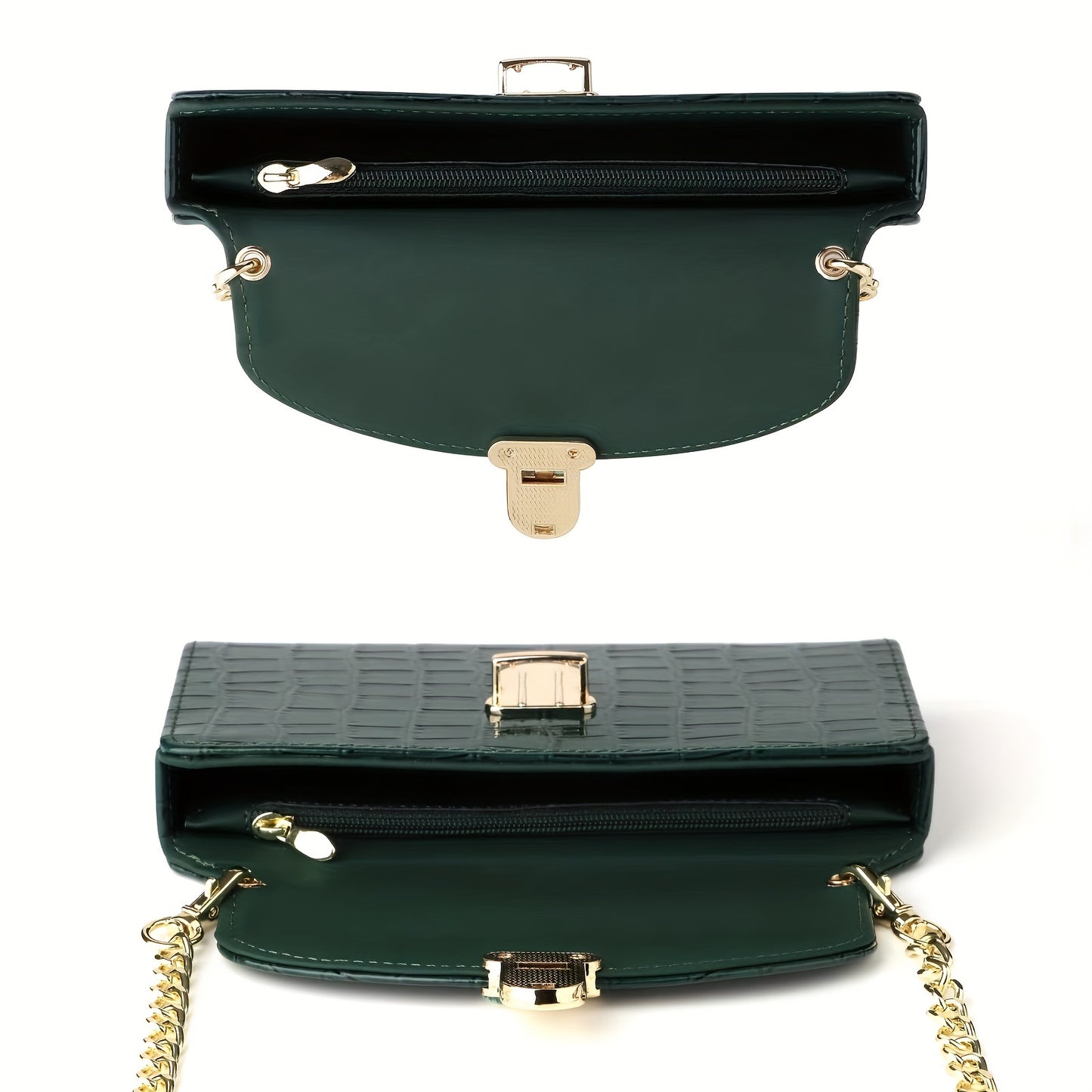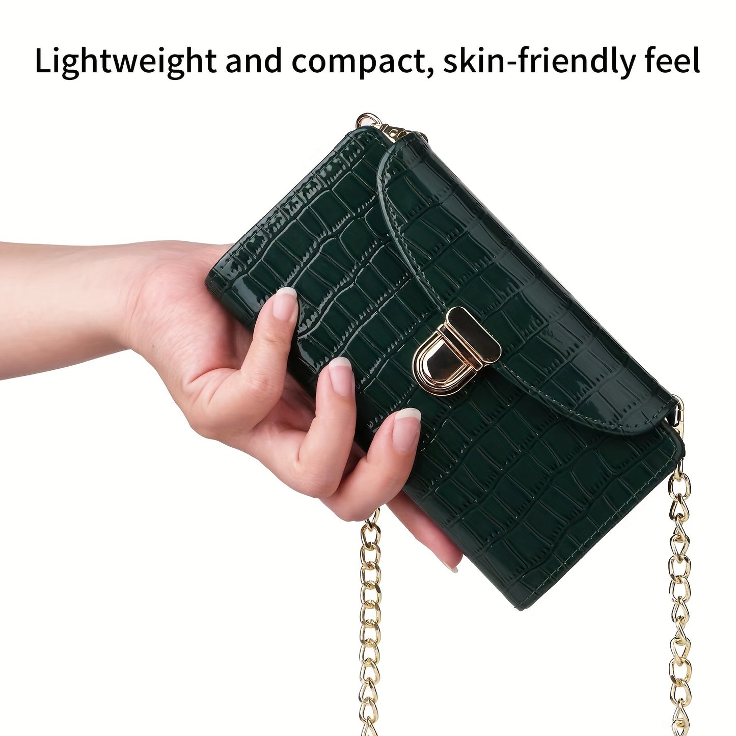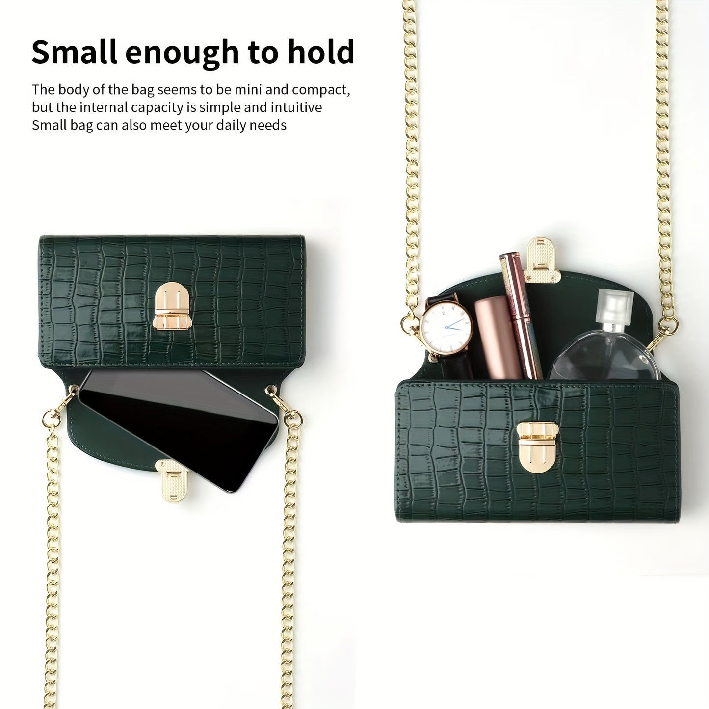 solvbao Mini Croc Embossed Crossbody Bag, Trendy Chain Shoulder Bag, Women's PU Flap Square Purse (6.77*4.02*1.1) Inch