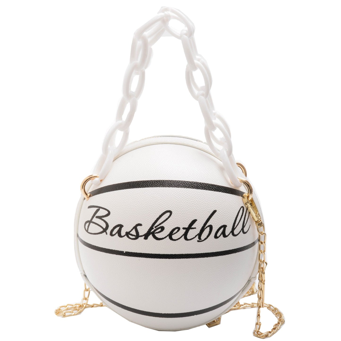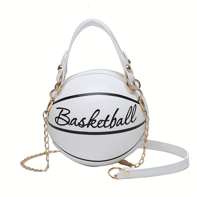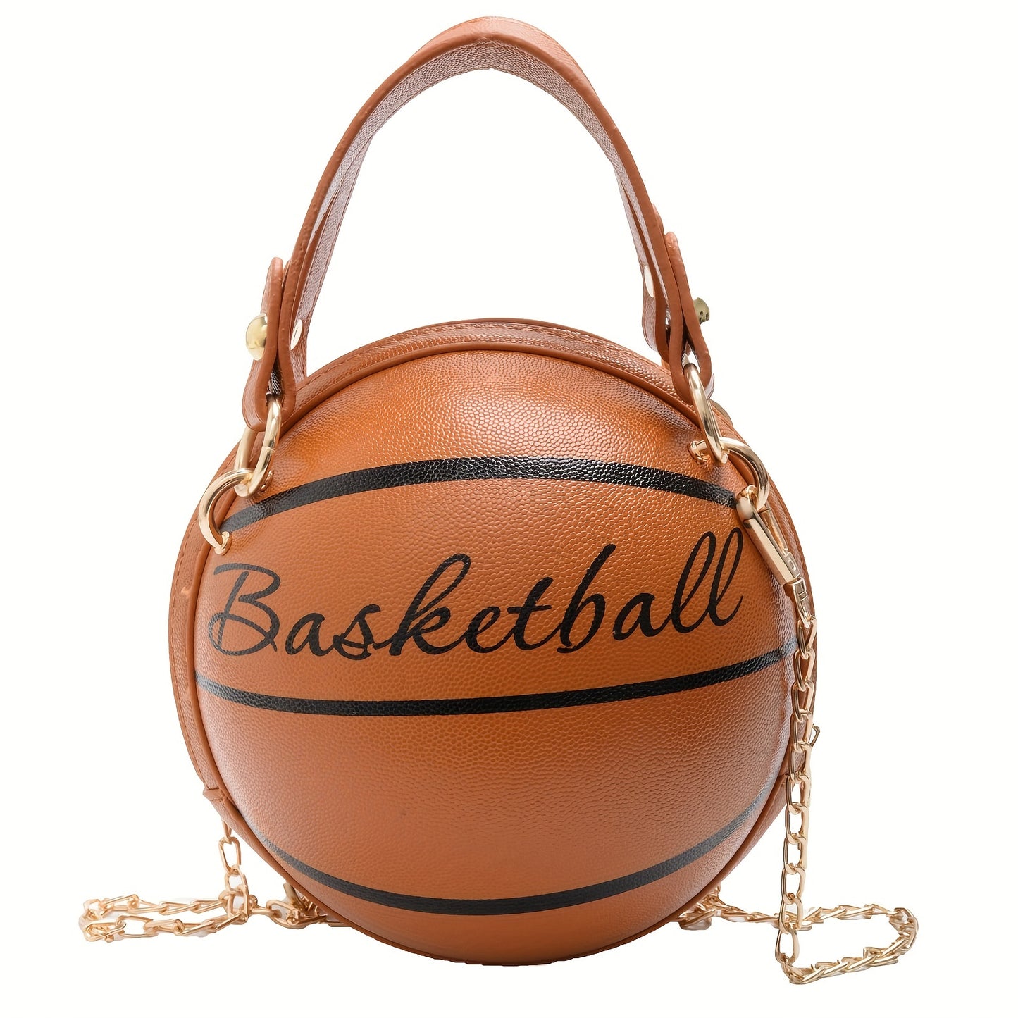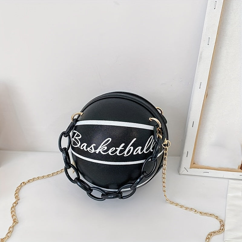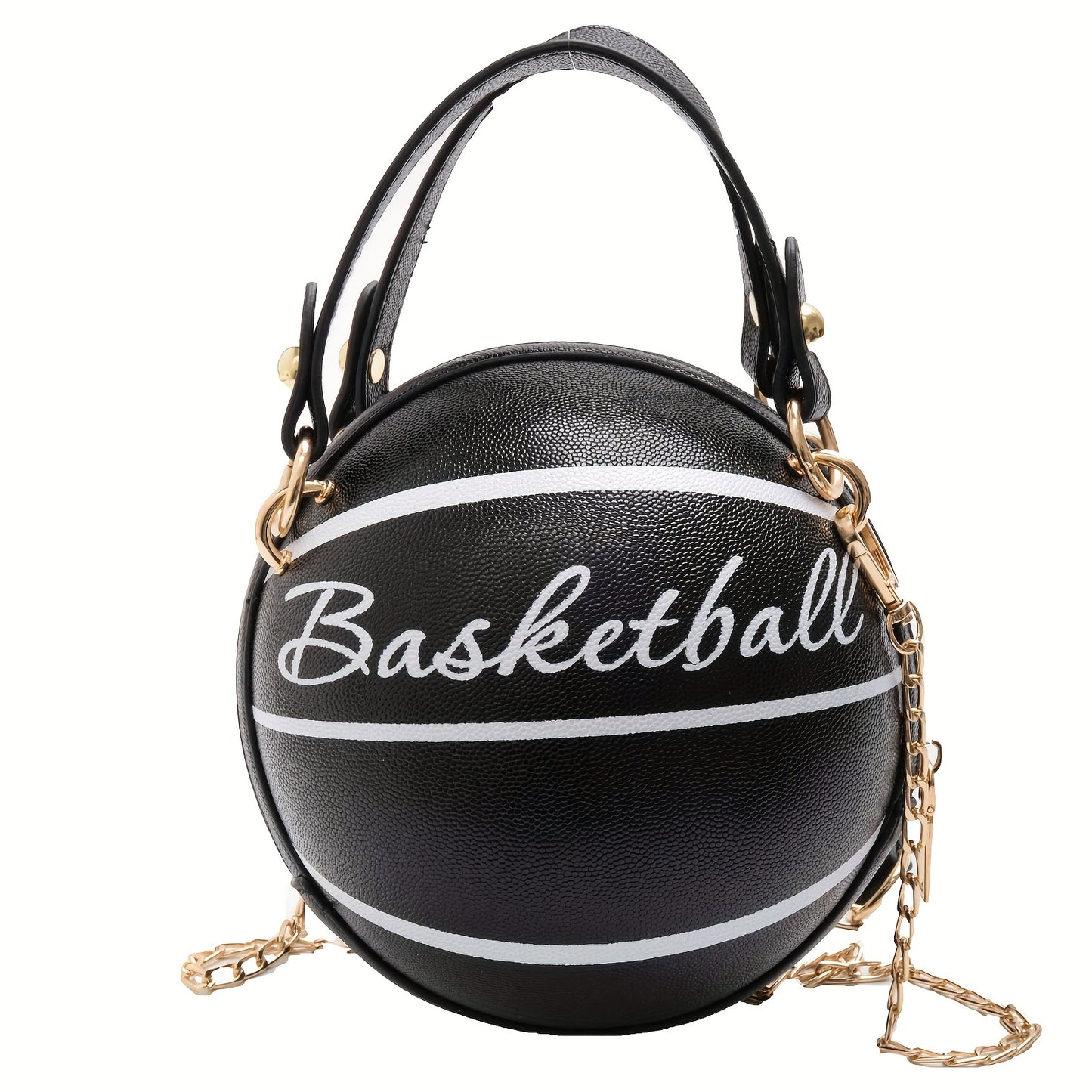 solvbao Mini Letter Graphic Basketball Design Circle Bag, Fashion Chain Shoulder Round Purse, Hand Zipper Bag