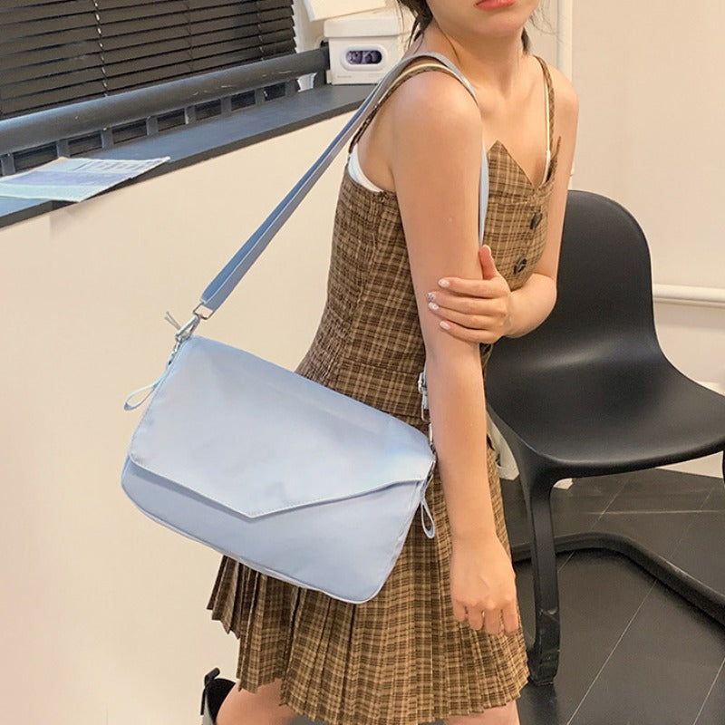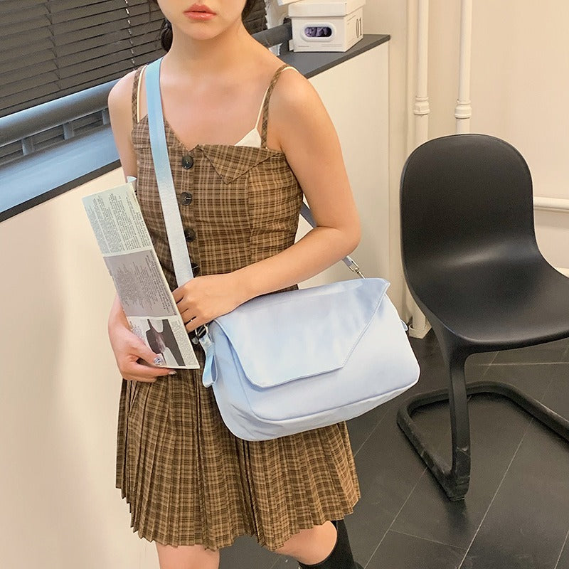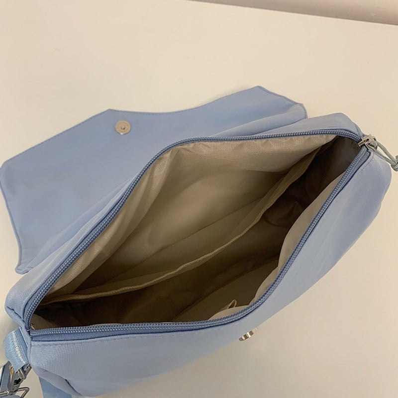 solvbao Minimalist Blue Shoulder Flap Bag, Canvas All-match Crossbody Bag, Lightweight Casual Handbag & Messenger Bag