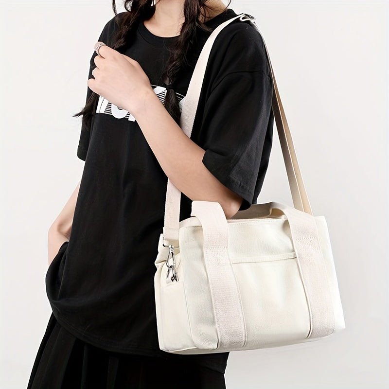 solvbao Minimalist Canvas Crossbody Bag, Solid Color Shoulder Bag, Women's Casual Handbag & Satchel Purse