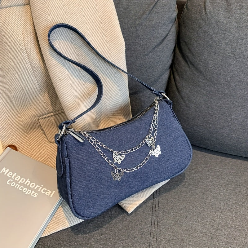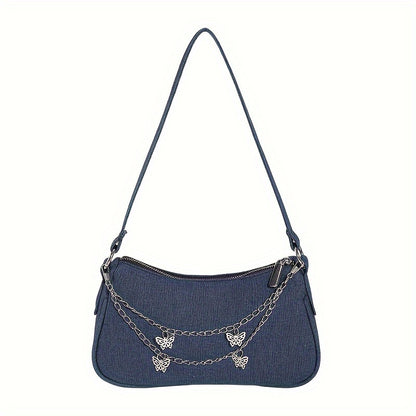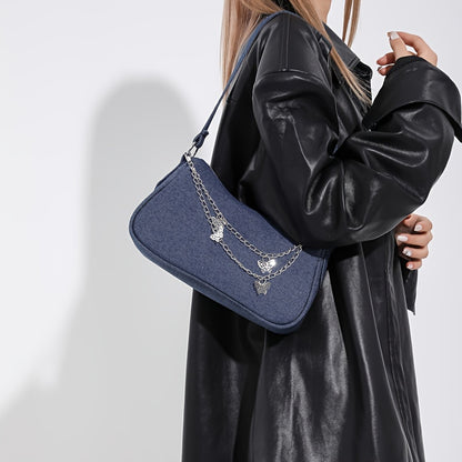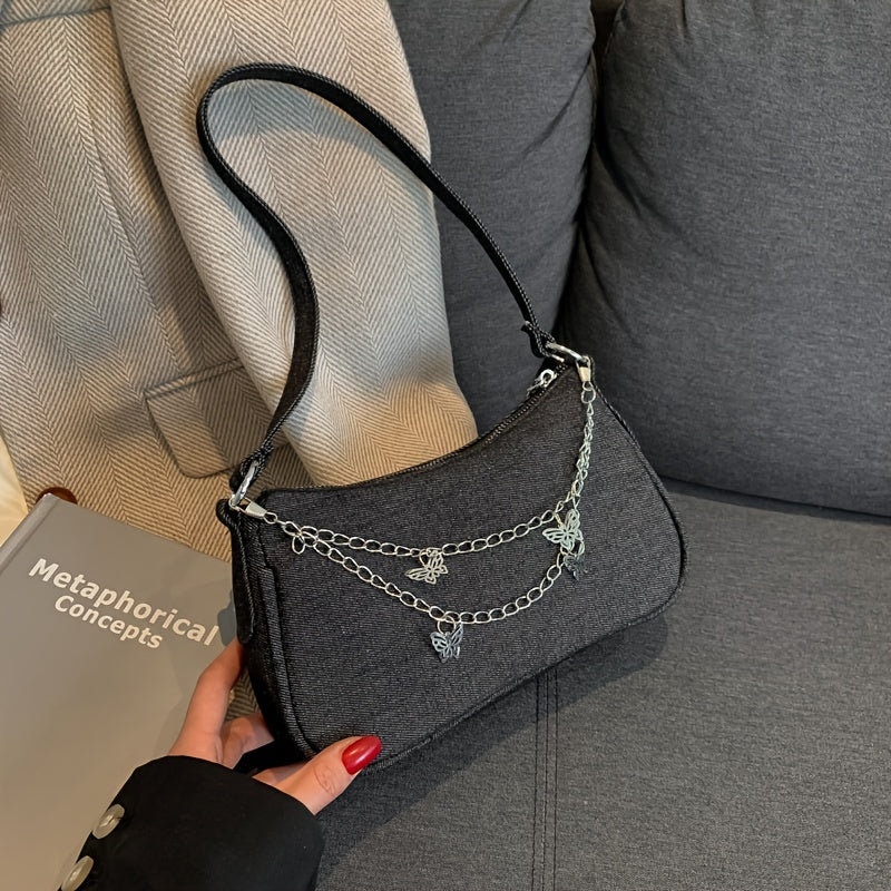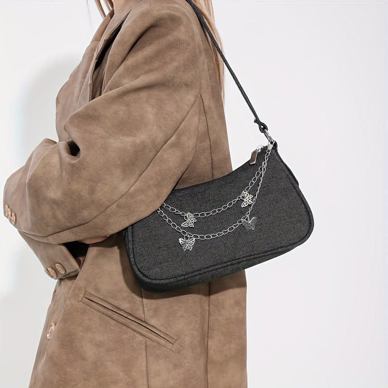 solvbao Minimalist Niche Design Baguette Bag, Y2K Style Butterfly Chain Decor Underarm Bag For Women