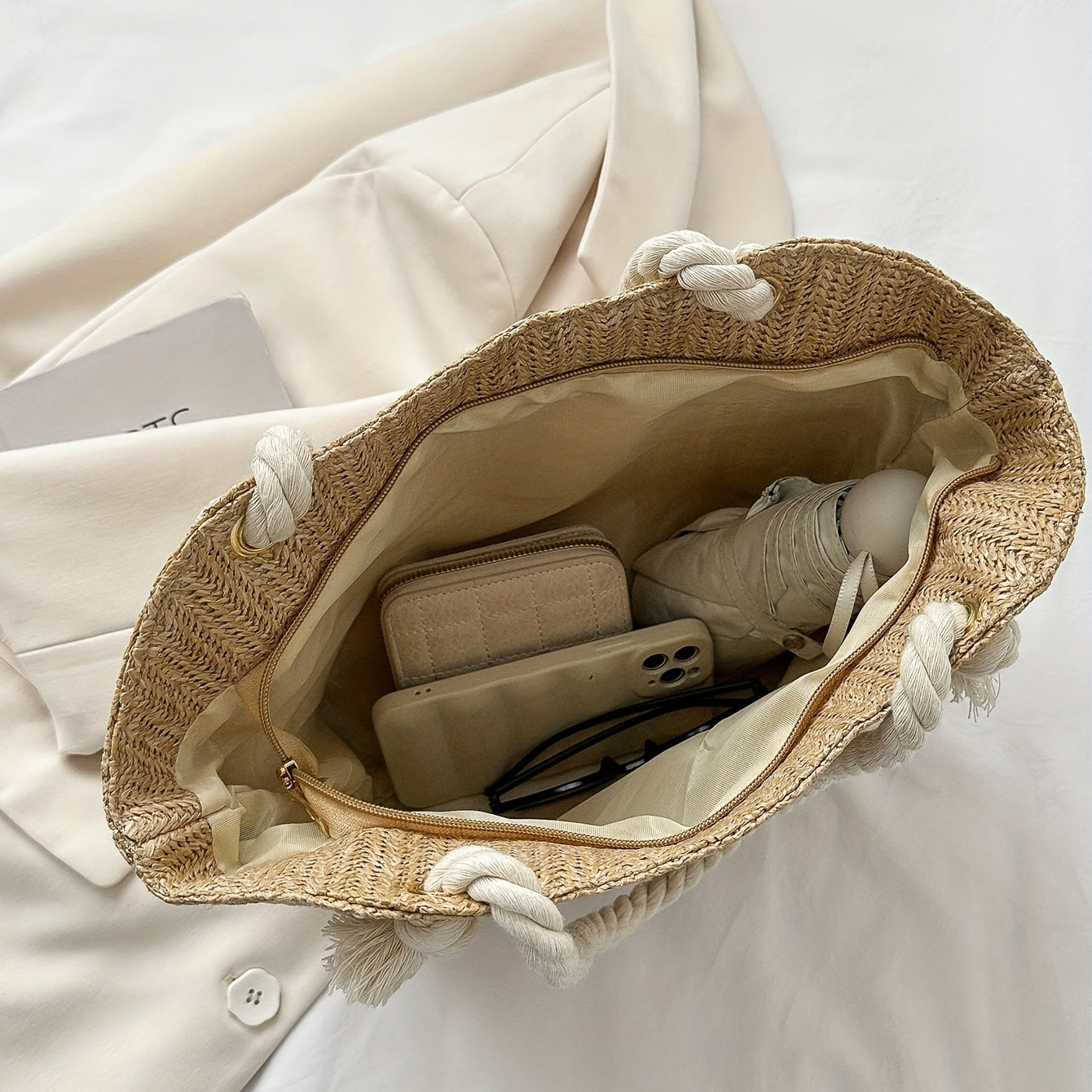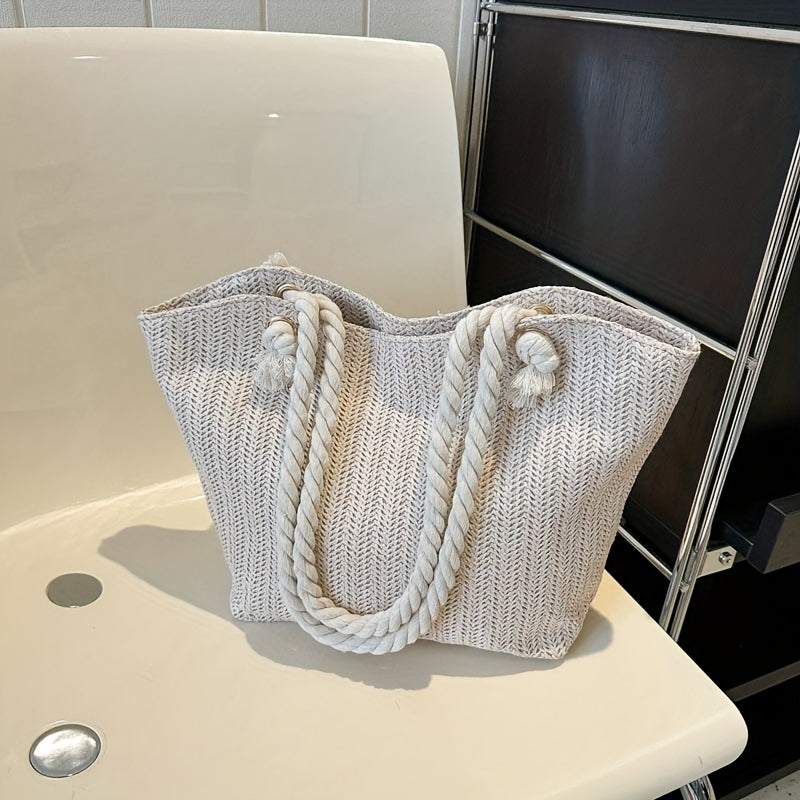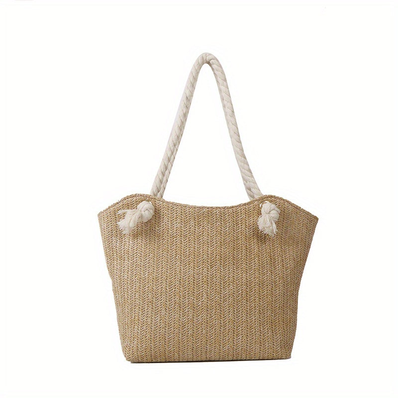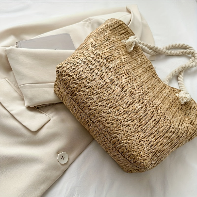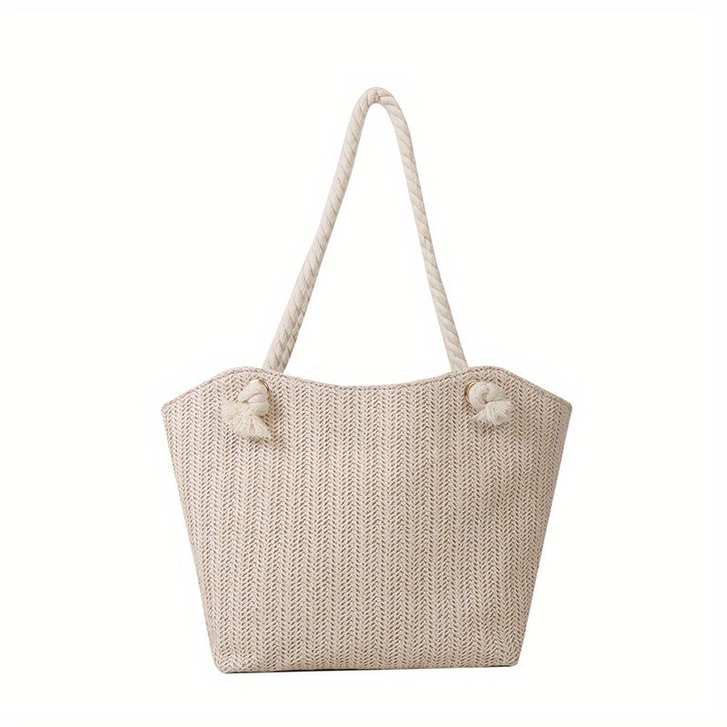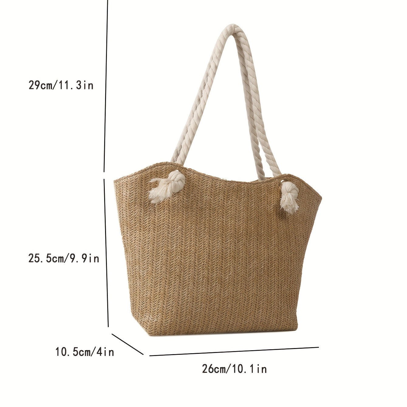 solvbao Minimalist Woven Shoulder Bag, All-Match Tote Straw Bag, Trendy Beach Storage Bag
