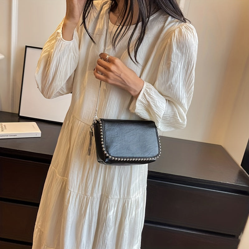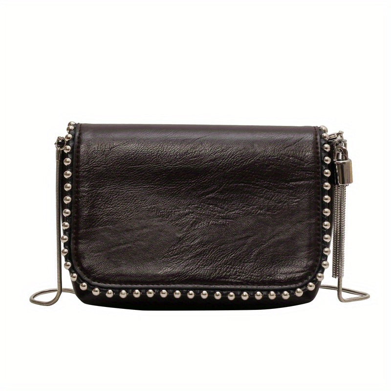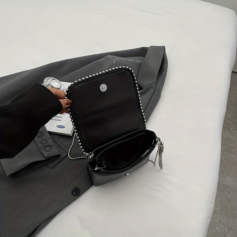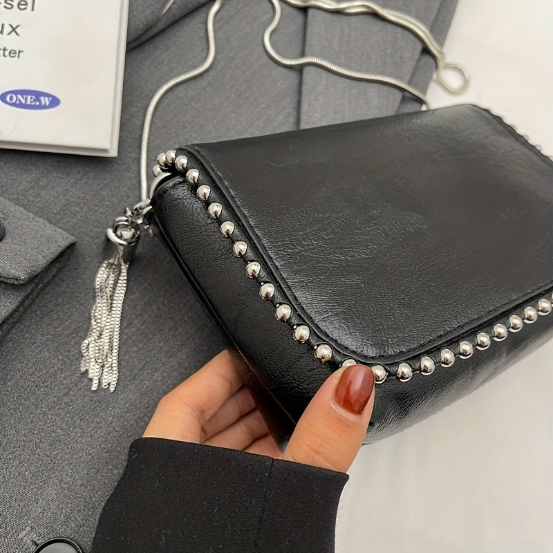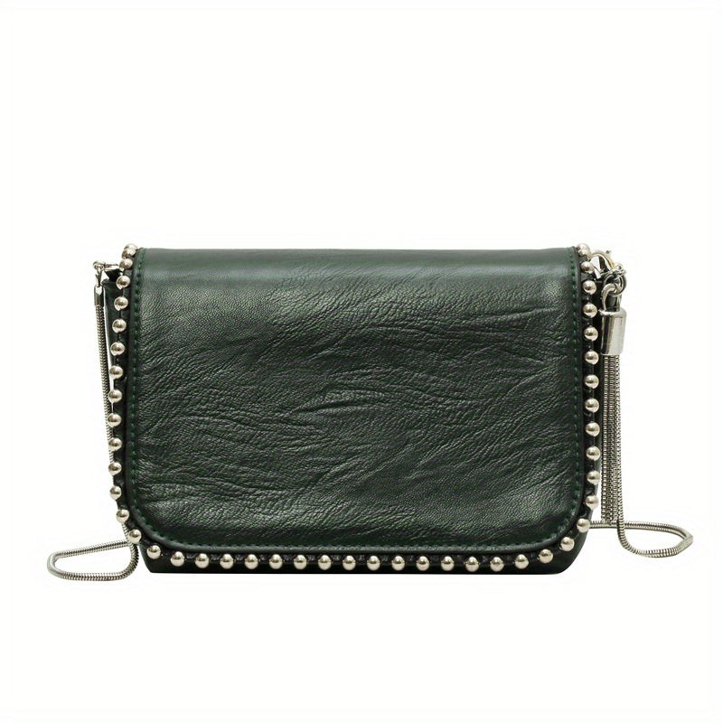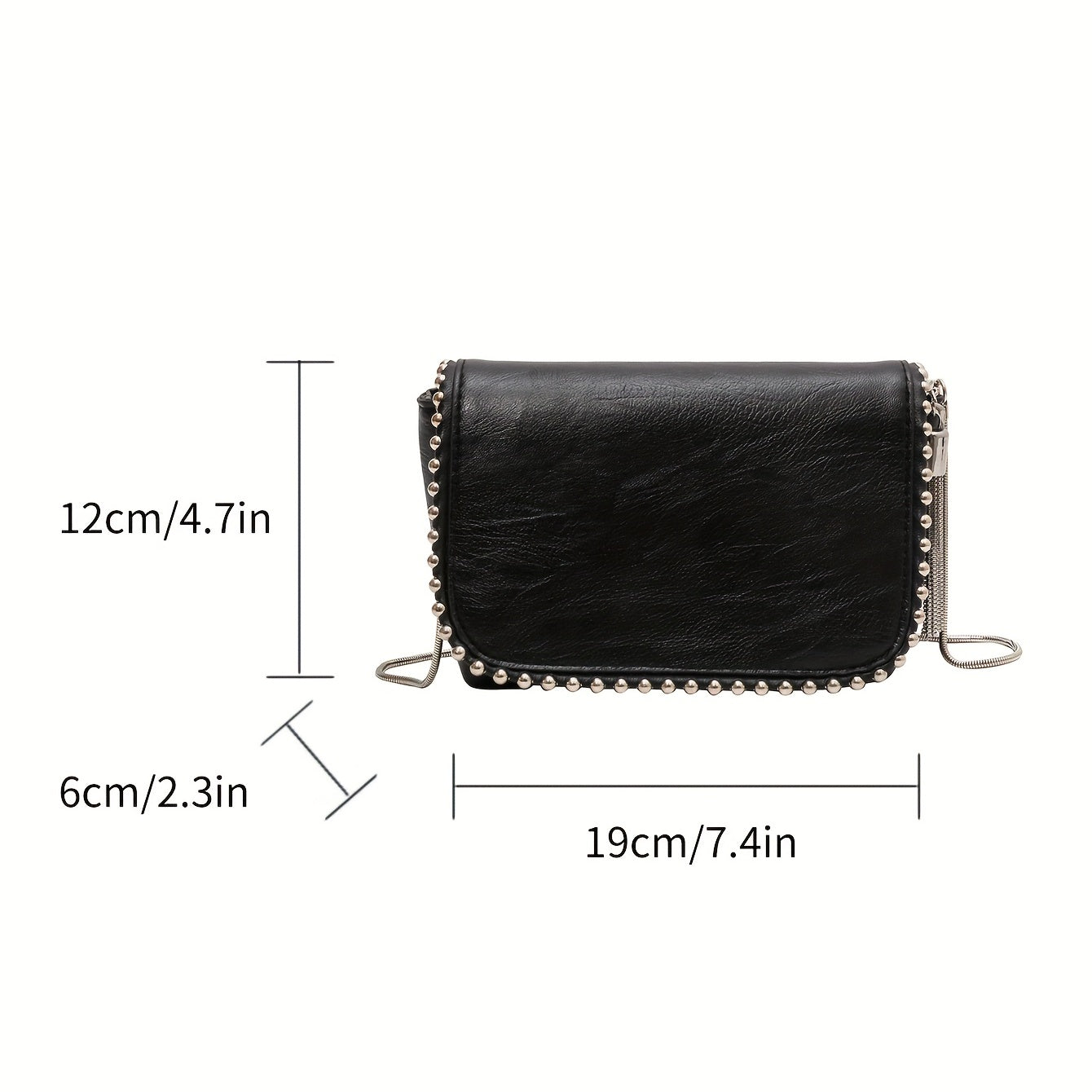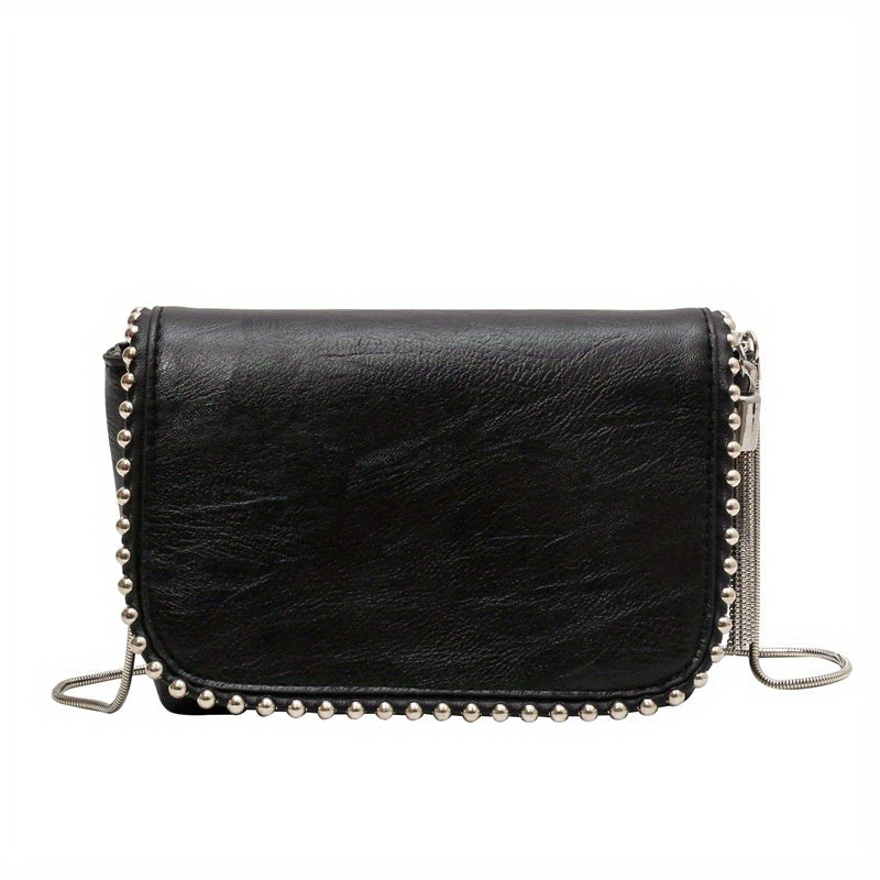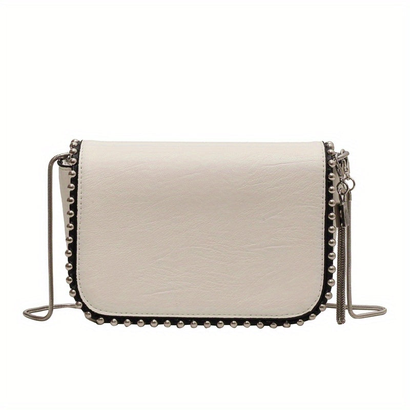 solvbao Niche Bead Decor Square Bag, Trendy Crossbody Chain Bag, Women's Solid Color Purse