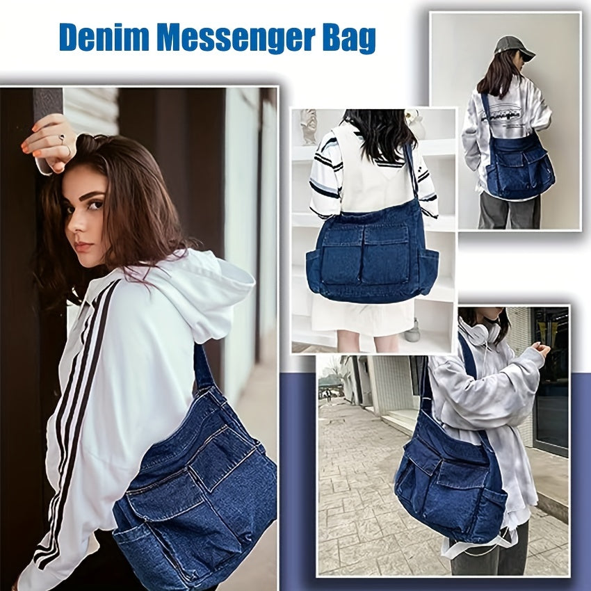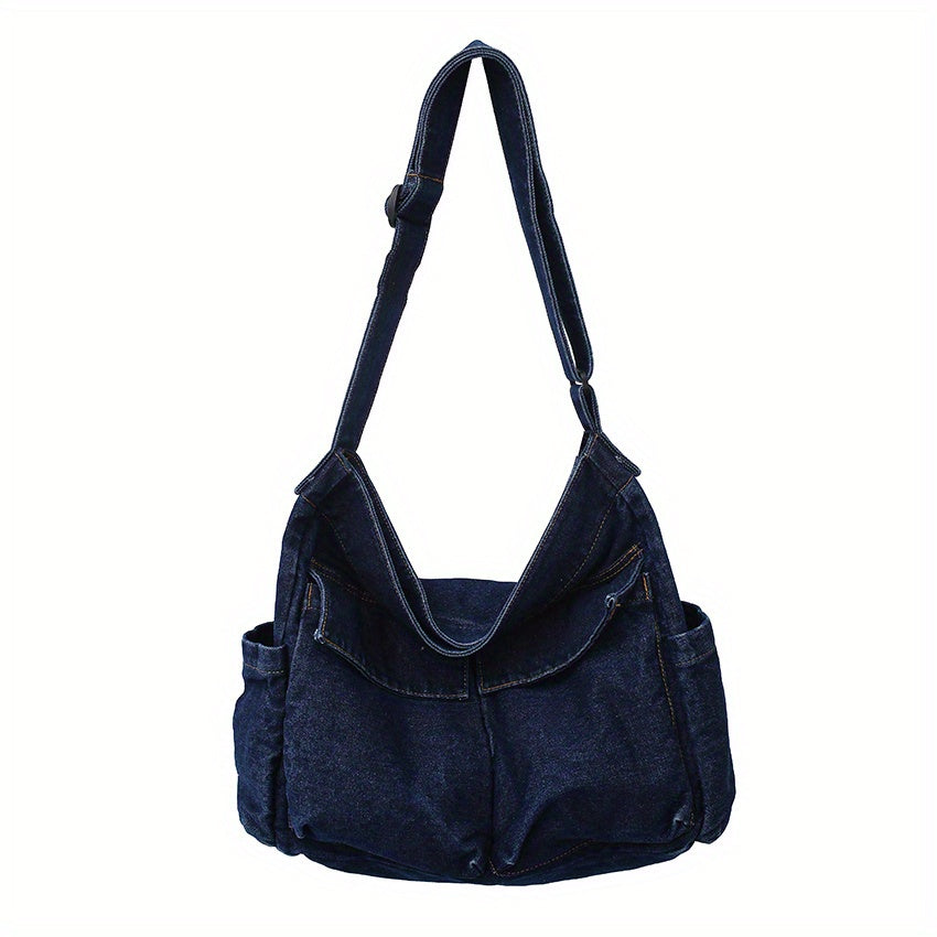 solvbao Retro Denim Canvas Tote Bag, Multi Pockets Crossbody Bag, Y2K Hobo Bag For Sports, Travel, School