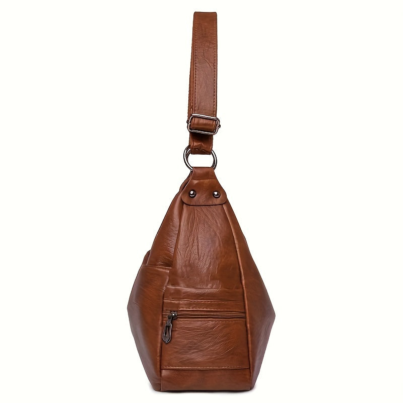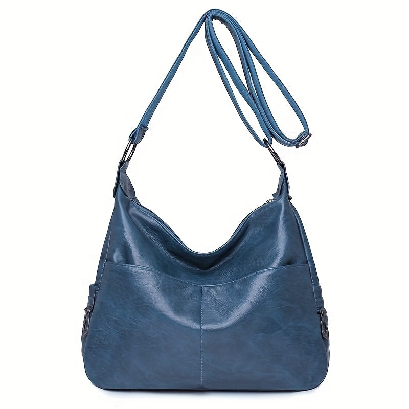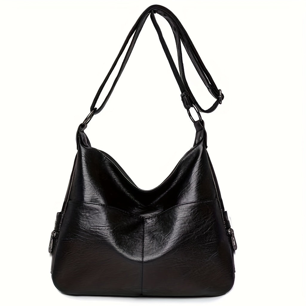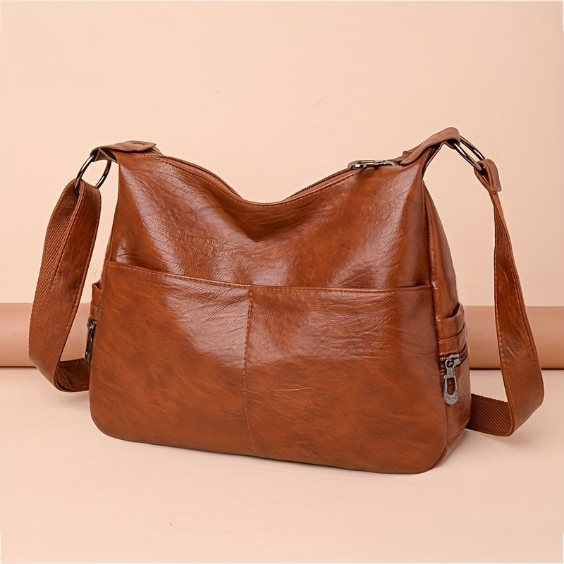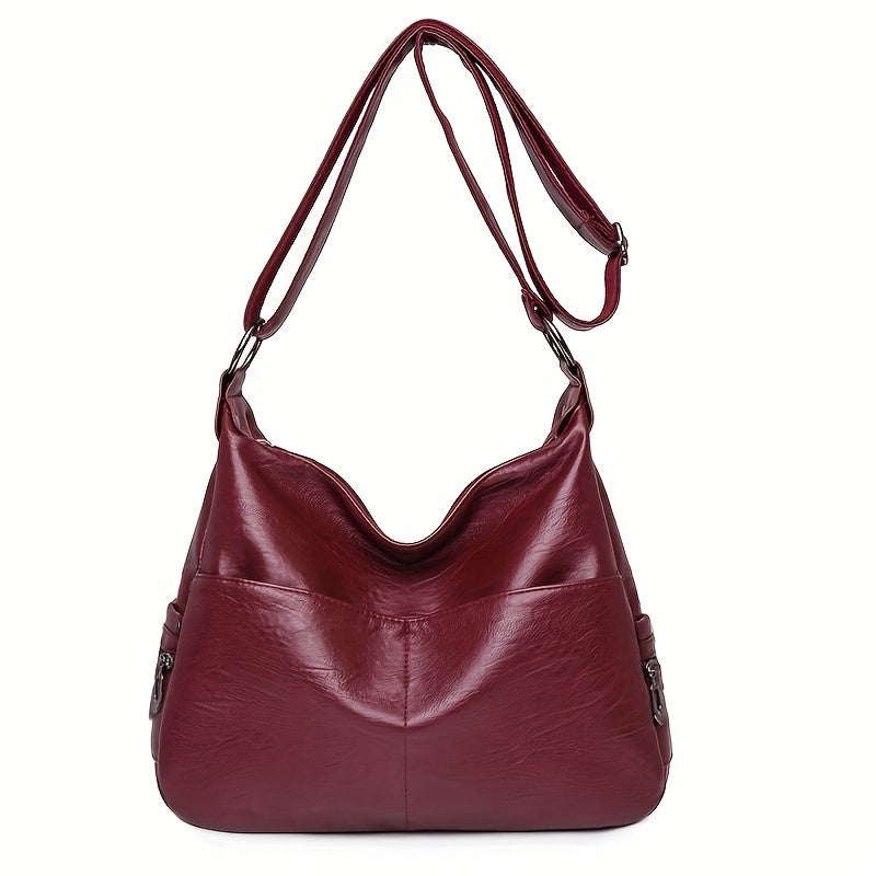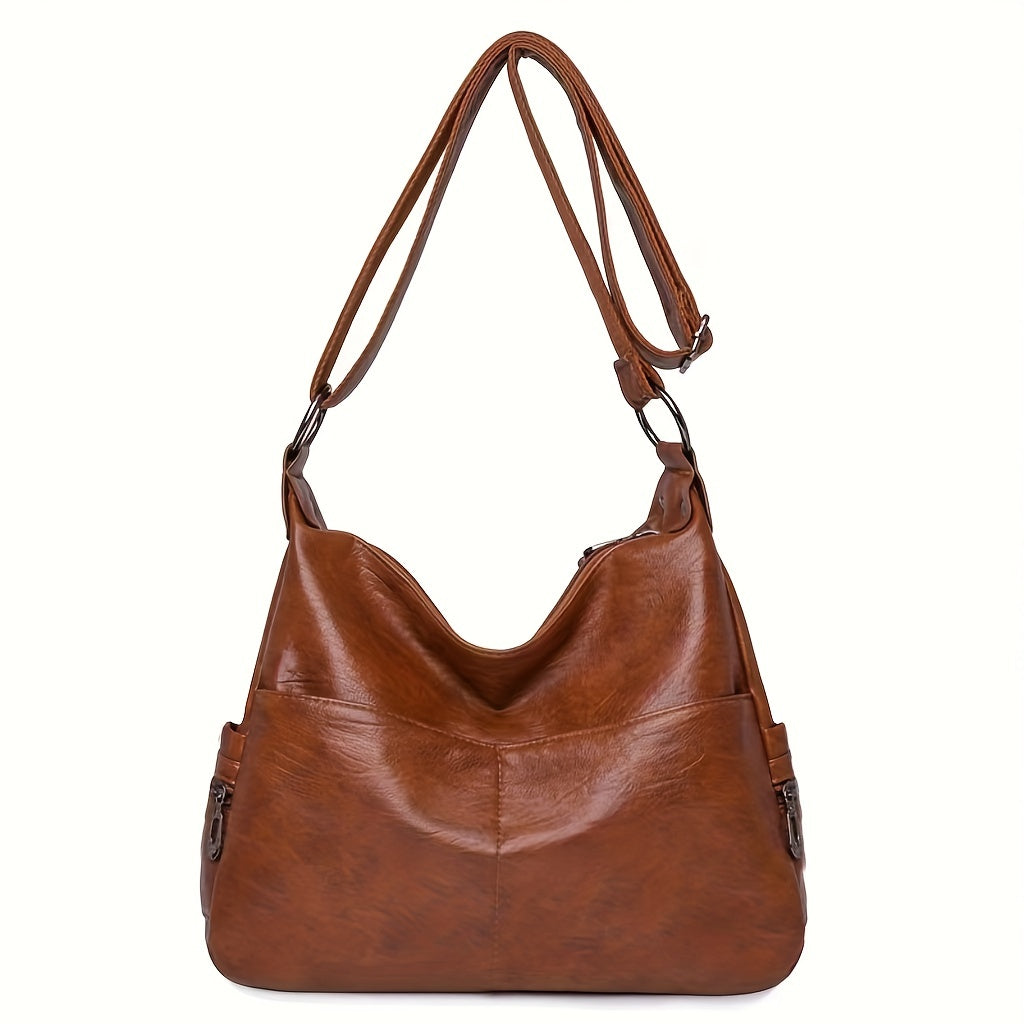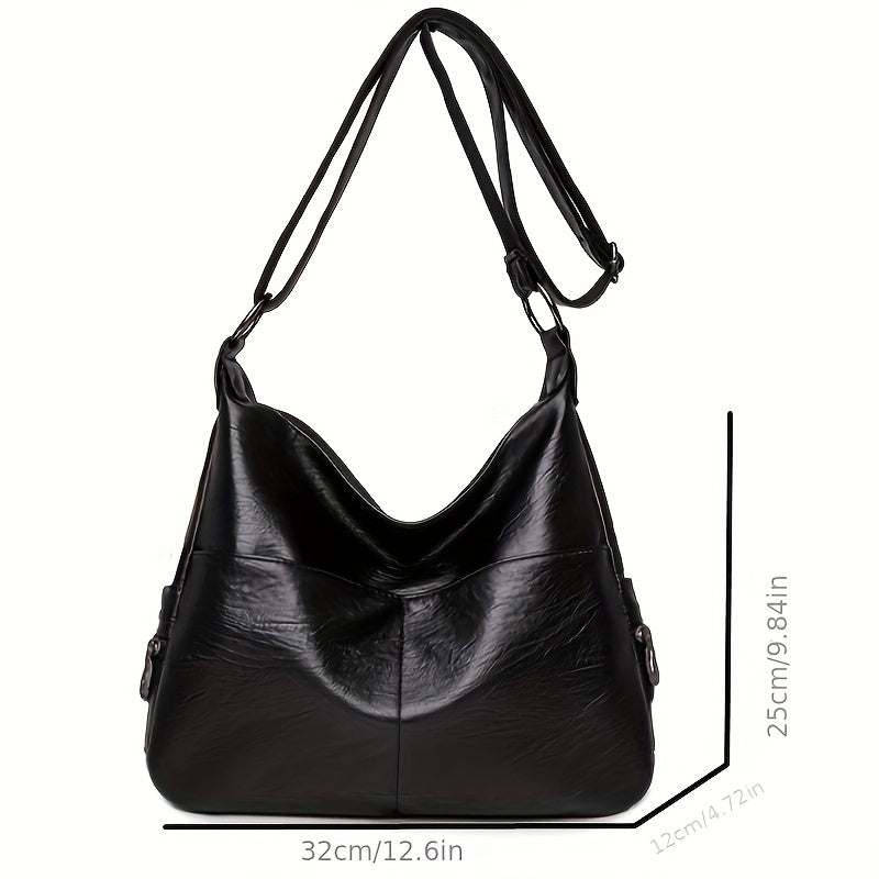 solvbao Retro Large Capacity Hobo Bag, Fashion Casual Solid Color PU Leather Crossbody Bag, Women's Simple Versatile Shoulder Bag & Satchel Purse