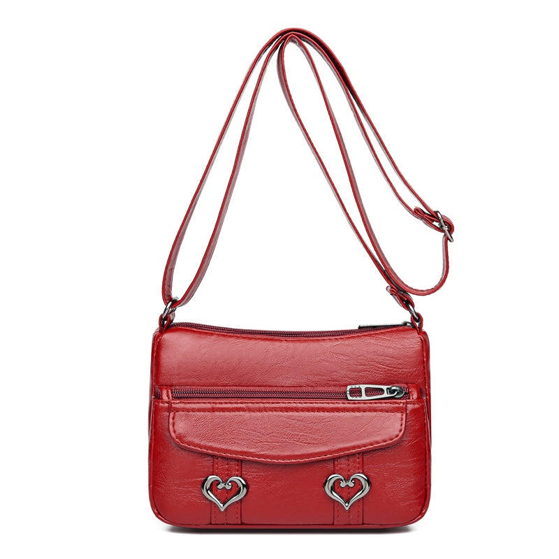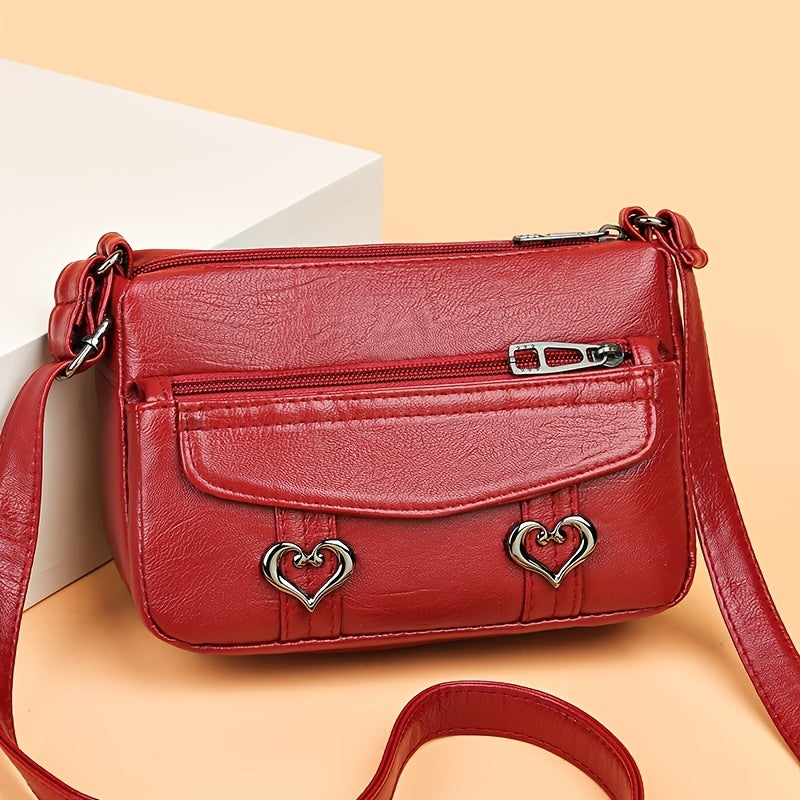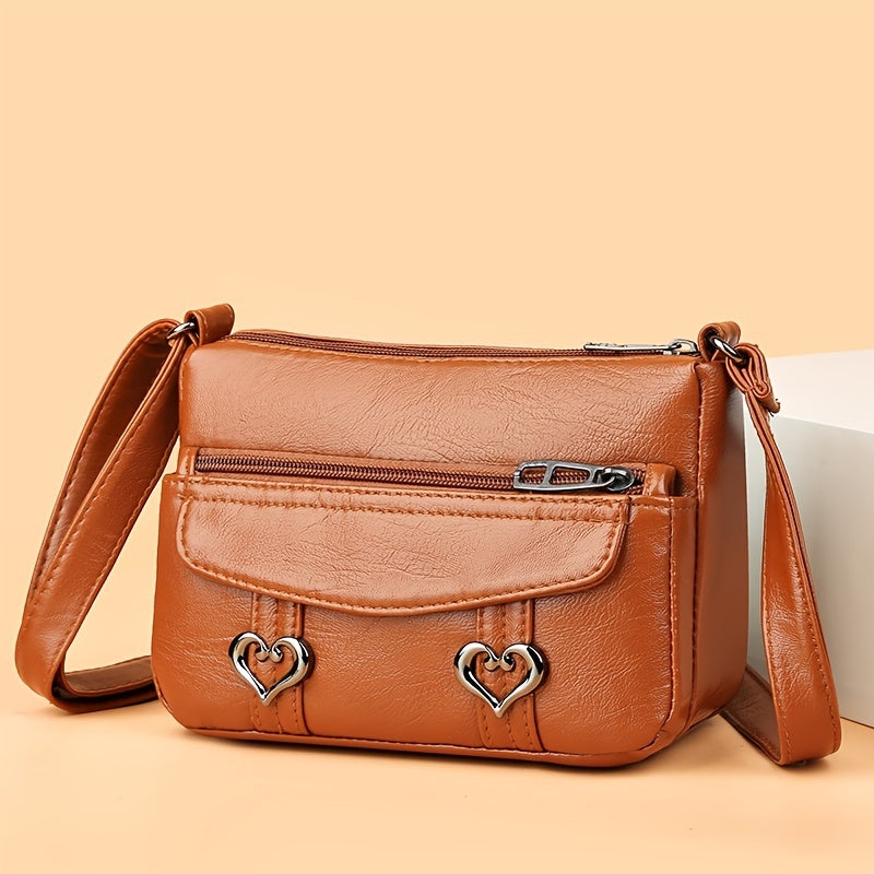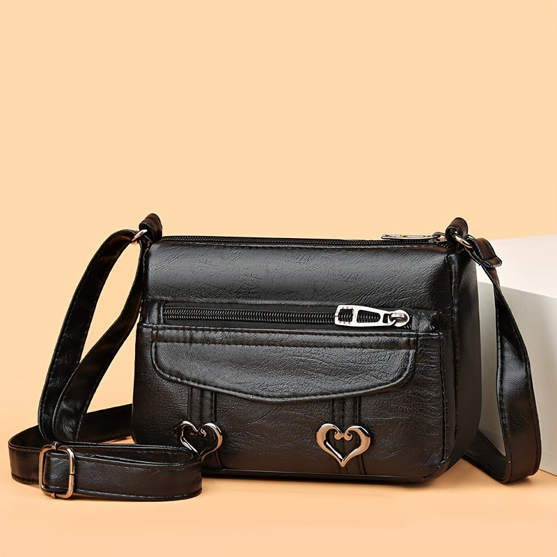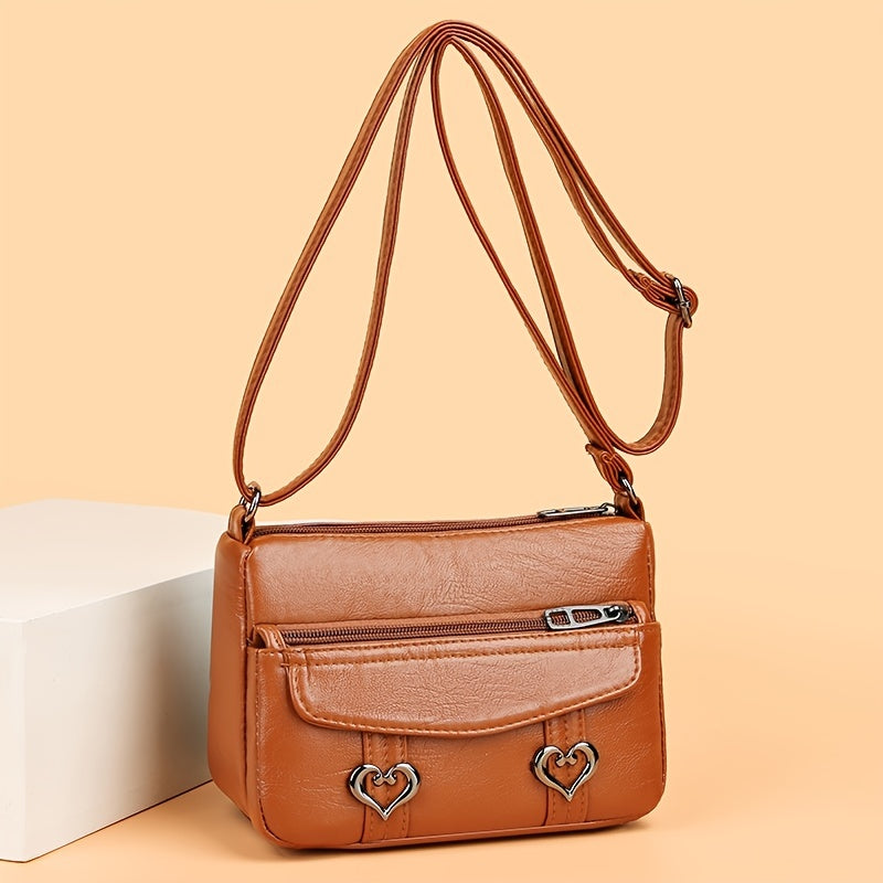 solvbao Retro Style Crossbody Bag, Small Heart Decor Shoulder Bag, Women's Multi Pocket Zipper Purse