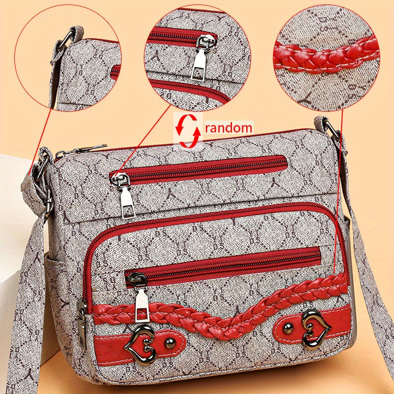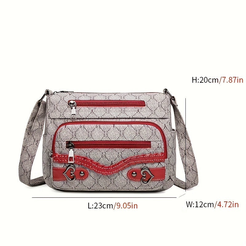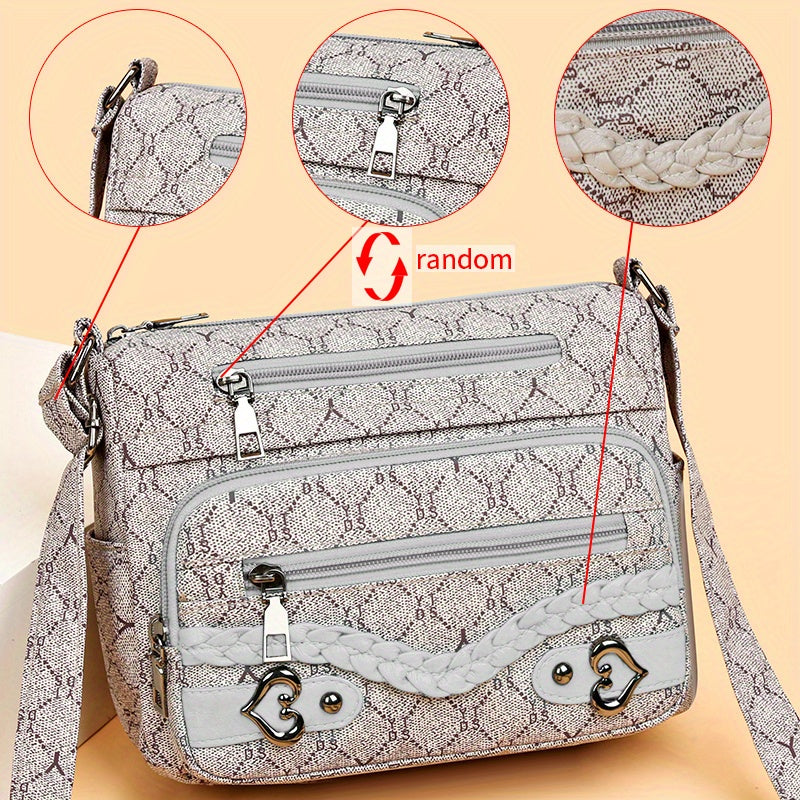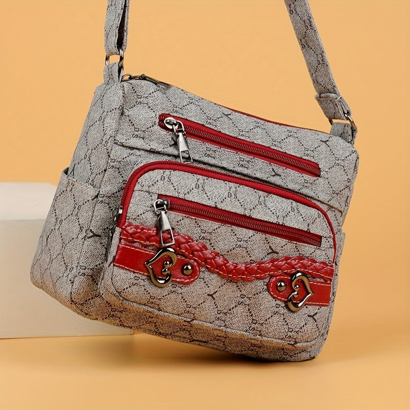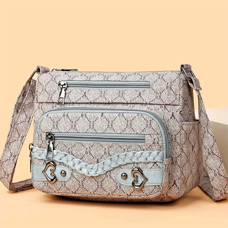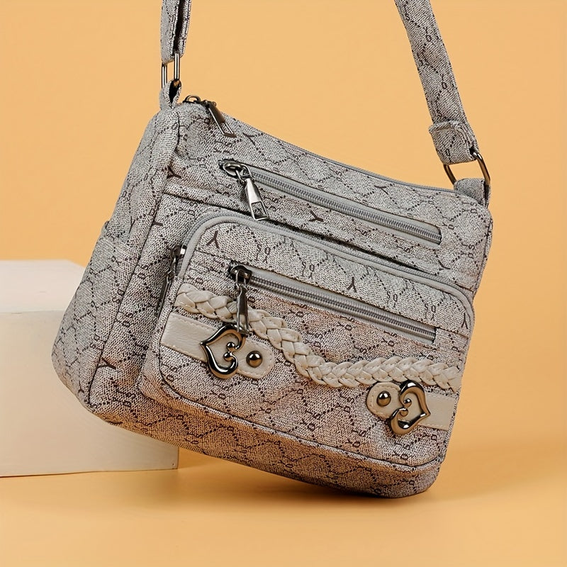 solvbao Rhombus Pattern Crossbody Bag, Heart Decor Shoulder Bag, Women's Nylon Multi Pockets Purse