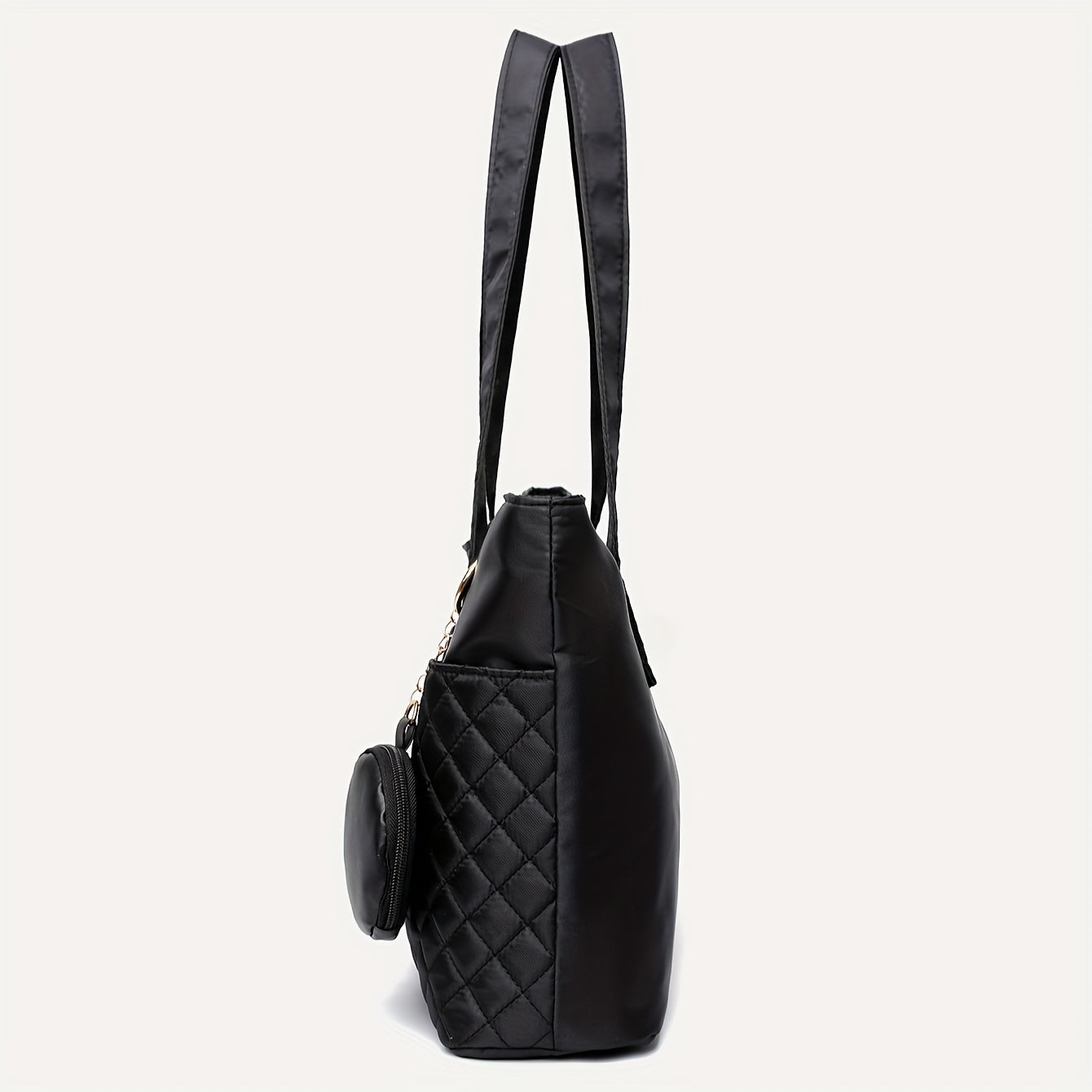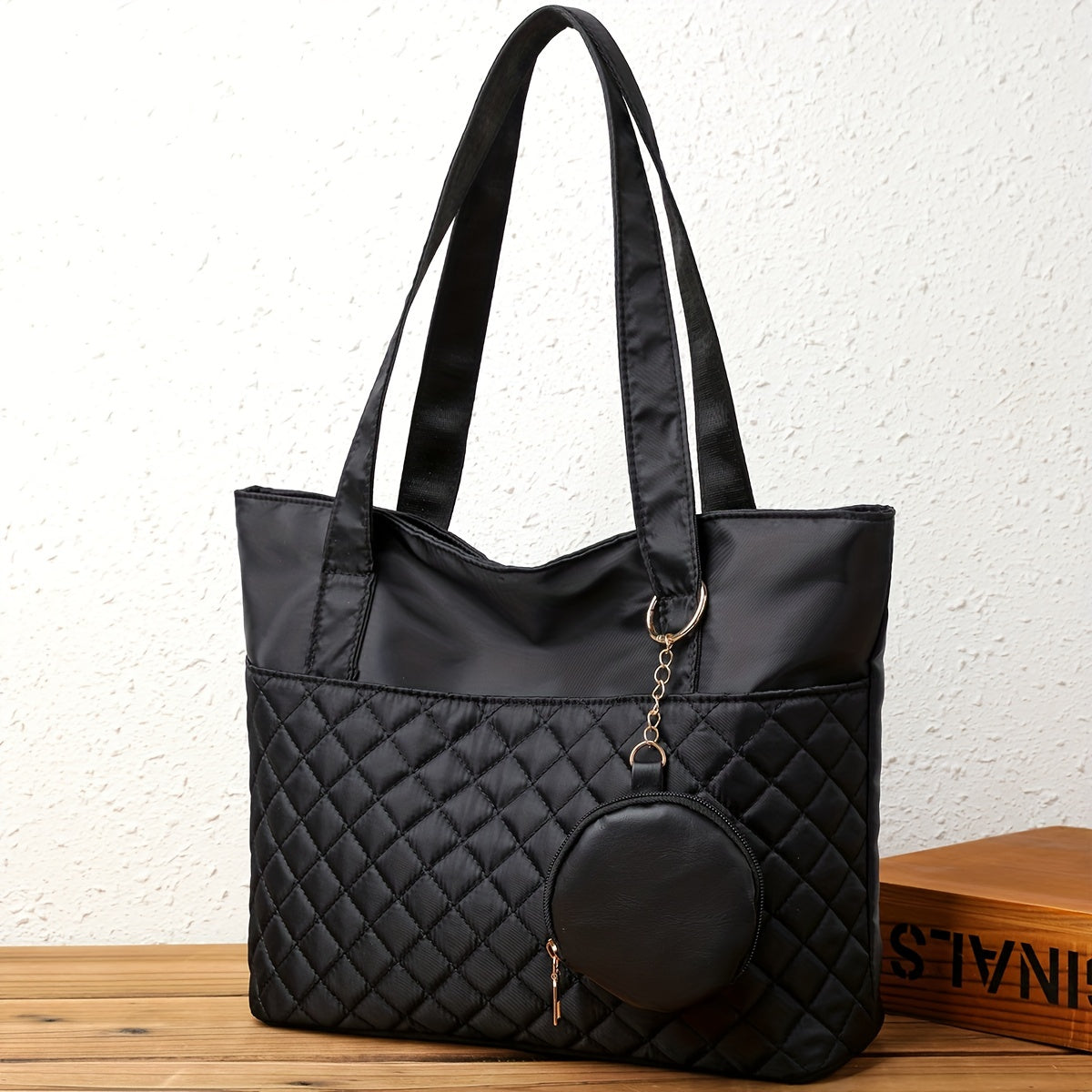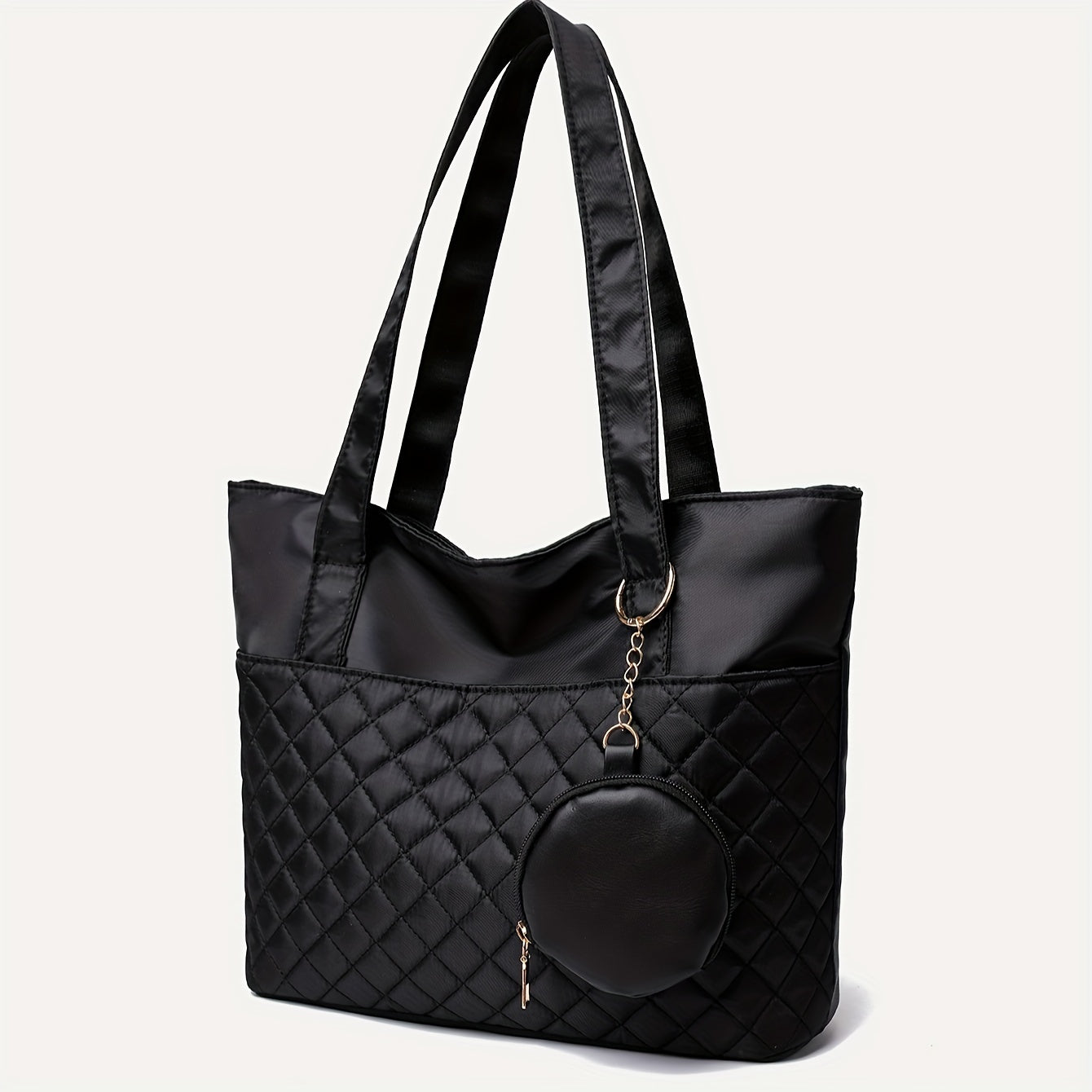 solvbao Simple Argyle Quilted Tote Bag, Casual Large Shoulder Bag, Versatile Shopping Bag With Coin Purse