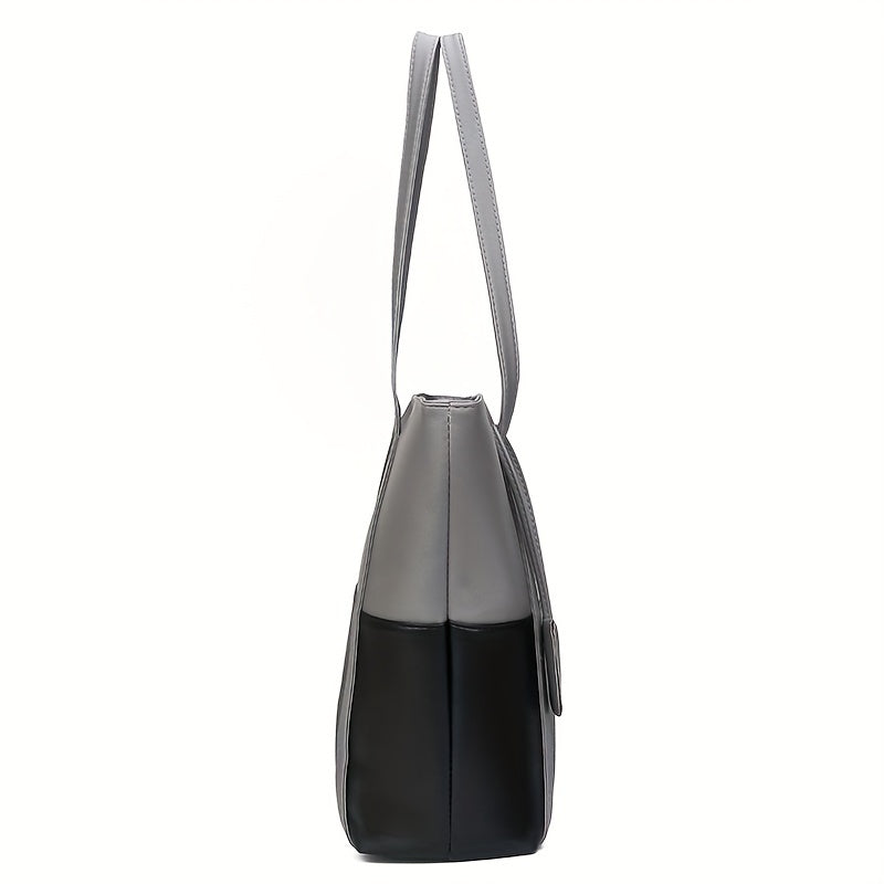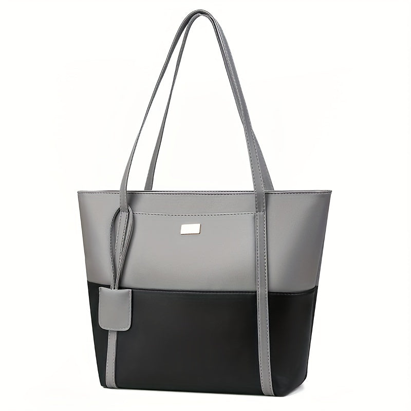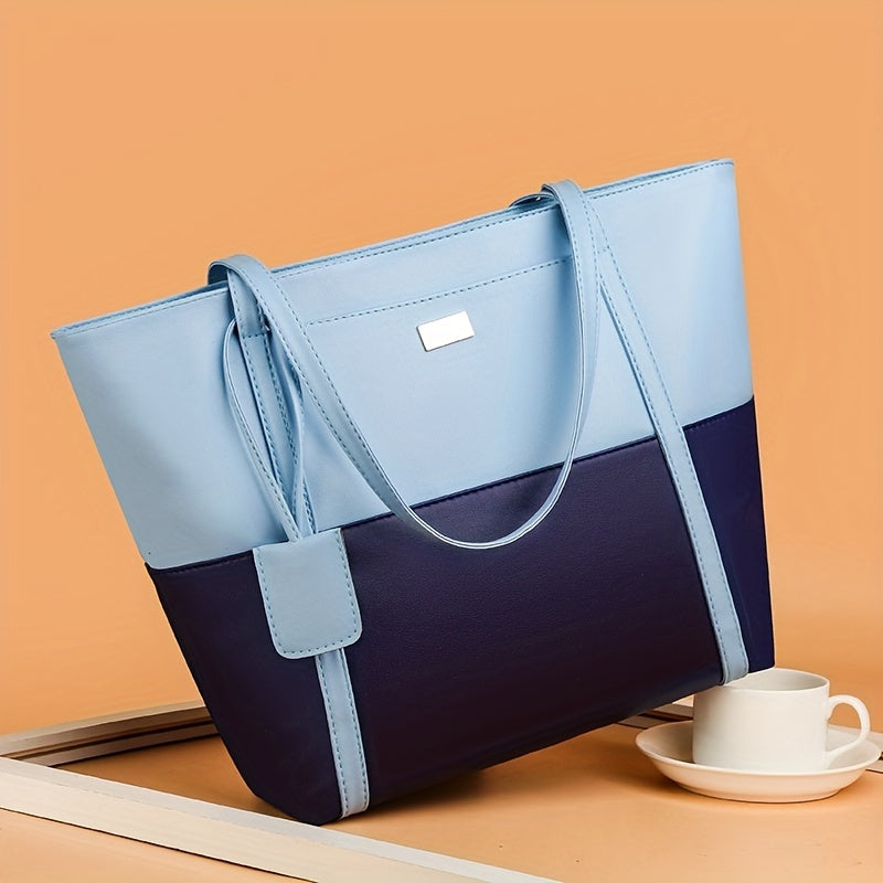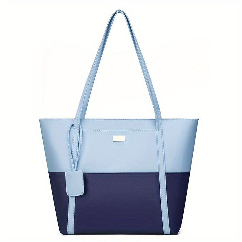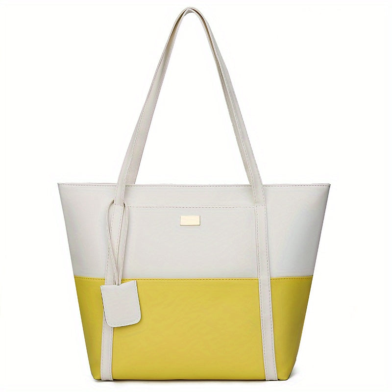 solvbao Simple Color Contrast Tote Bag, Large Capacity Handbags, Women's PU Shoulder Bag For Work & School